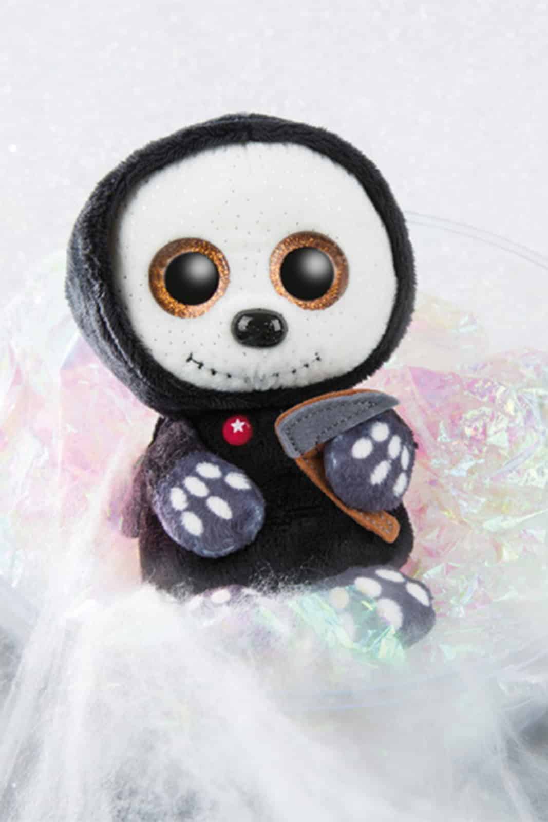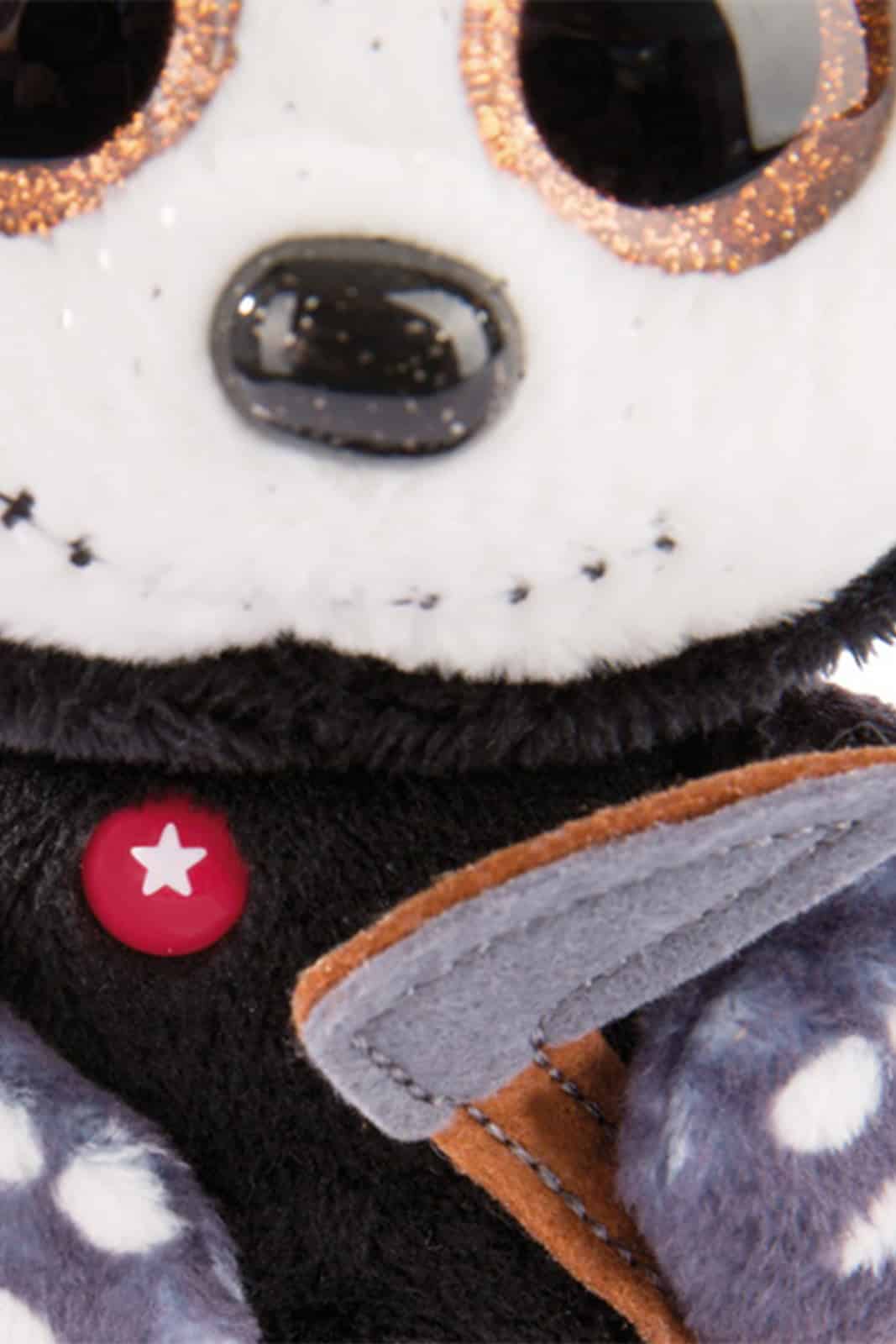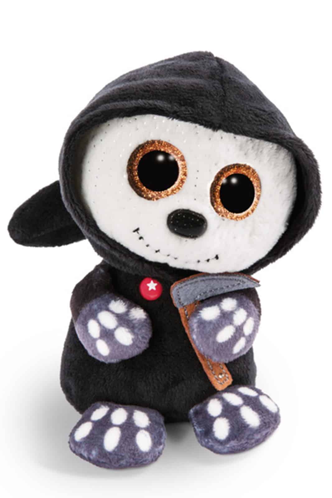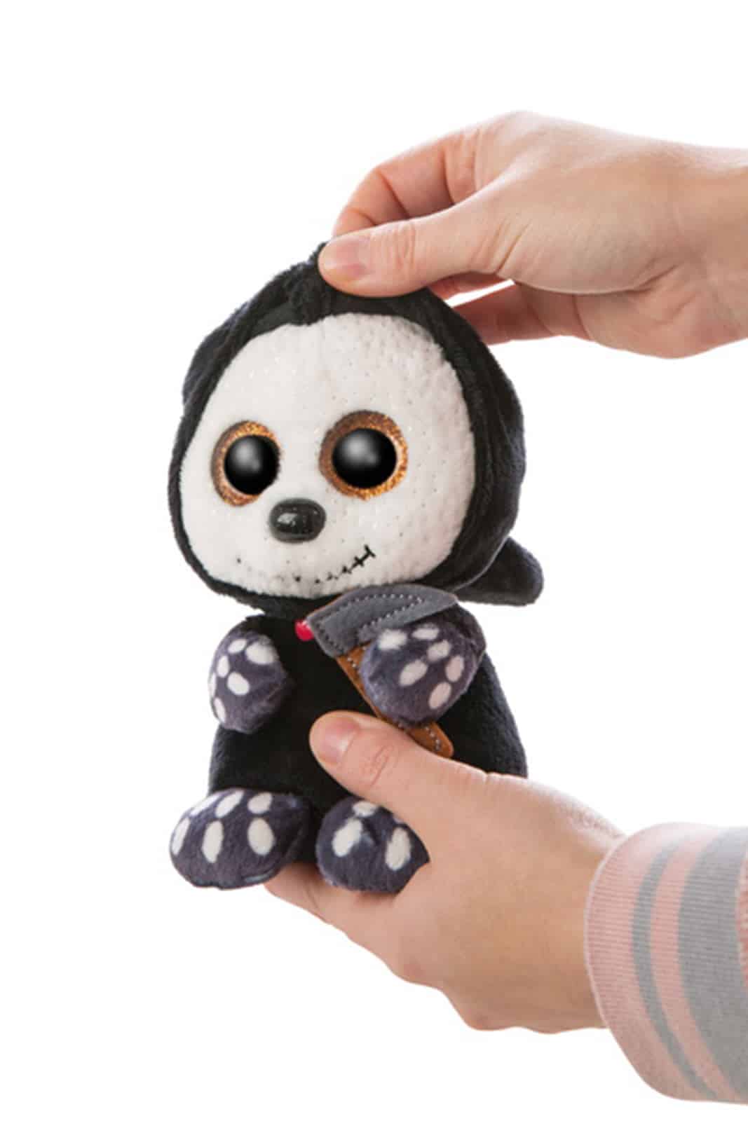 Süßes sonst gibt’s Saures! Das will natürlich auch unser Sensenmann Sanito. Unser kleiner Tod hat gruselig orange Augen und einen zugestickten Mund. Er hat ein weiß-bleiches Gesicht und glitzert dort an einigen Stellen. Natürlich hat unser Sanito auch einen schwarzen Umhang mit Zipfelmütze und in seiner linken Knochenhand hält er seine Sense.