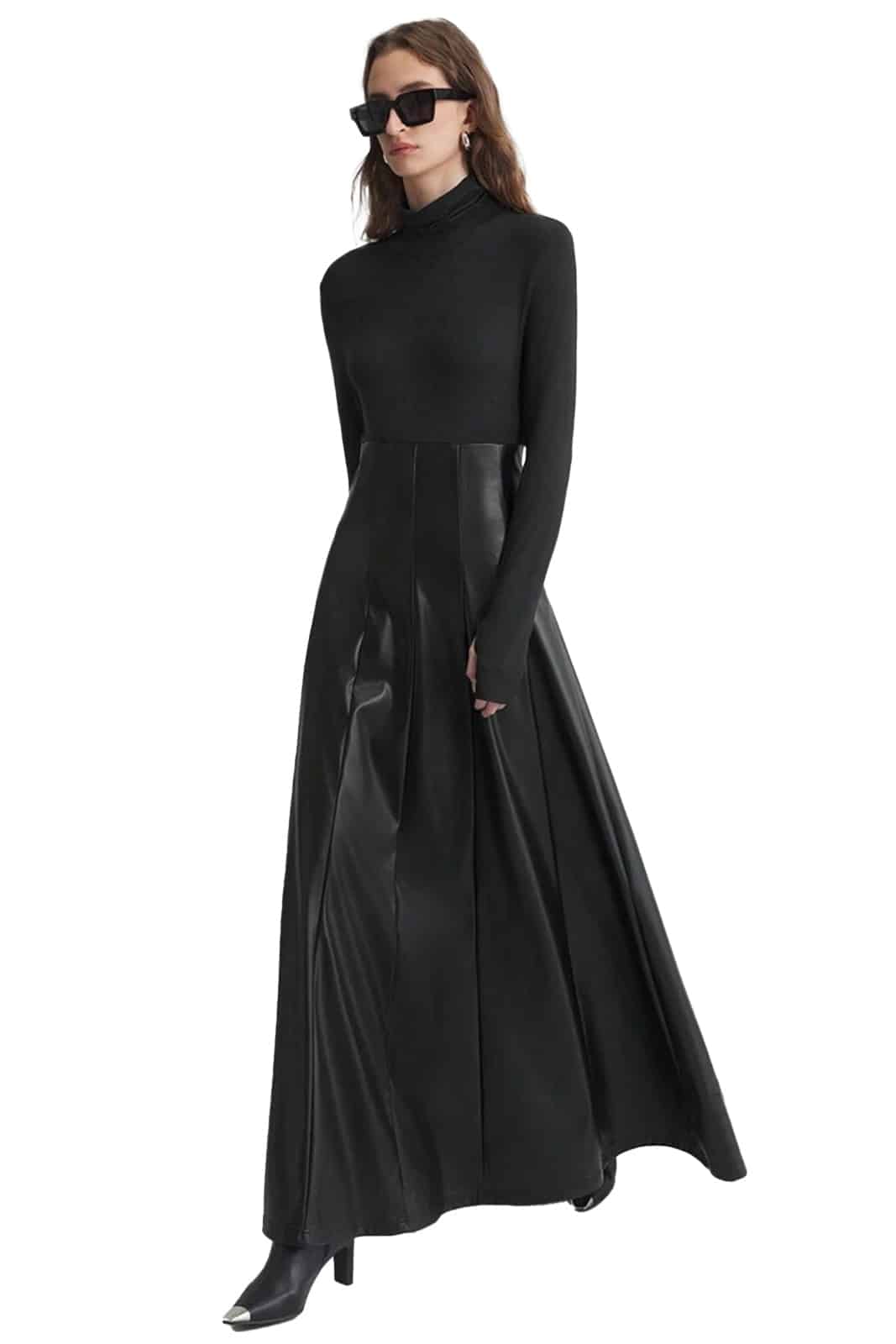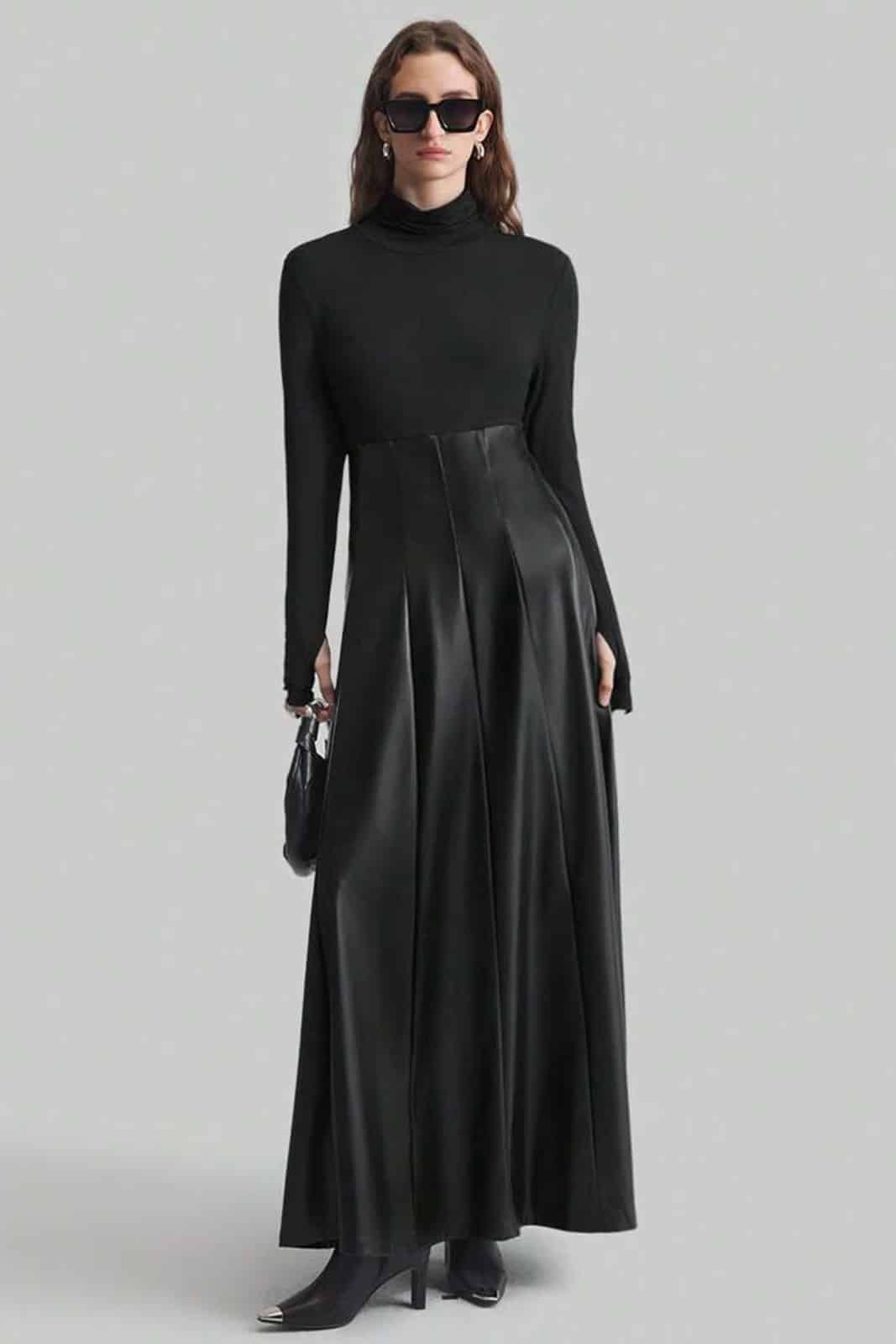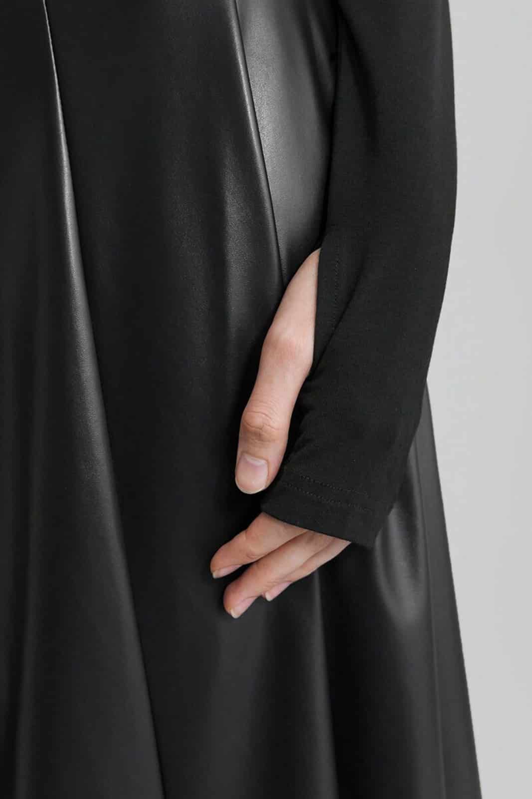 Der untere Rockteil ist aus weichem Kunstleder gefertigt und weit geschnitten.