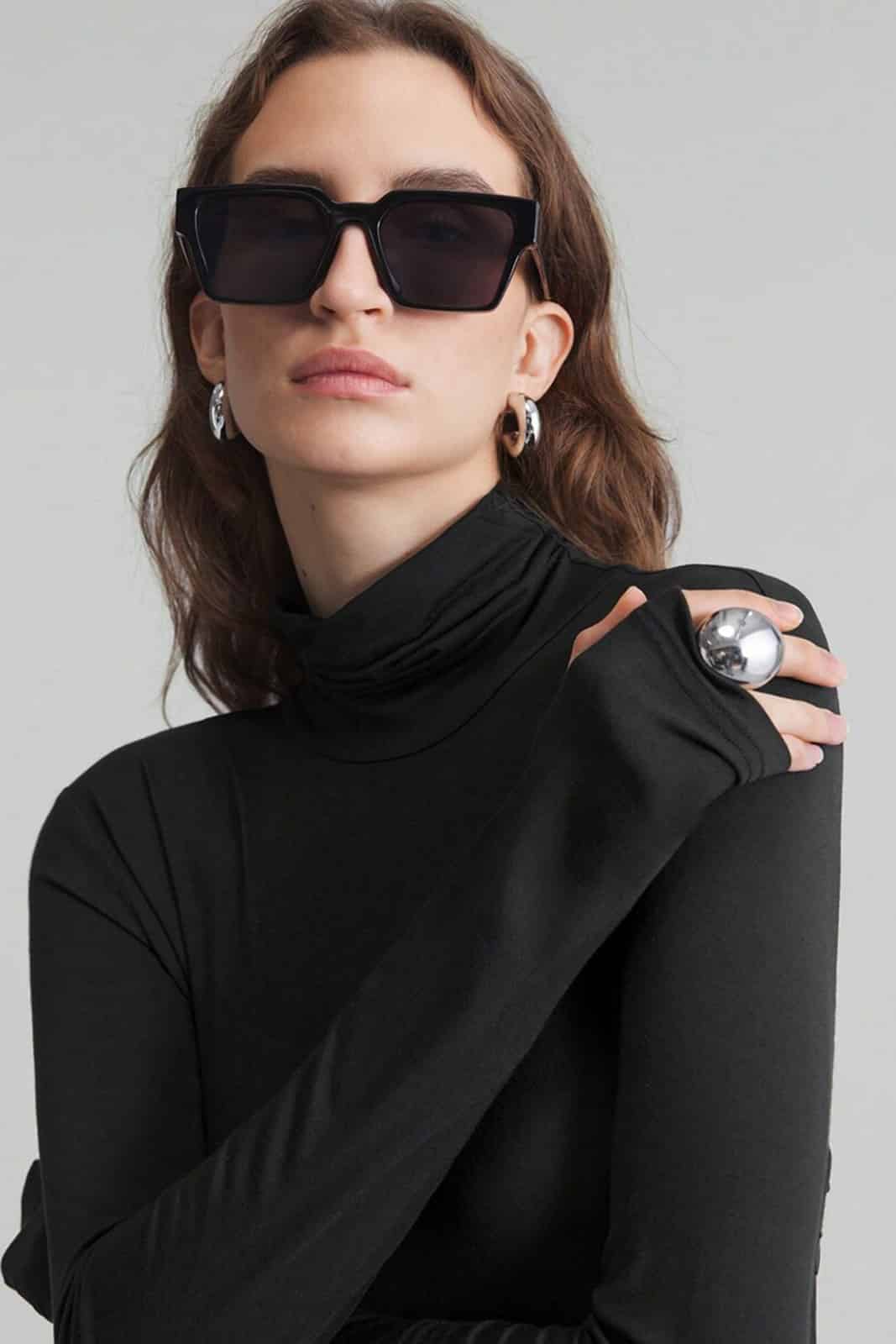 Im Bereich des Oberkörper schmiegt sich ein dünner, leicht transparenter Stoff an den Körper. Die langen Ärmel sitzen dank der Daumenlöcher perfekt. Ein kurzer Stehkragen umschiegt den Hals.