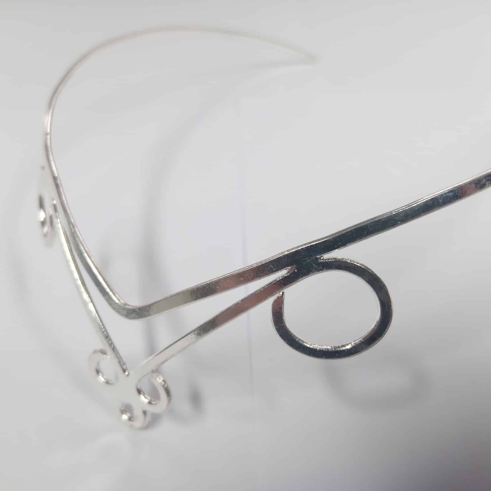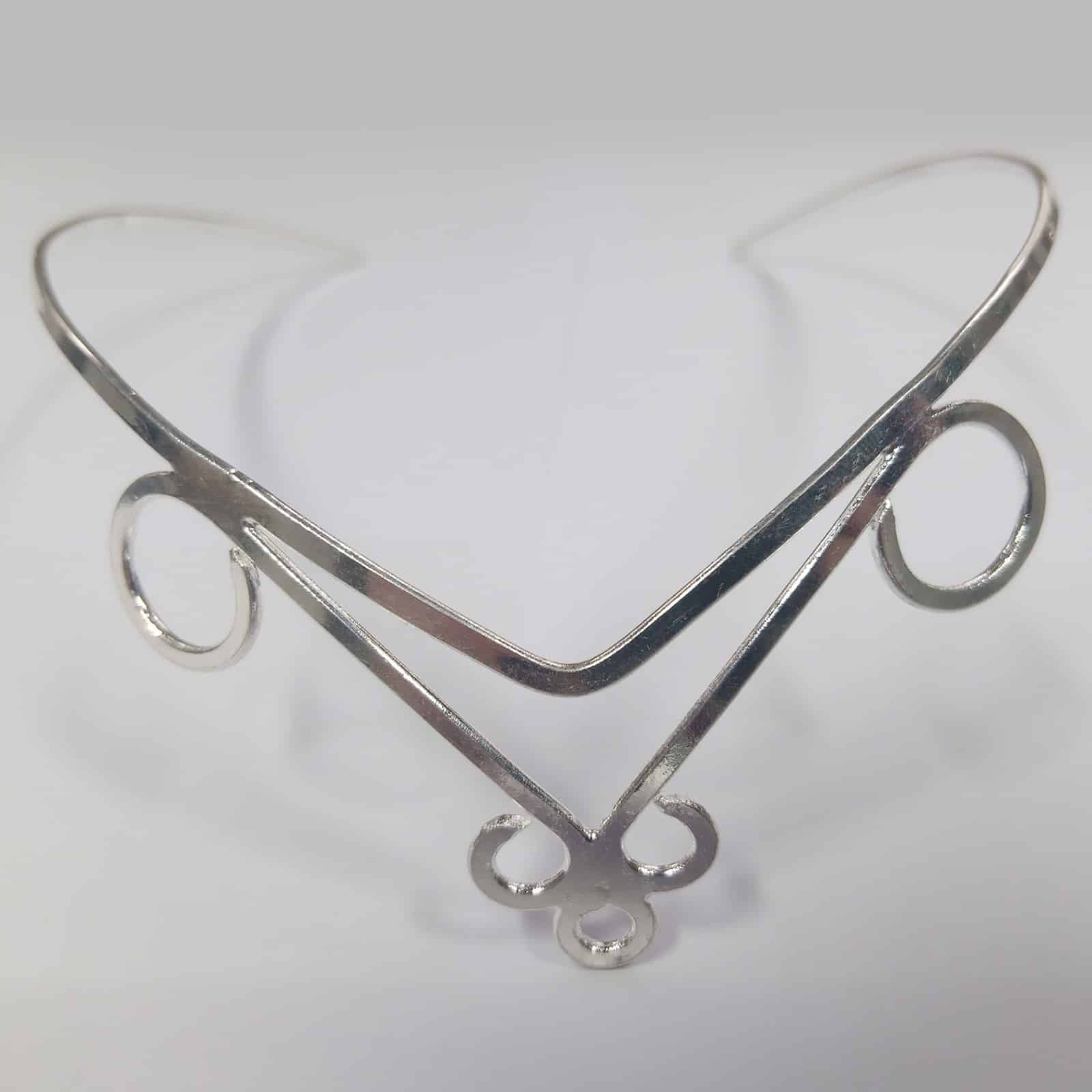 Schmale Silberlinien ziehen sich in klaren Schwüngen zu einer markanten V-Form, die an den Aufbruch eines neuen Tages erinnert. Sanfte Spiralen rahmen das Gesicht und verleihen dem Diadem eine Anmut von zeitloser Eleganz. Ein tiefblauer Schmuckstein schimmert im Zentrum wie ein Tropfen Morgendämmerung und entfaltet seine Wirkung zwischen Ruhe und Kraft. Der Stein kann bei Bedarf entfernt werden – so verwandelt sich das Circlet je nach Stimmung, Ritual oder Outfit in ein anderes, ebenso magisches Schmuckstück.
