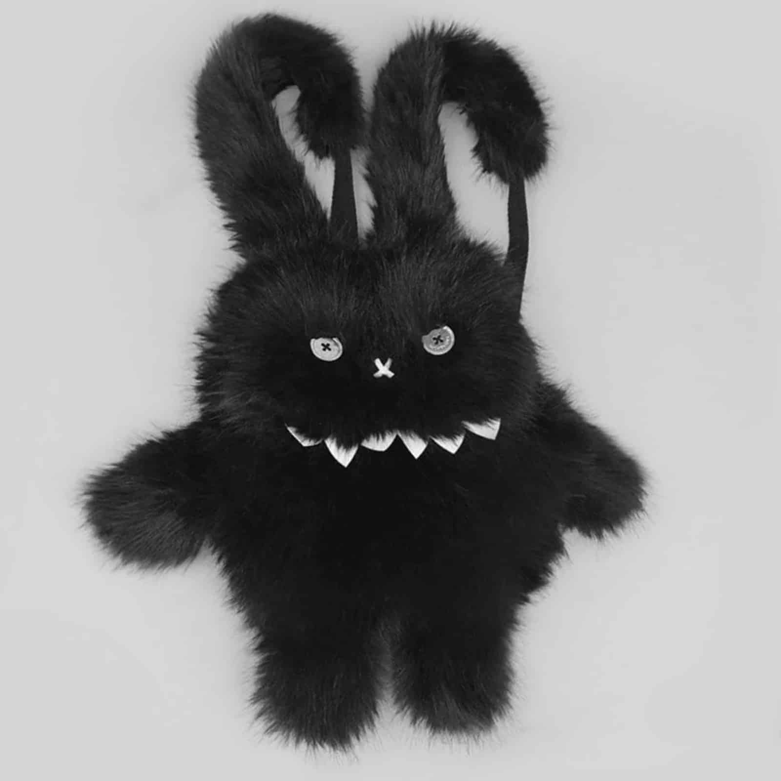 Dieser außergewöhnliche Rucksack in Form eines schwarzen Plüsch-Hasen ist ein echter Blickfang und verleiht jedem Outfit eine düstere Gothic-Note. Mit seinen spitzen Zähnen, den Knopfaugen und dem weichen Fell vereint er verspielten Charme mit gruseligem Detail. Neben seinem auffälligen Design überzeugt er durch praktischen Stauraum – perfekt für iPad, Handy und andere Essentials.