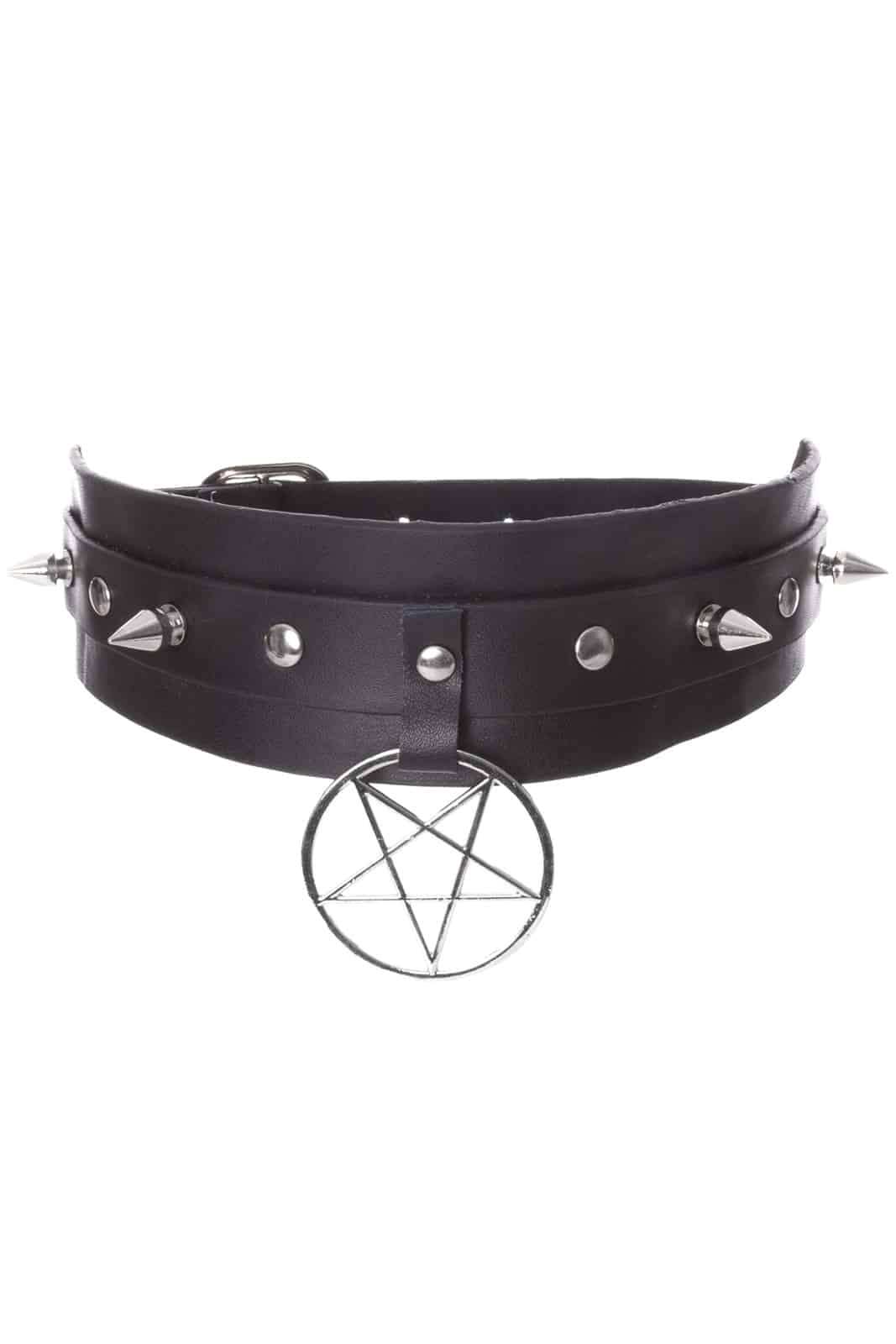 Ein markanter Choker für alle, die dunkle Symbolik und klare Statements lieben. Schwarzes Kunstleder trifft auf silberfarbene Spikes und ein zentrales Pentagramm-Anhänger – roh, okkult und kompromisslos. Cursed ist das perfekte Accessoire für Gothic-, Industrial- und Alternative-Looks und setzt einen starken Akzent am Hals.