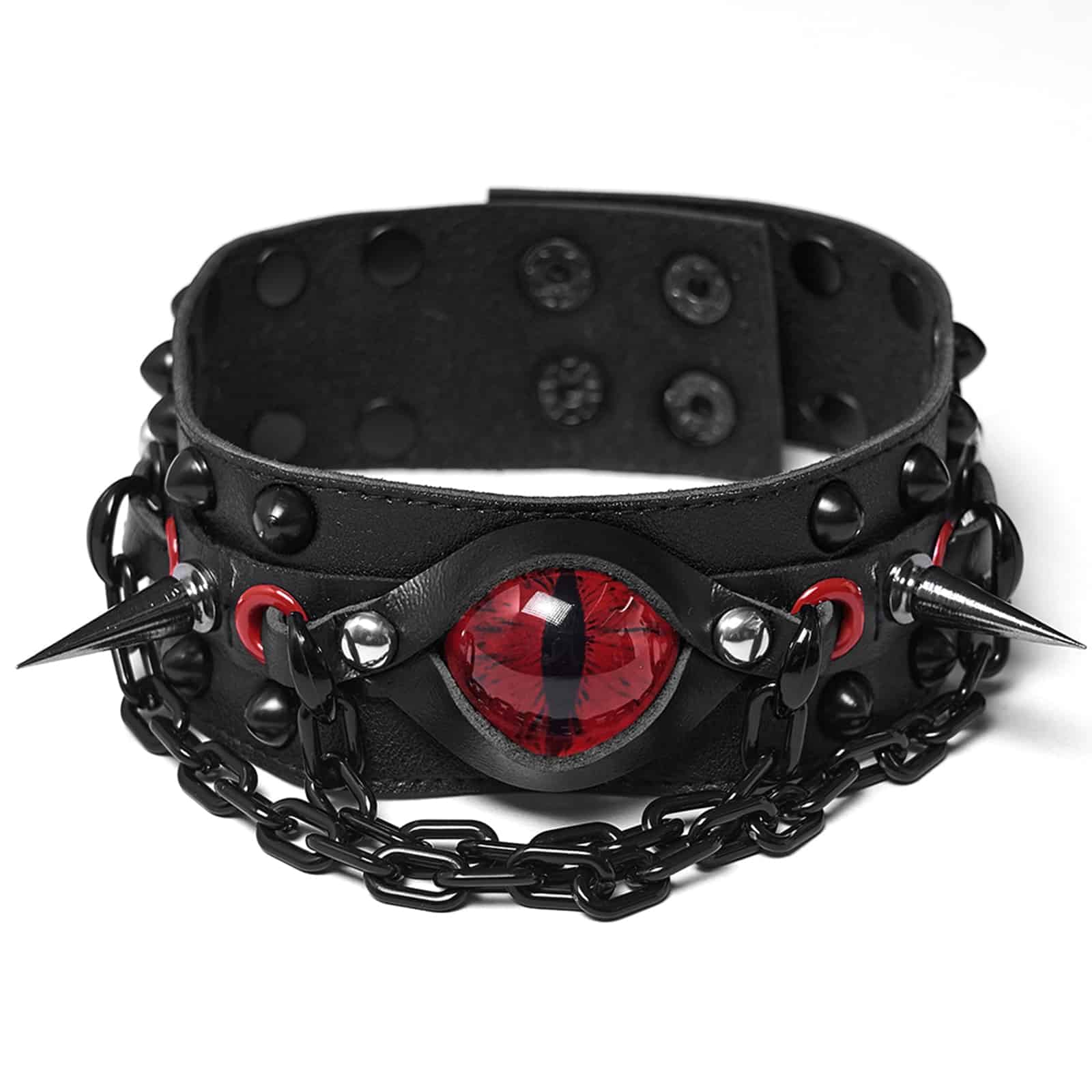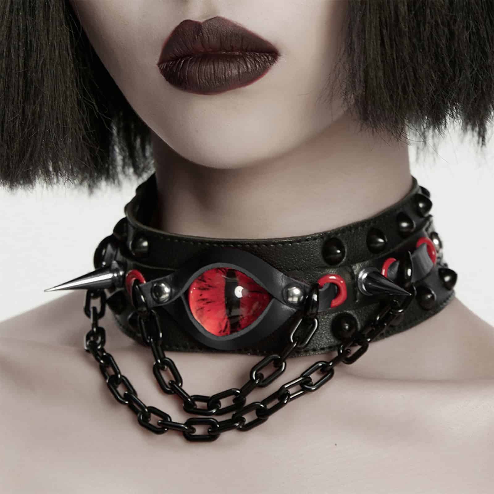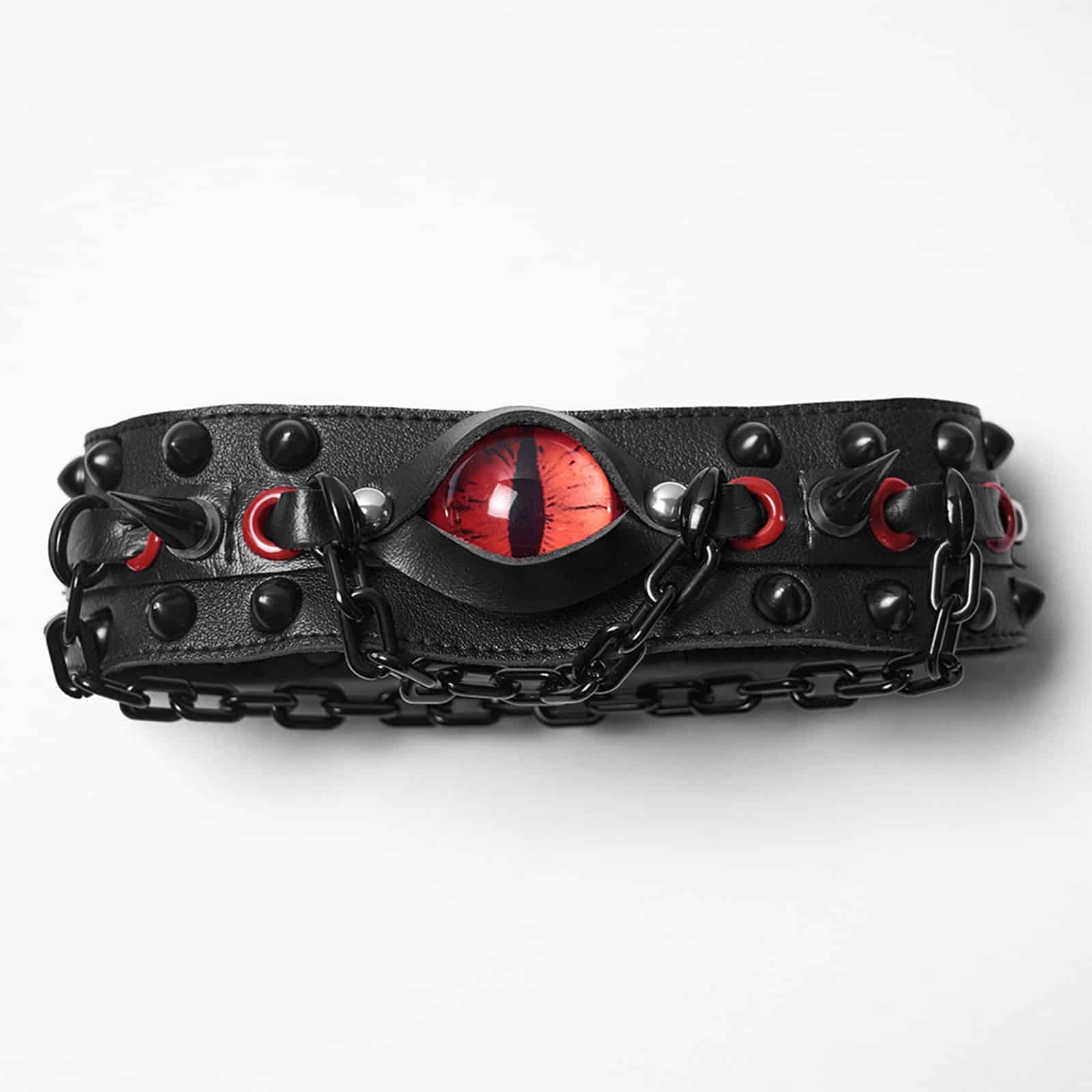Ein Blick, der durch die Dunkelheit brennt. Der Dragon’s Eye Inferno Choker setzt ein kompromissloses Statement zwischen Gothic, Fetish und Dark Fantasy – provokant, kraftvoll und absolut hypnotisch.