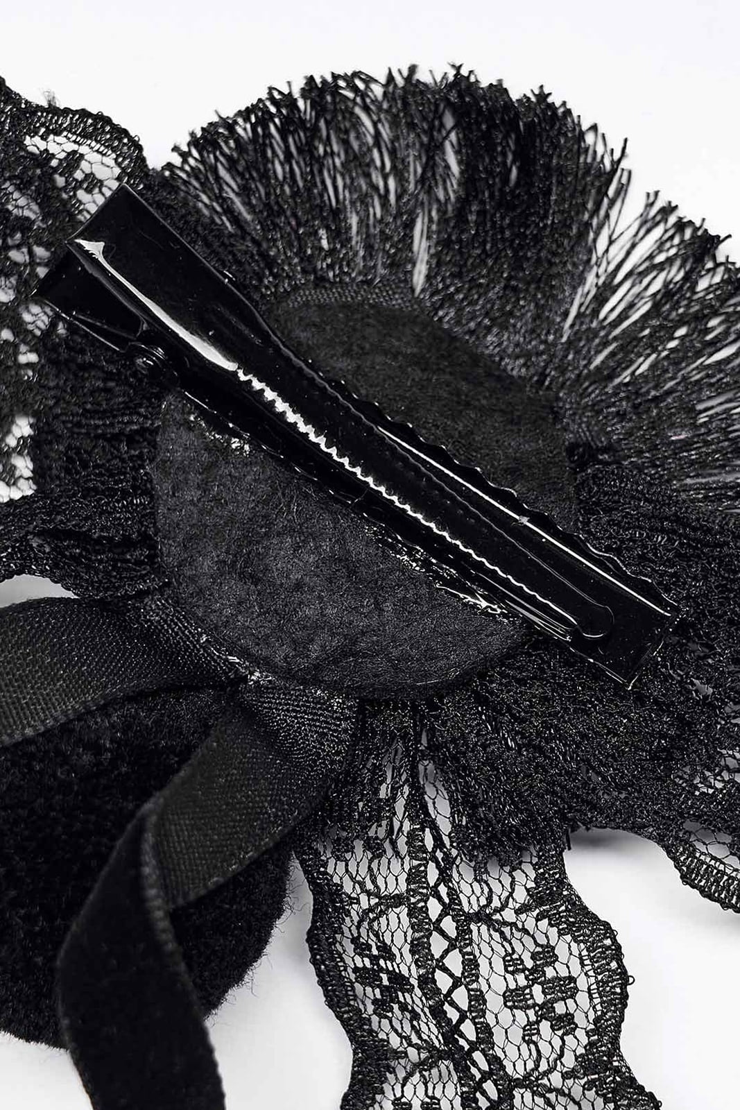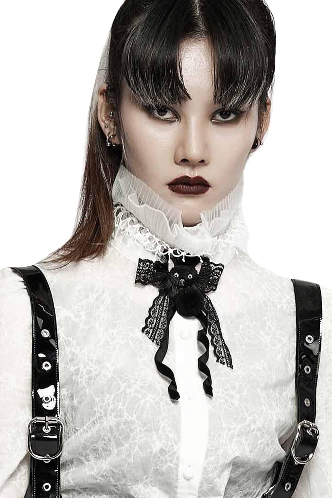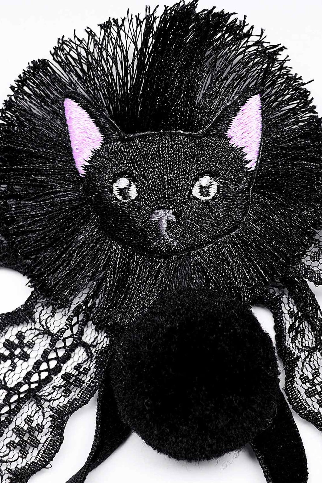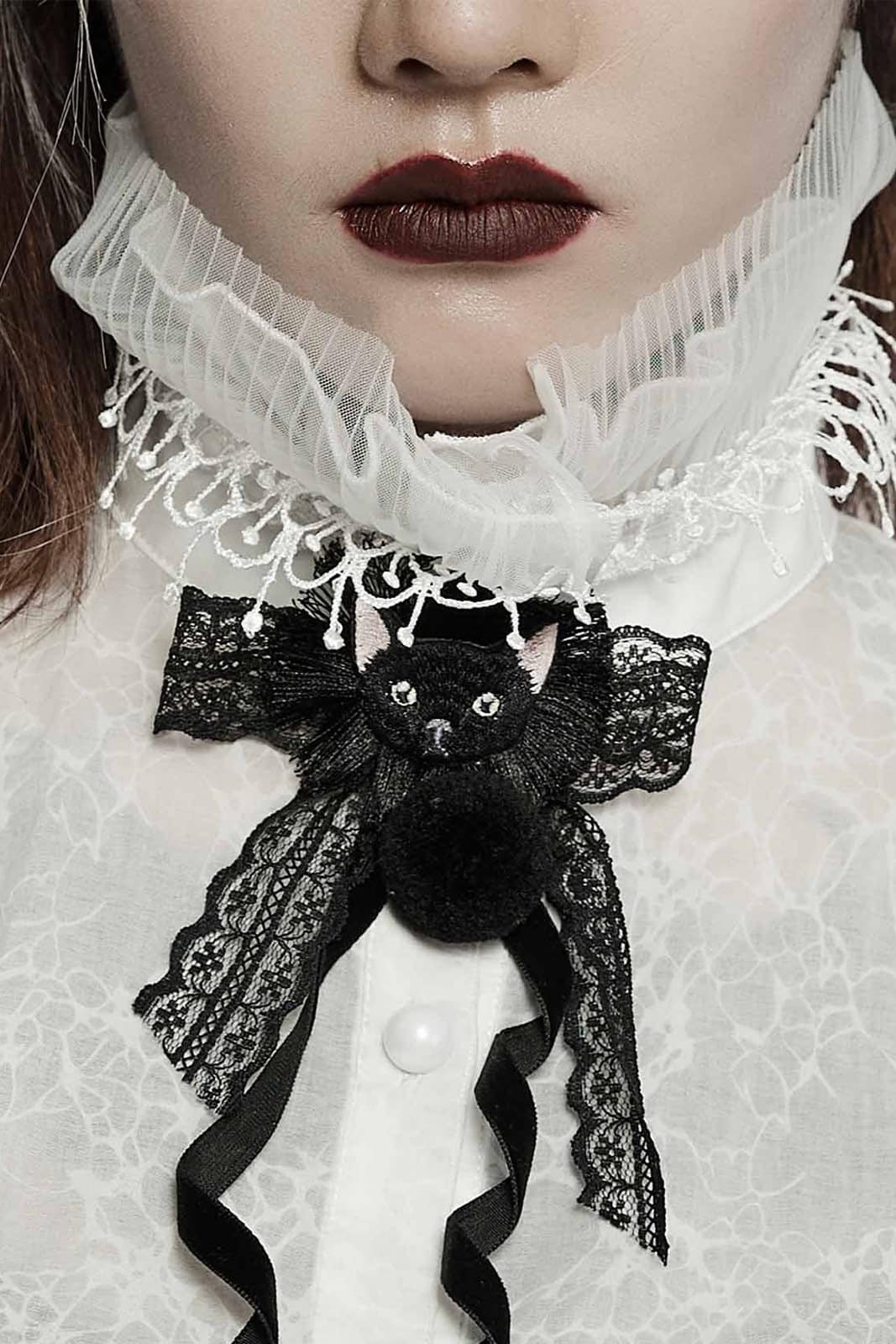 Ansteckfliege im Gothic-Lolita-Stil mit schwarzer Katzenapplikation und Samtbändern.