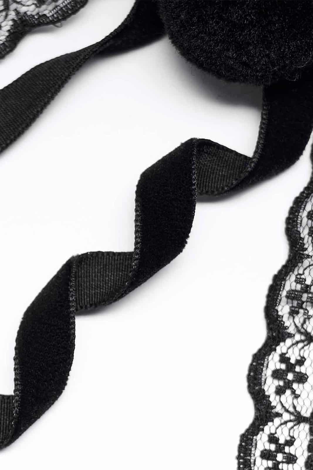 Das süße Katzengesicht ist mit rosa Ohren und flauschiger Mähne verziert. Ein schwarzes Bommeldetail und Spitzen- und Samtbänder sind unterhalb der Katze befestigt.