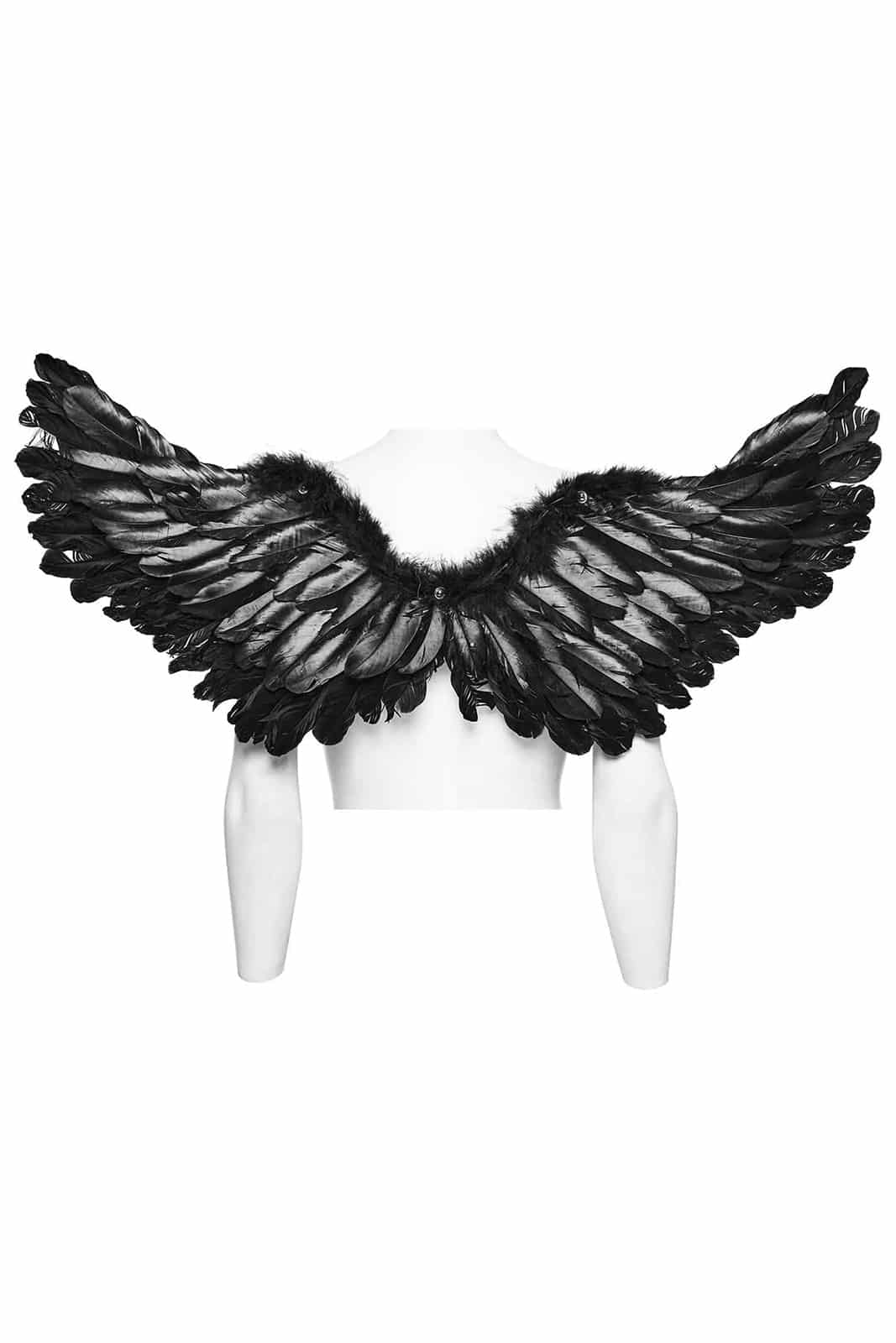 Gothic-Engelsflügel aus schwarzen Federn mit Kunstlederdetails.