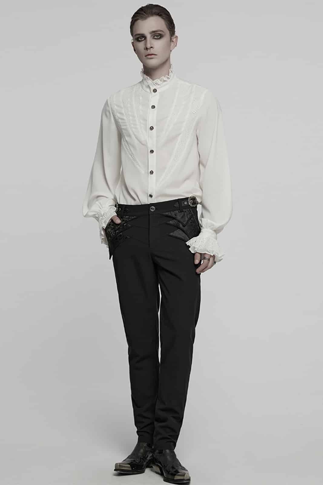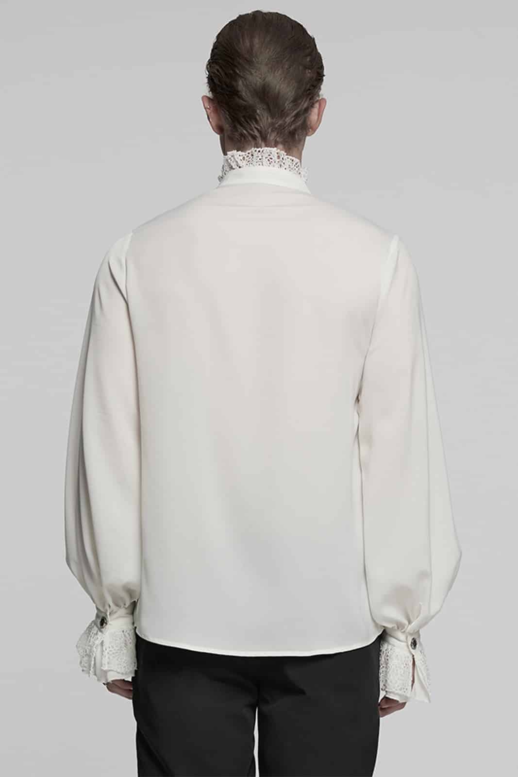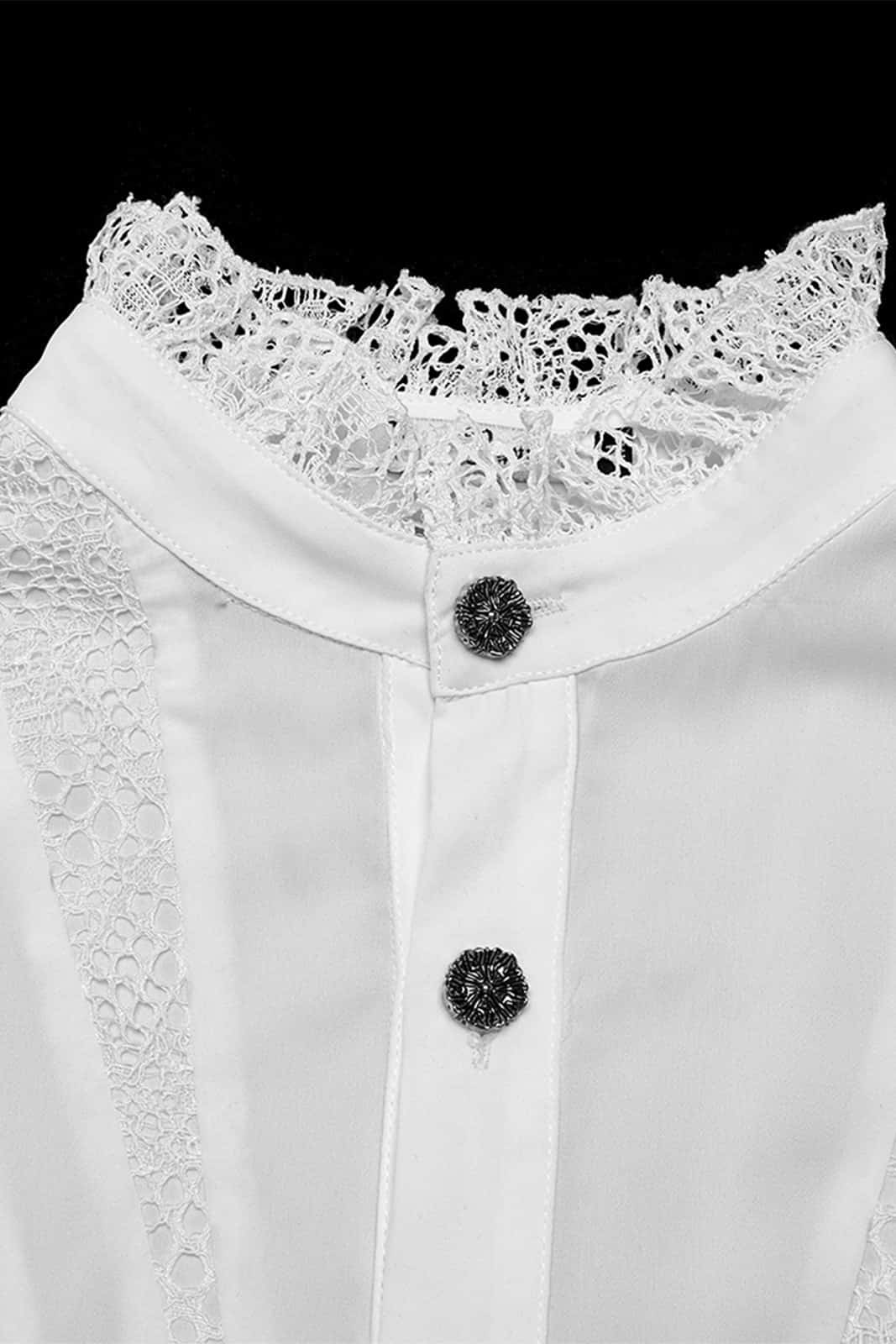 Ein Stück viktorianische Romantik in strahlendem Weiß: Das Prince of Thorns Hemd verbindet elegante Gothic-Ästhetik mit poetischer Leichtigkeit. Der fließende Chiffon schafft eine edle, weiche Silhouette, während feine Spitzen- und Meshdetails das Design kunstvoll strukturieren. Die spitz zulaufenden Mesh-Panele auf der Front setzen einen dezenten, aber markanten Blickfang. Abgerundet wird der aristokratische Look durch einen verspielten Rüschen-Stehkragen – perfekt für formelle Gothic-Outfits, fantastische Styles oder besondere Anlässe mit dramatischer Note.