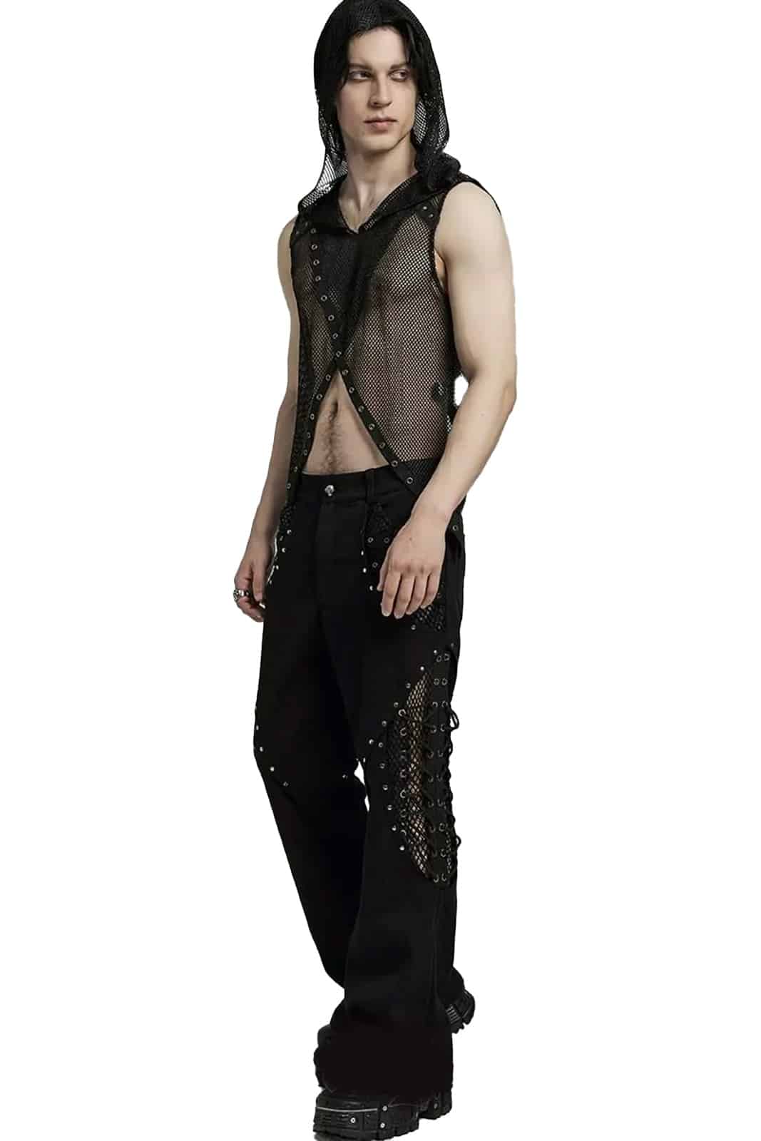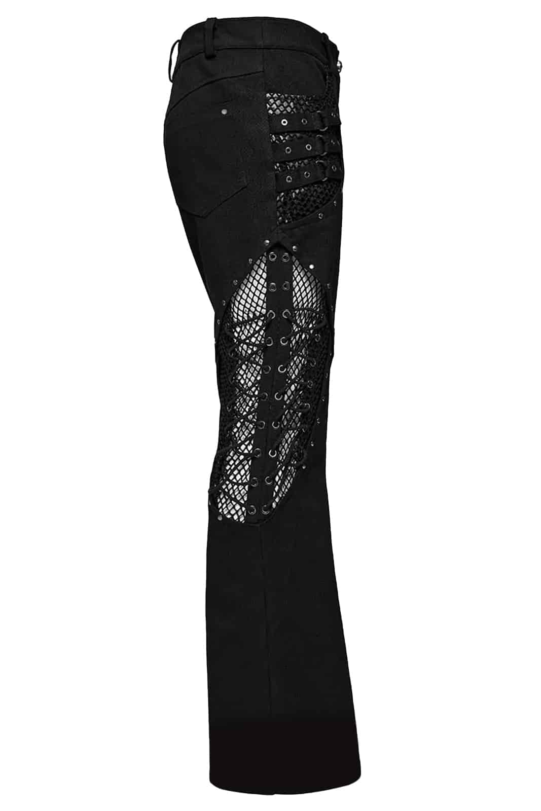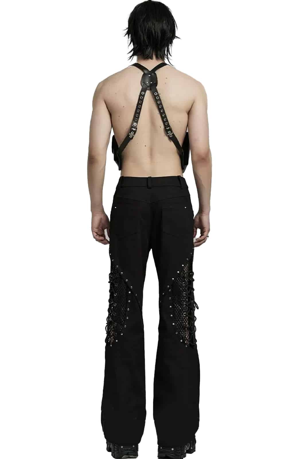 Entfessle Deine dunkle Cyberpunk-Seite mit dieser Xtraterrestrial-Hose, einer perfekten Mischung aus ausgefallener Mode und sorgfältiger Punk-Rave-Handwerkskunst. Diese schwarze Hose ist so konzipiert, dass sie mit einzigartigen Eigenschaften ein mutiges Statement setzt. Die Seitenteile verfügen über aufwendige Schnürdetails, akzentuiert durch Nietenverzierungen, die für ein rebellisches Flair sorgen. Die ausgestellten Beine sorgen für einen Retro-Touch, der an klassische Old-School-Stile erinnert, und sorgen gleichzeitig für Komfort und Bewegungsfreiheit.