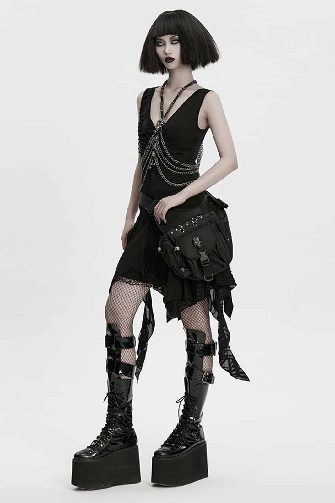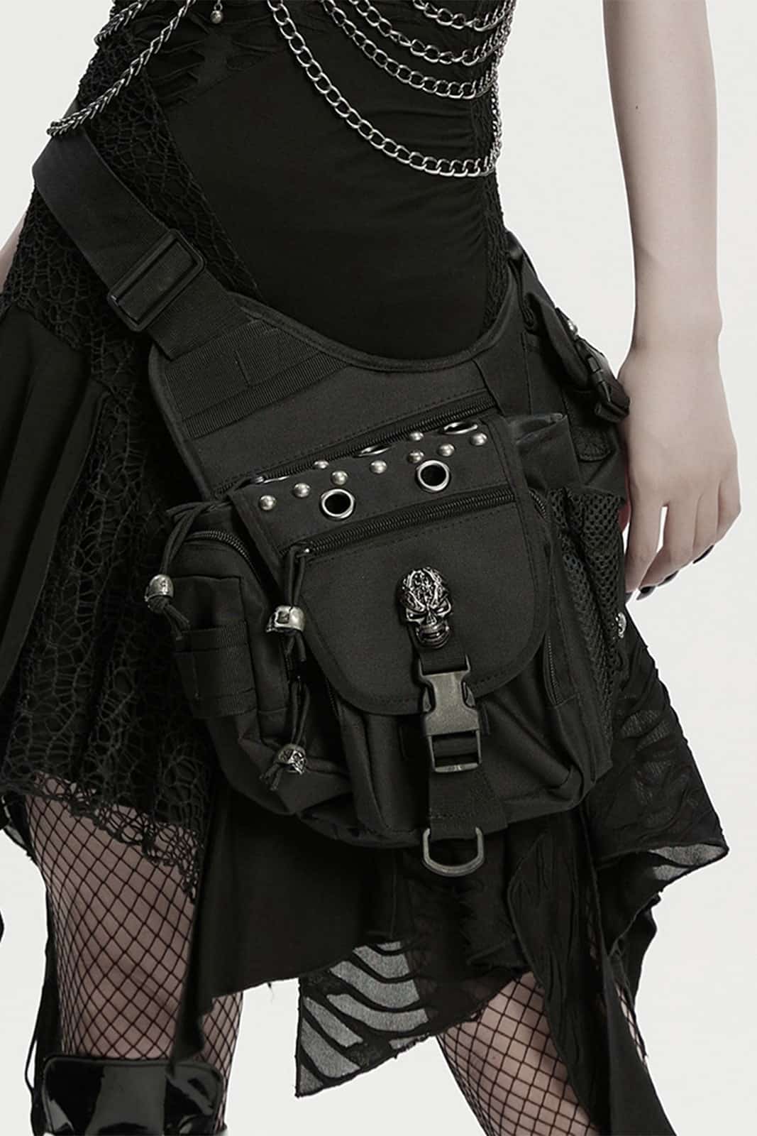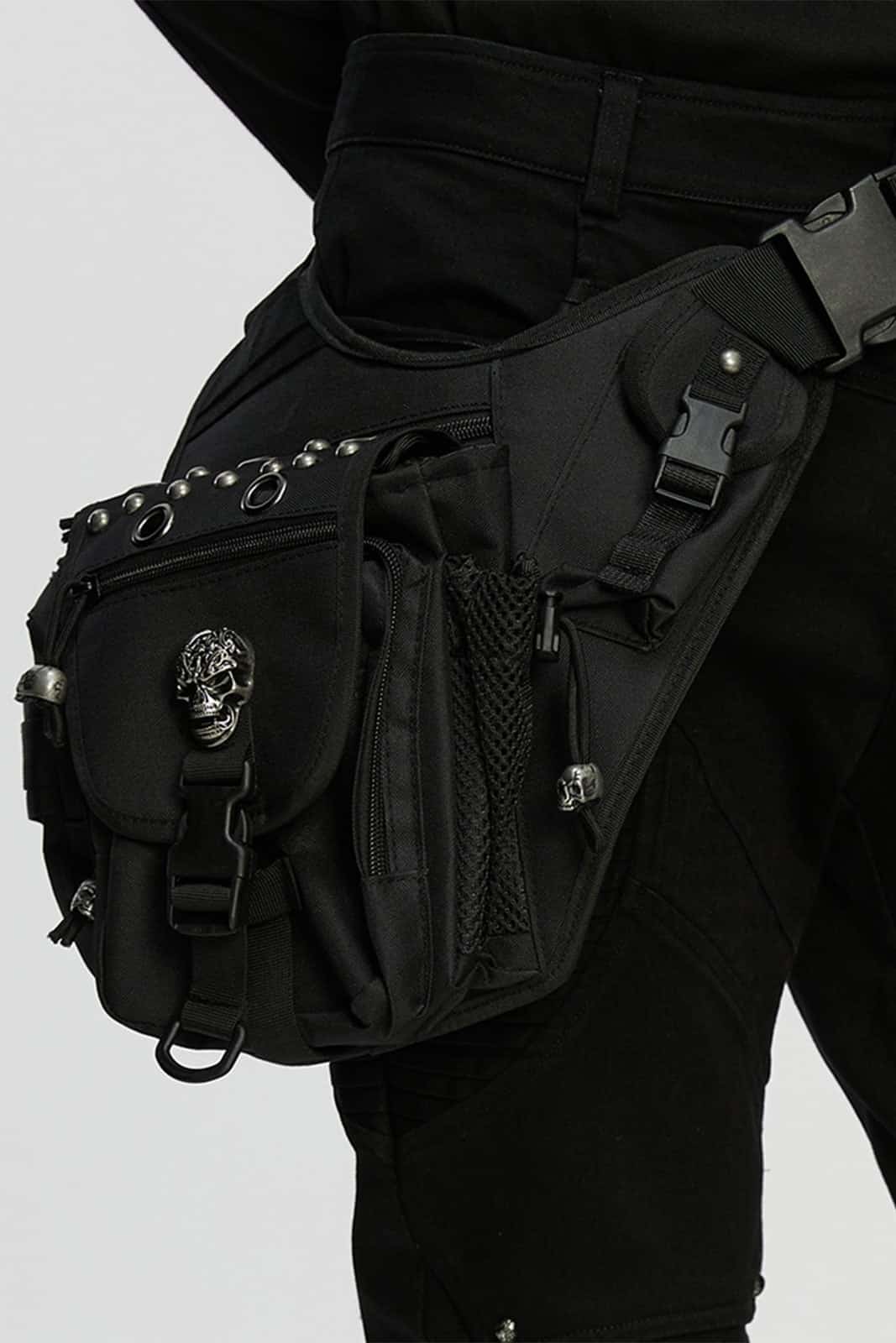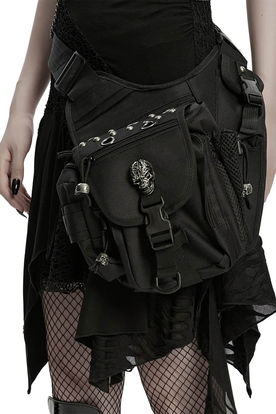 Diese markante Holster-Tasche vereint postapokalyptische Ästhetik mit funktionalem Punk-Design. Am Oberschenkel getragen, setzt sie ein klares Statement und bietet gleichzeitig durchdachte Stauraumlösungen für Alltag, Festivals oder Konzerte. Robuste Materialien, industrielle Details und flexible Trageoptionen machen sie zum idealen Accessoire für dystopische, cyberpunkige oder alternative Looks.