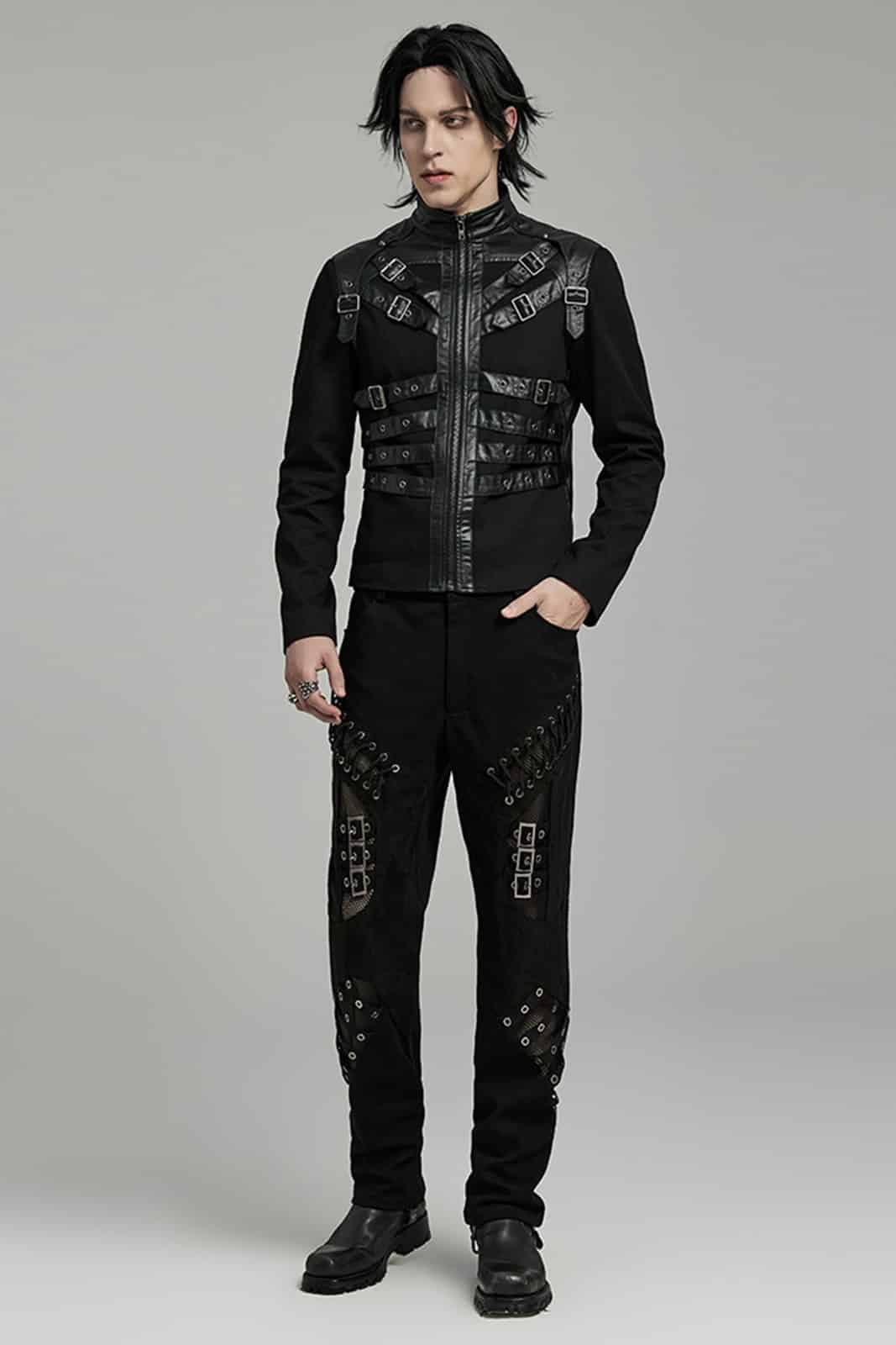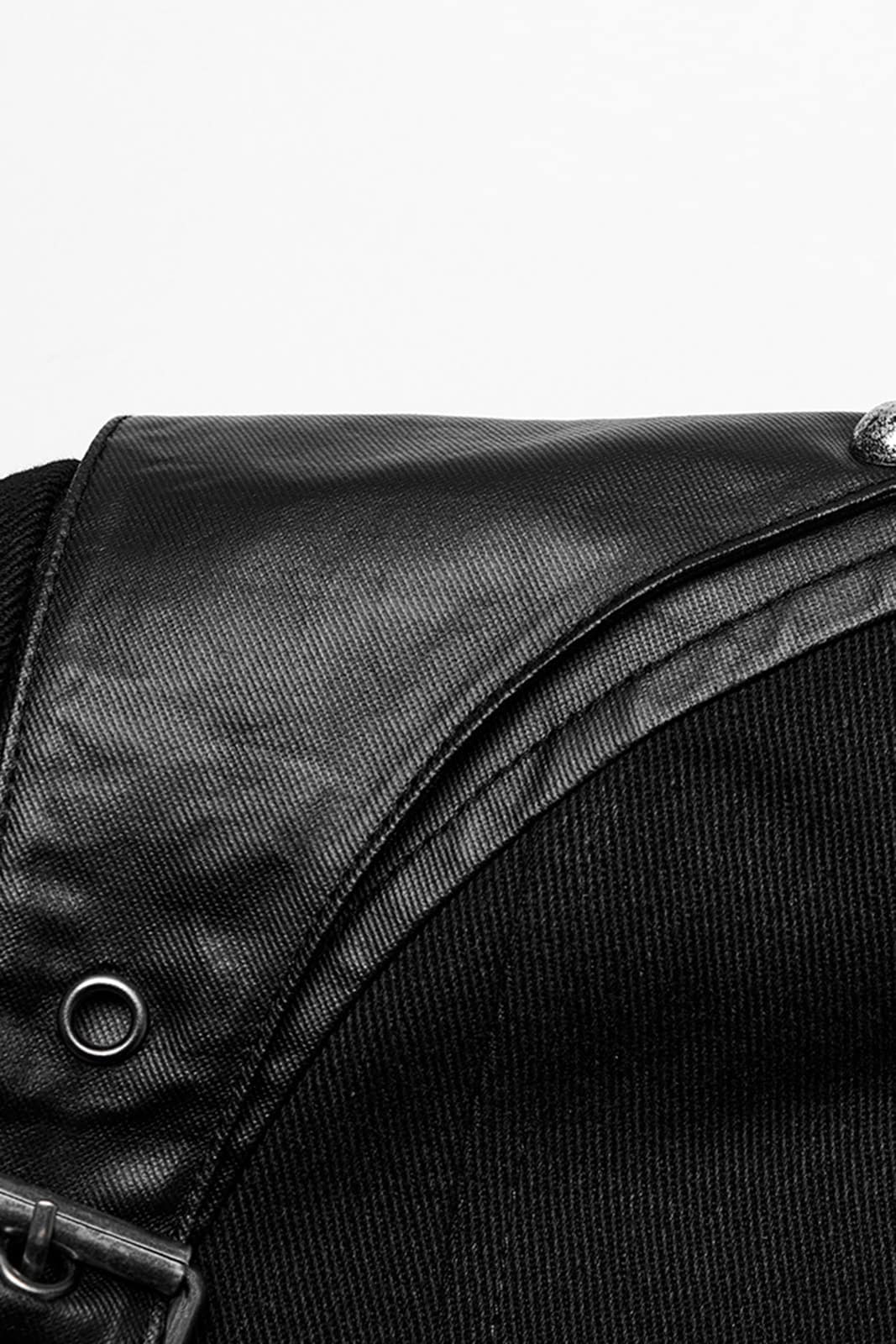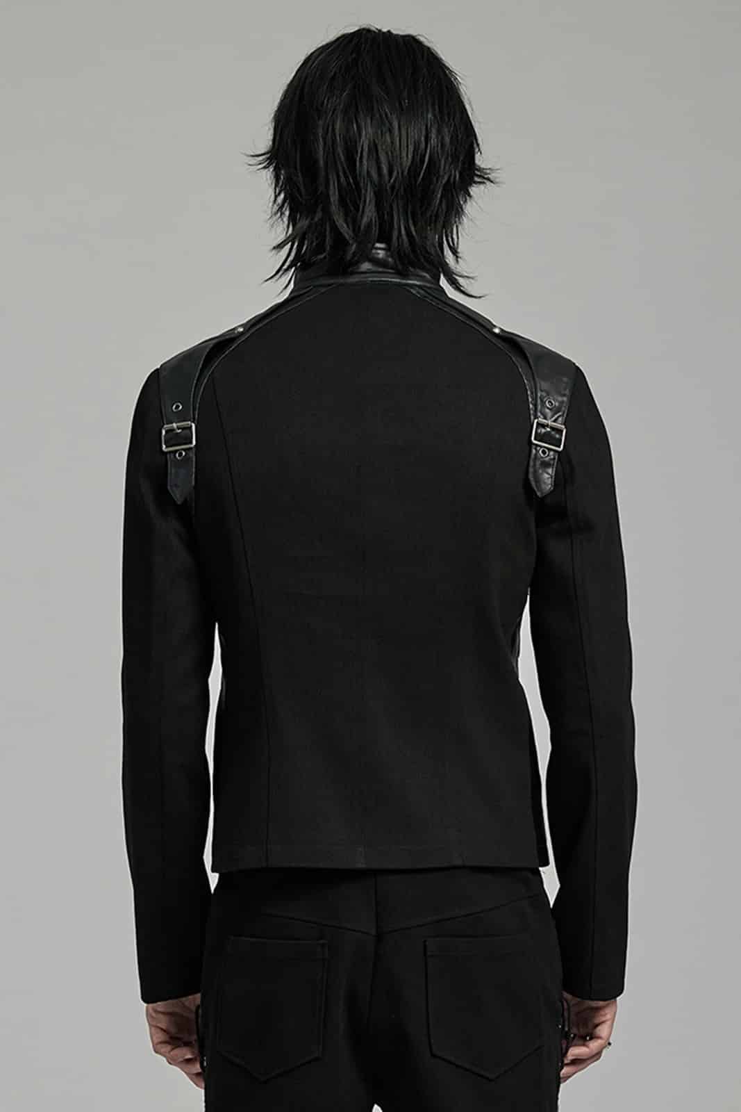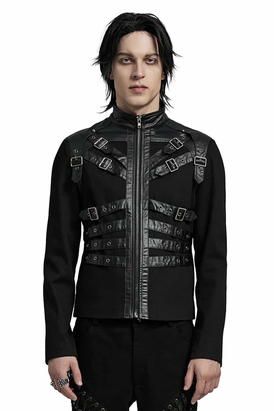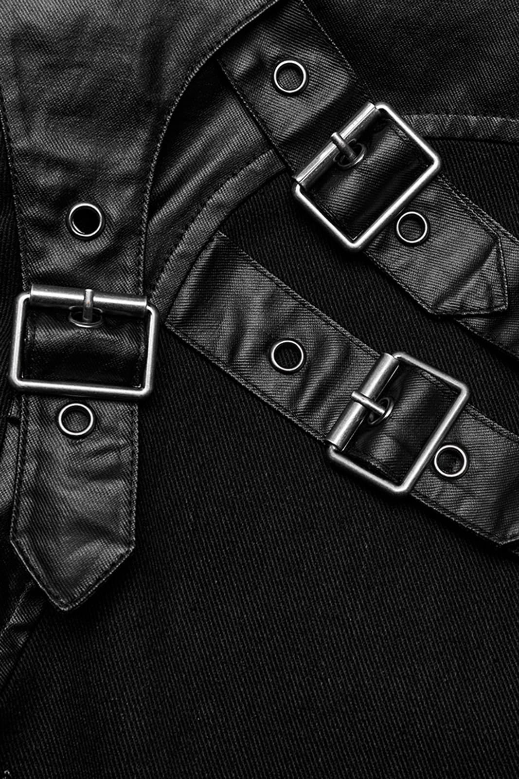 Diese Gothic-Jacke ist eine mutige Mischung aus Industriedesign und dunklem Gothic-Stil. Mit einem taillierten Schnitt schmiegt sich dieses Stück an den Körper an und sorgt für eine elegante und eindrucksvolle Präsenz. Hergestellt aus einer strapazierfähigen Mischung aus Baumwolle und Polyester, vereint es Komfort mit einer auffälligen Ästhetik. Verziert mit Riemendetails aus Kunstleder mit Schnallen und Ösen umschließen die Jacke und sorgen für eine robuste Struktur, die einen Kontrast zum glatten Stoff bildet. Der Reißverschluss vorne sorgt für einen modernen, stromlinienförmigen Verschluss, während der Stehkragen den strukturierten Look der Jacke unterstreicht und ihr eine klare und definierte Silhouette verleiht.