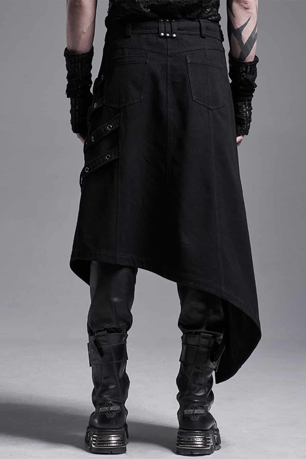 Asymmetrische schwarze Overskirt im Dark-Punk- / Post-Apocalyptic-Stil