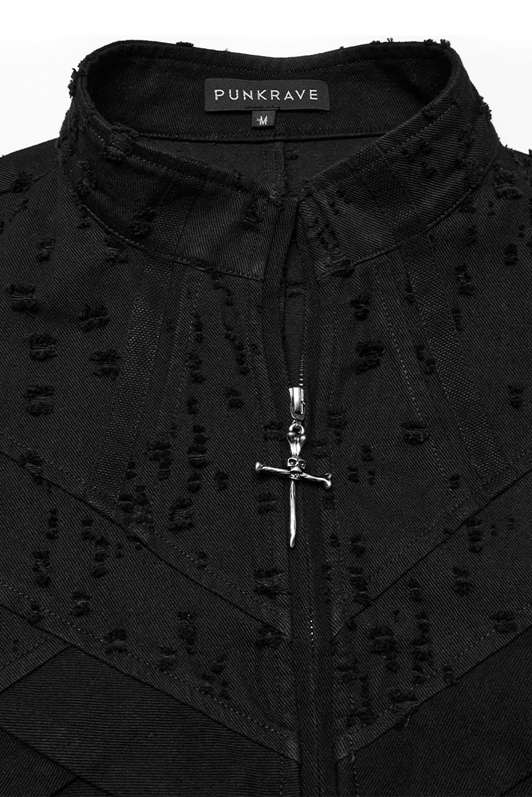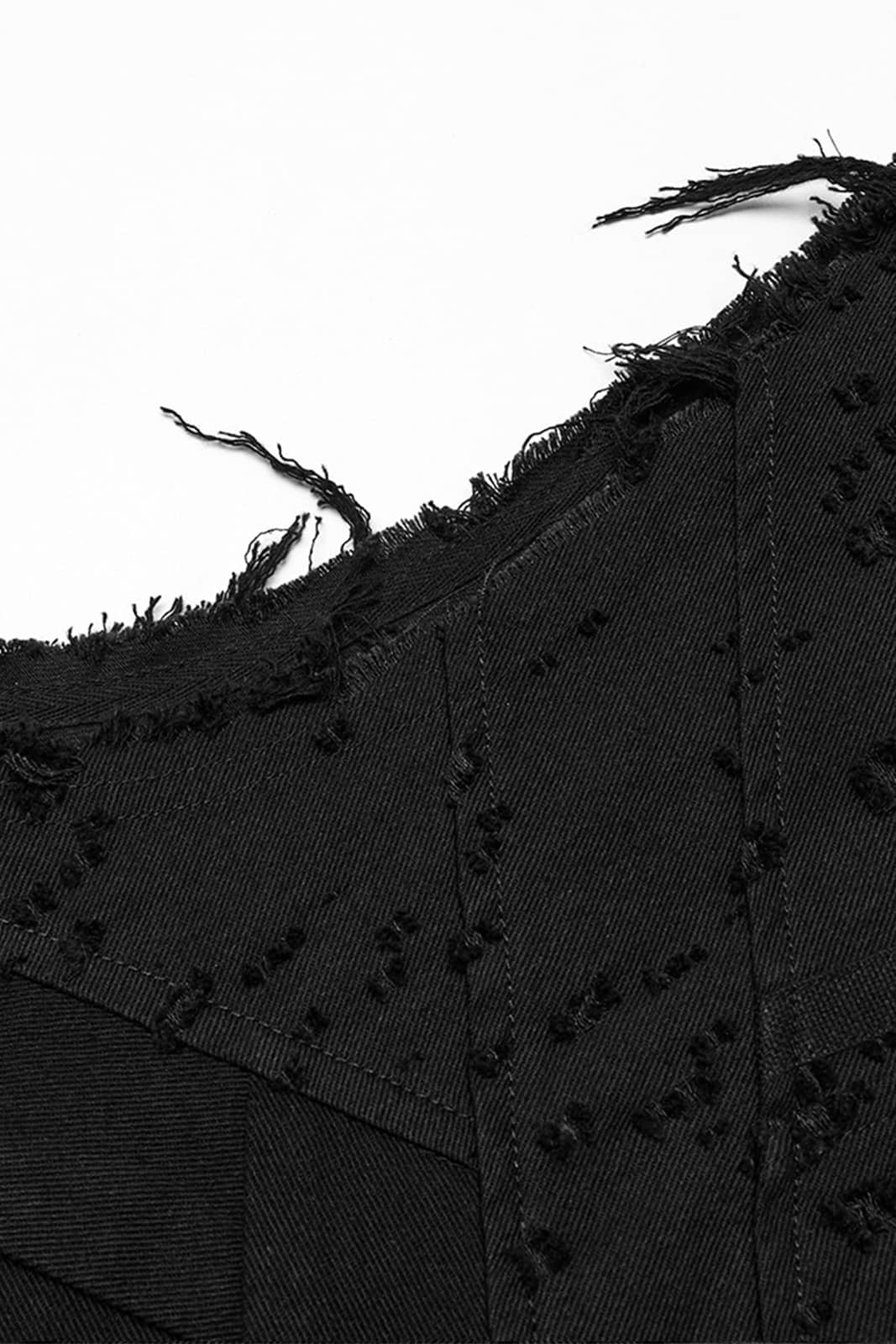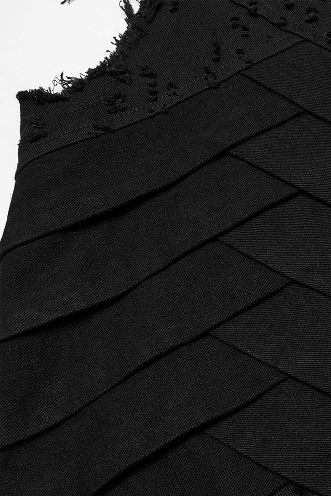 Lange, ärmellose Herrenweste im Dark-Punk-Stil mit markantem Strukturdesign und robuster Ausstrahlung. Der durchgehende Reißverschluss und die abgestuften Paneele an Vorder- und Rückseite verleihen dem Look eine kraftvolle, futuristische Note – perfekt für dystopische oder alternative Outfits.