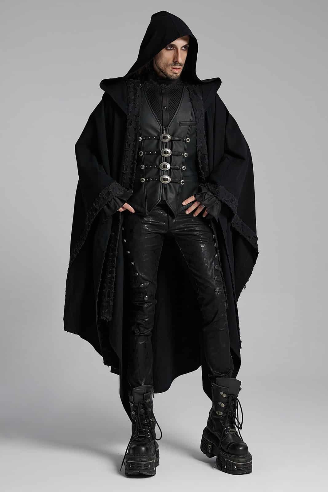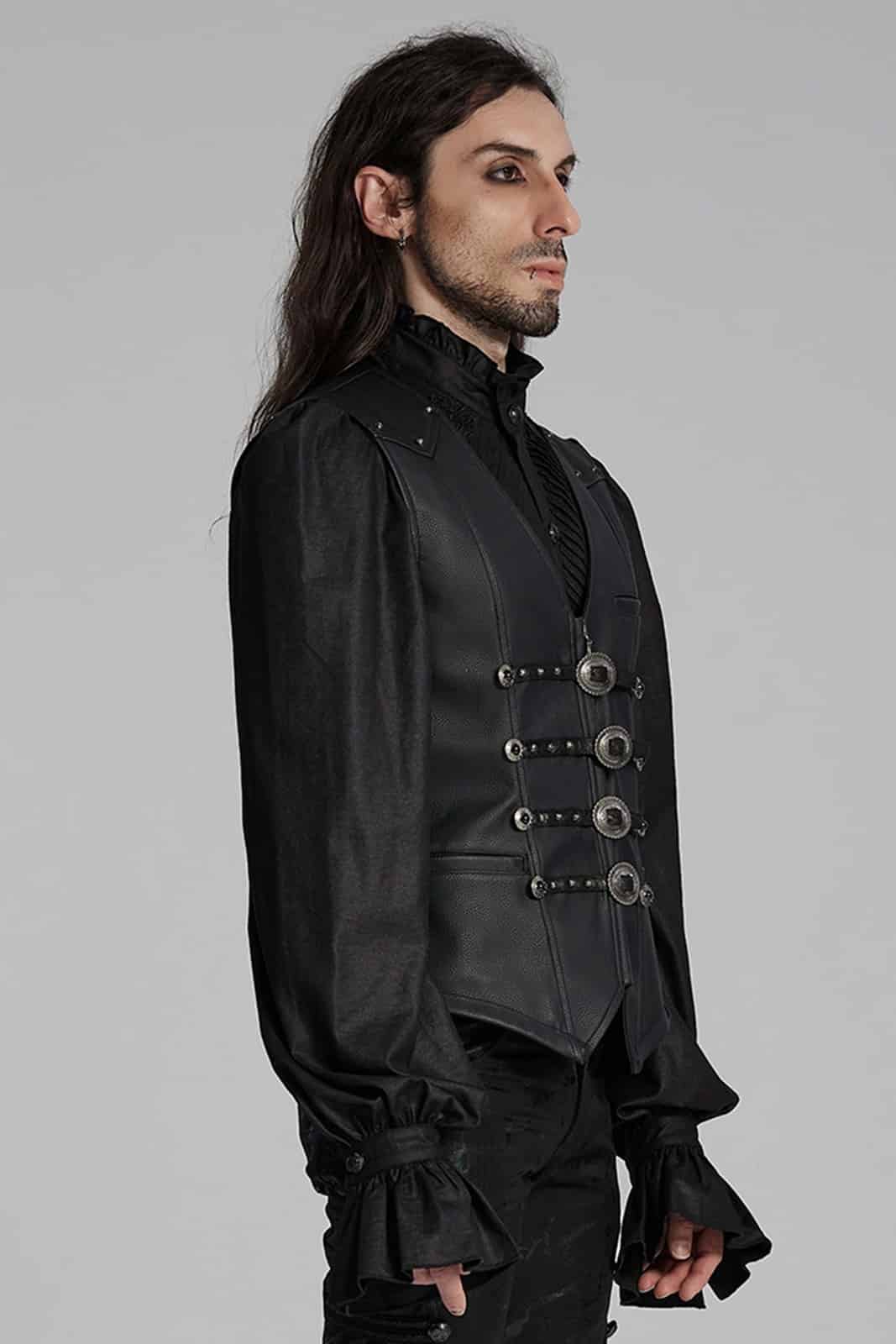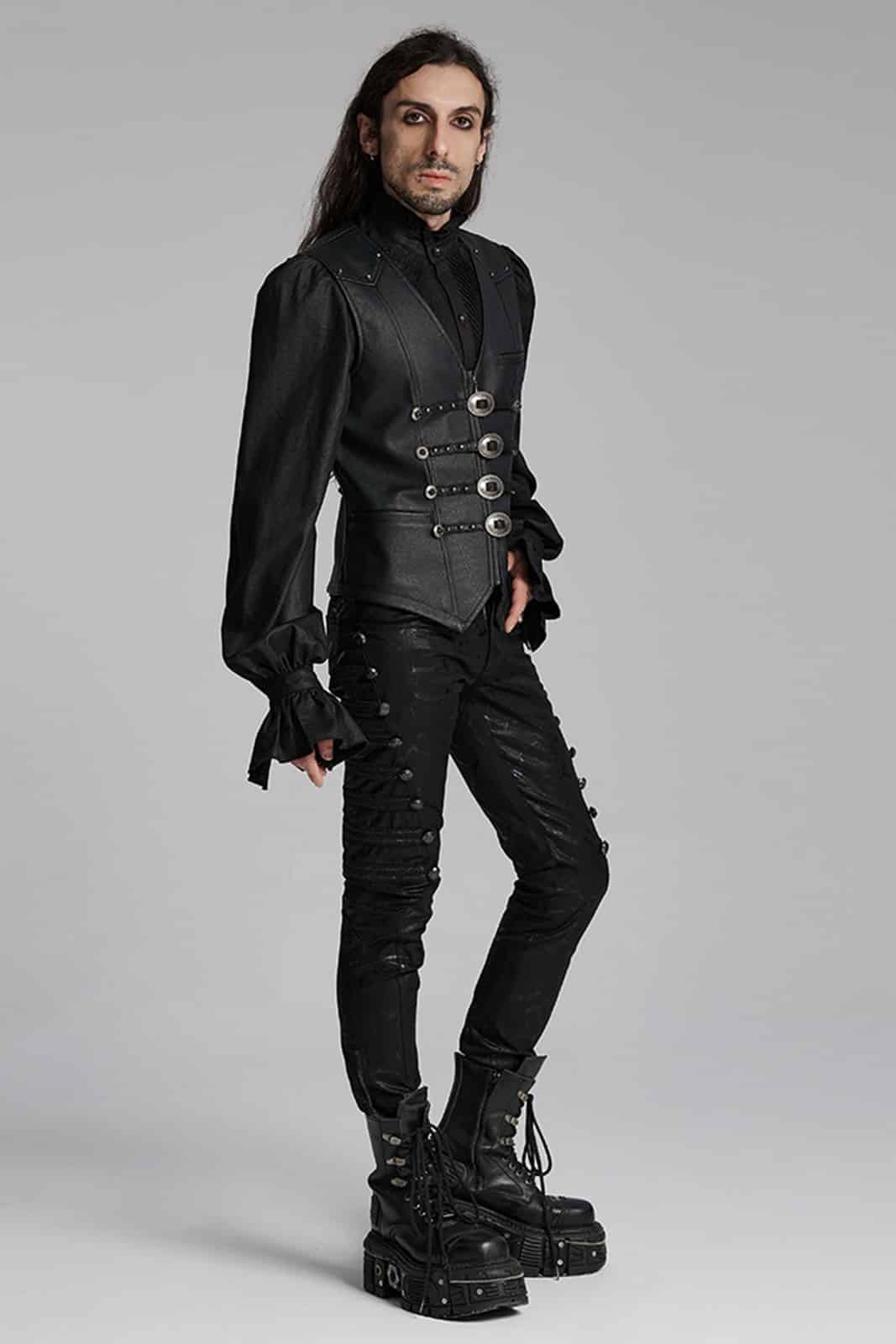 Der Schnitt erinnert subtil an das strukturierte Erbe der Herrenmode des 19. Jahrhunderts, in der Westen einst Formalität signalisierten – doch hier bekommt die Geschichte eine dunklere Wendung. Das Ergebnis? Ein Kleidungsstück, das sich in einer dunklen Gasse genauso wohlfühlt wie hinter der Bar eines verwunschenen Saloons.