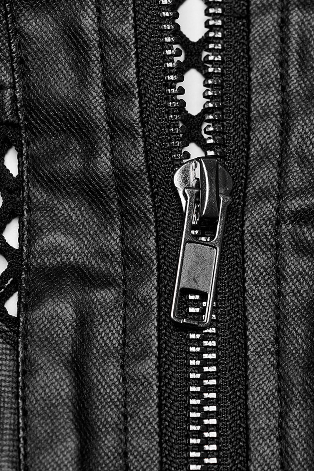 Übernimm die Nacht mit der Tormentor Weste, einer eindrucksvollen Mischung aus industriellem Touch und nächtlicher Energie. Diese taillierte Weste mit Reißverschluss ist für diejenigen konzipiert, die sich mit unvergleichlichem Stil durch die Gefilde der Dunkelheit und des Trotzes bewegen. Die Weste kombiniert den rauen Reiz des Dark Punk mit dem pulsierenden Rhythmus der Nachtszene und schafft so ein ebenso dynamisches wie unverwechselbares Stück.