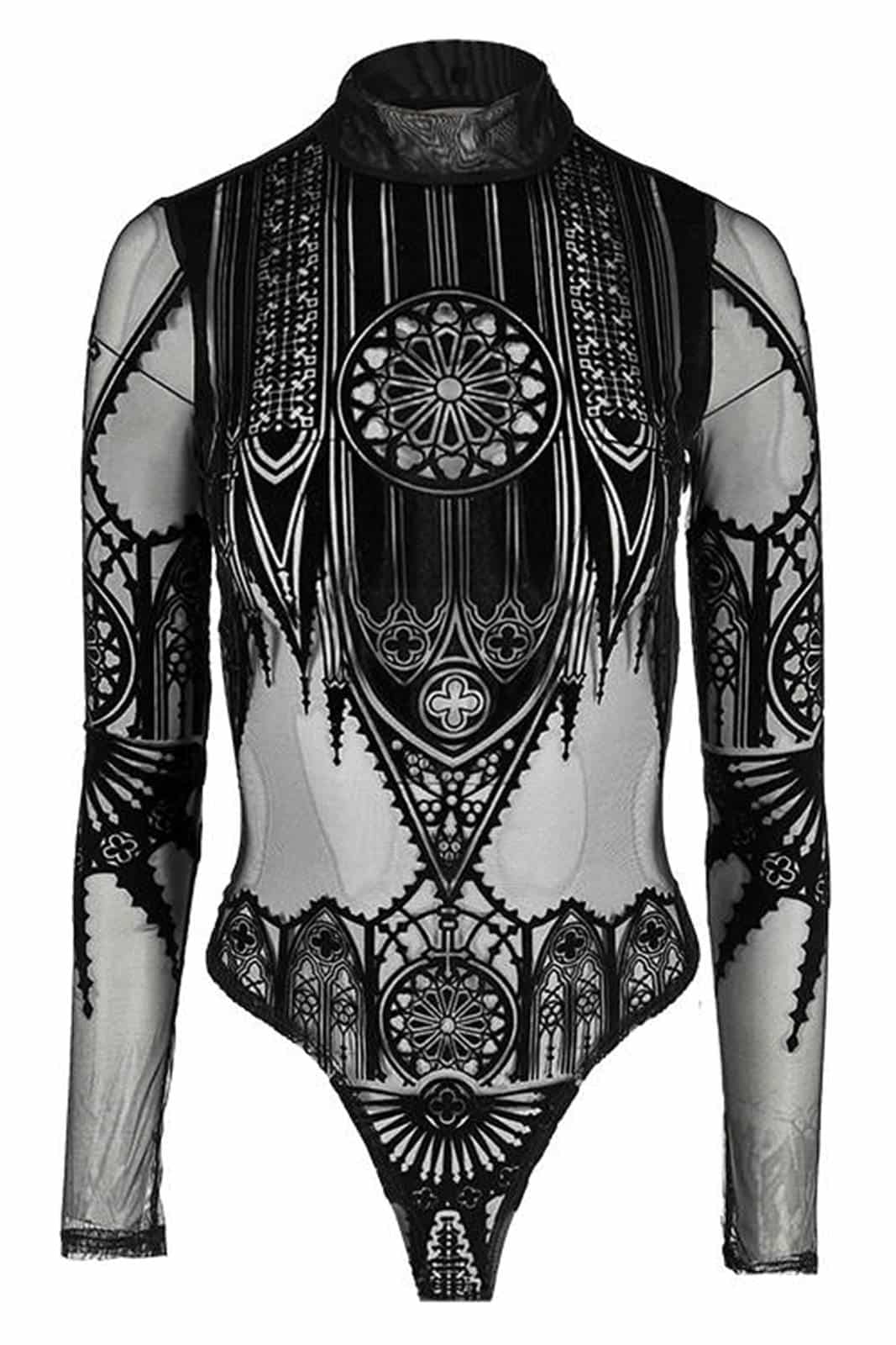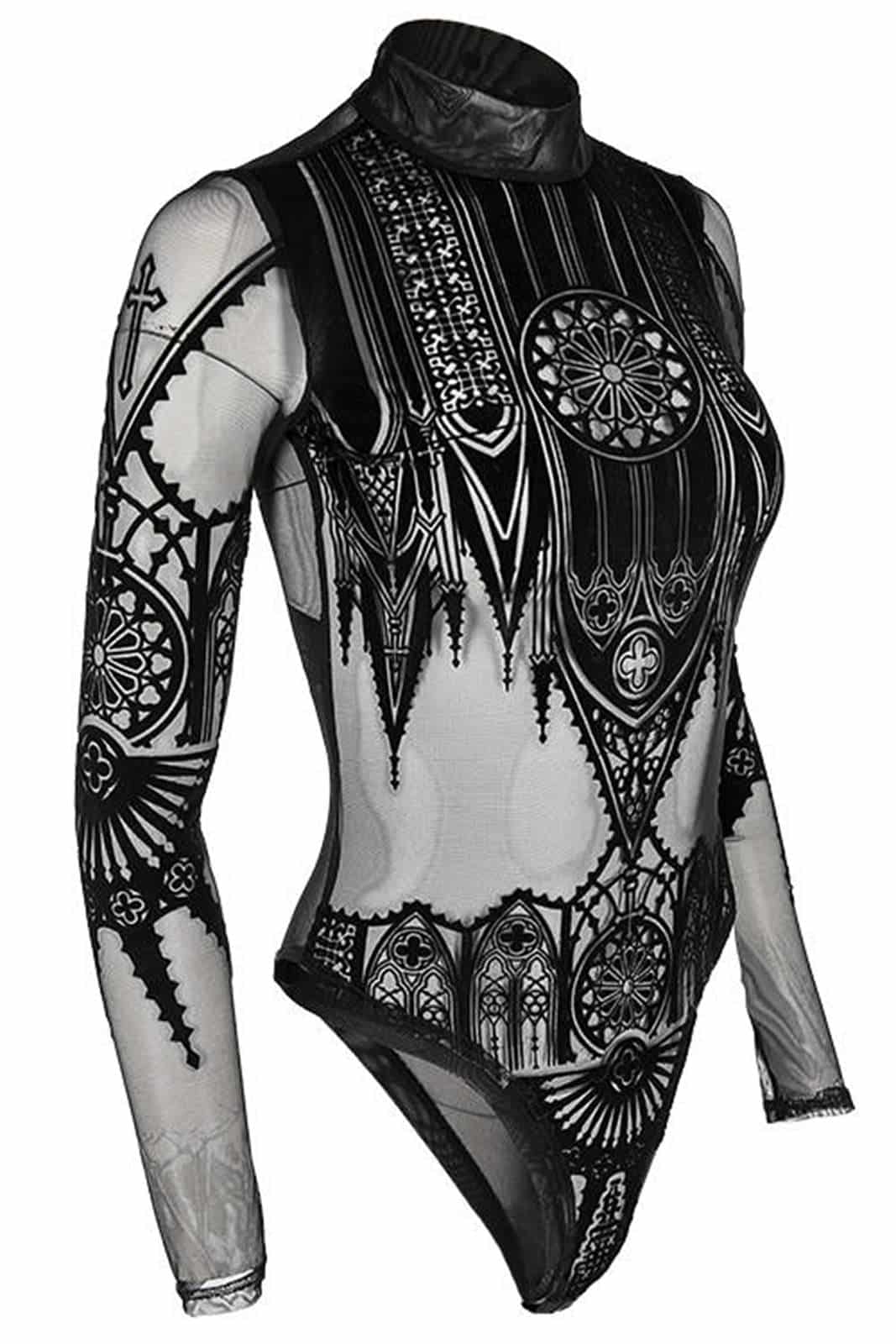 Gothic Body im Occult-Style aus feinstem Netzmaterial mit Stehkragen