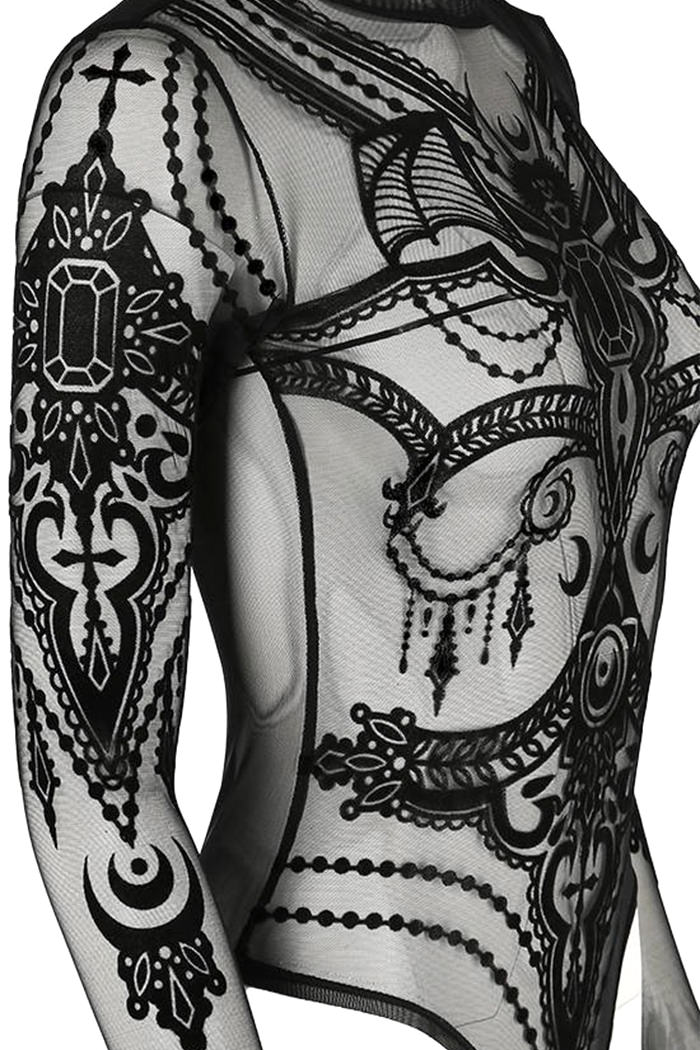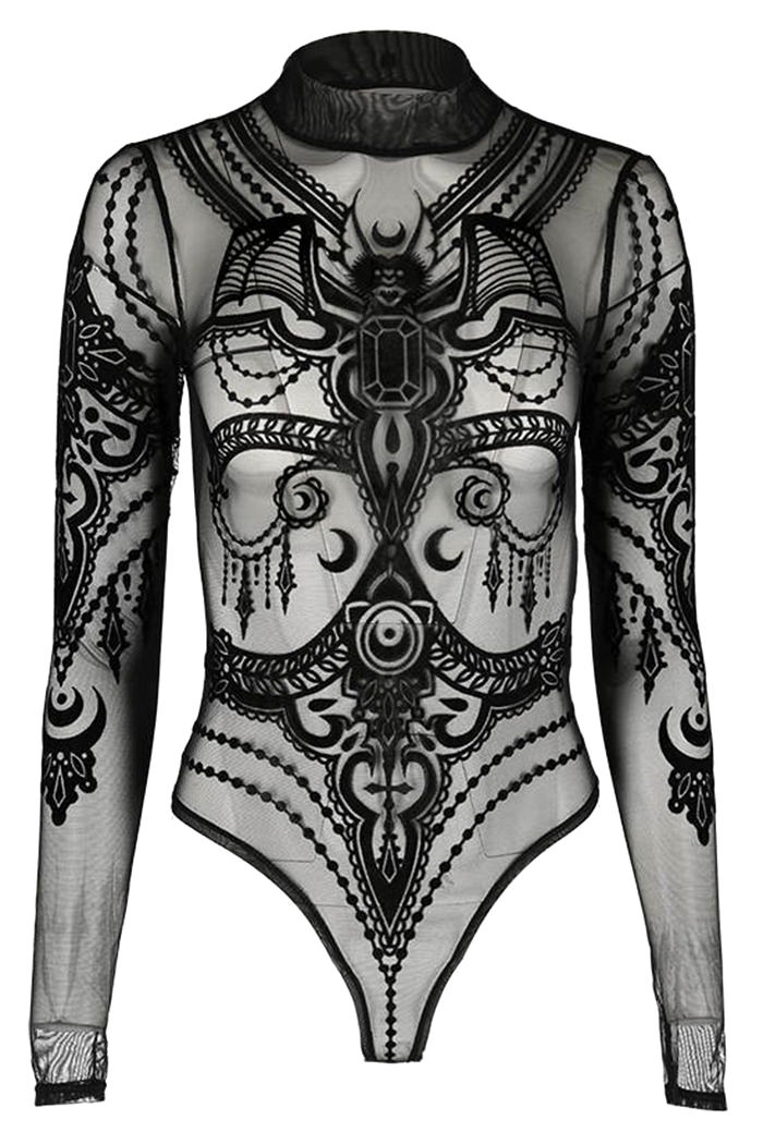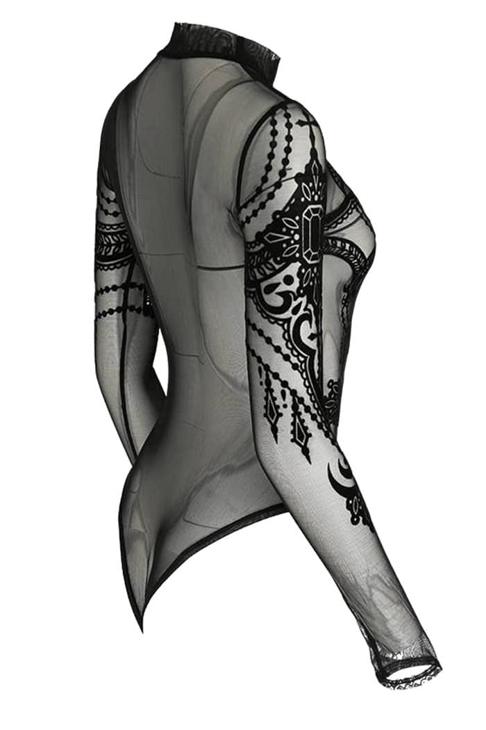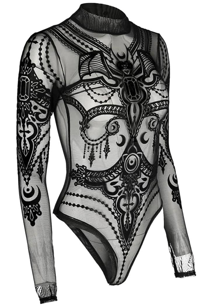 Gothic Body im Occult-Style aus feinstem Netzmaterial mit Stehkragen