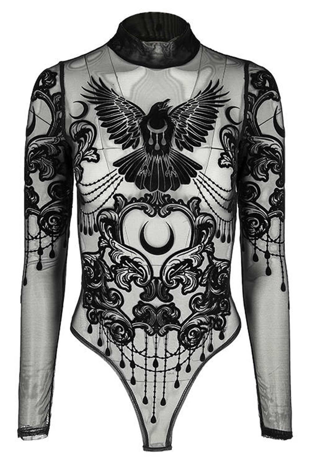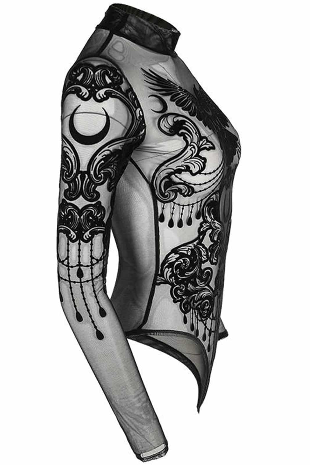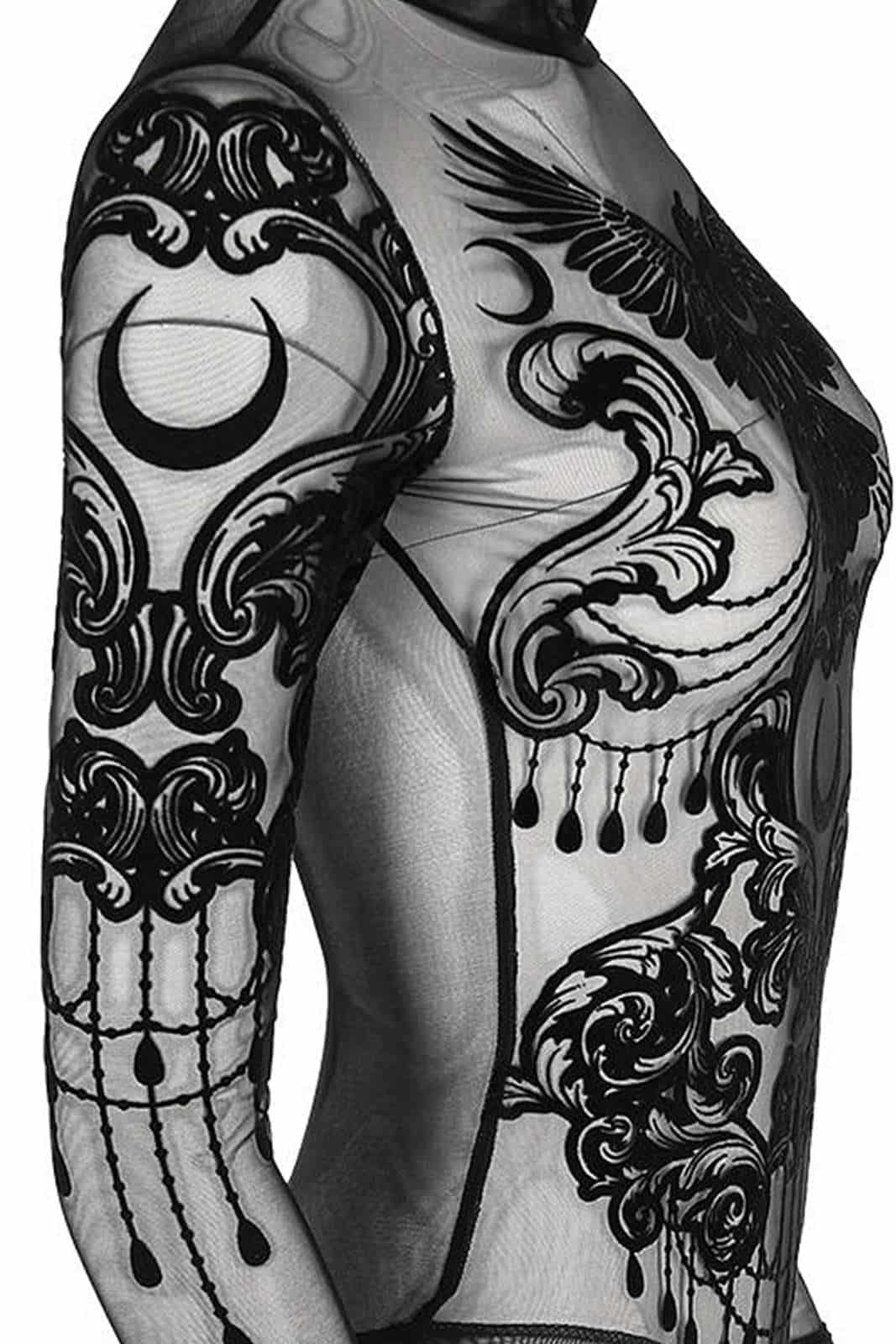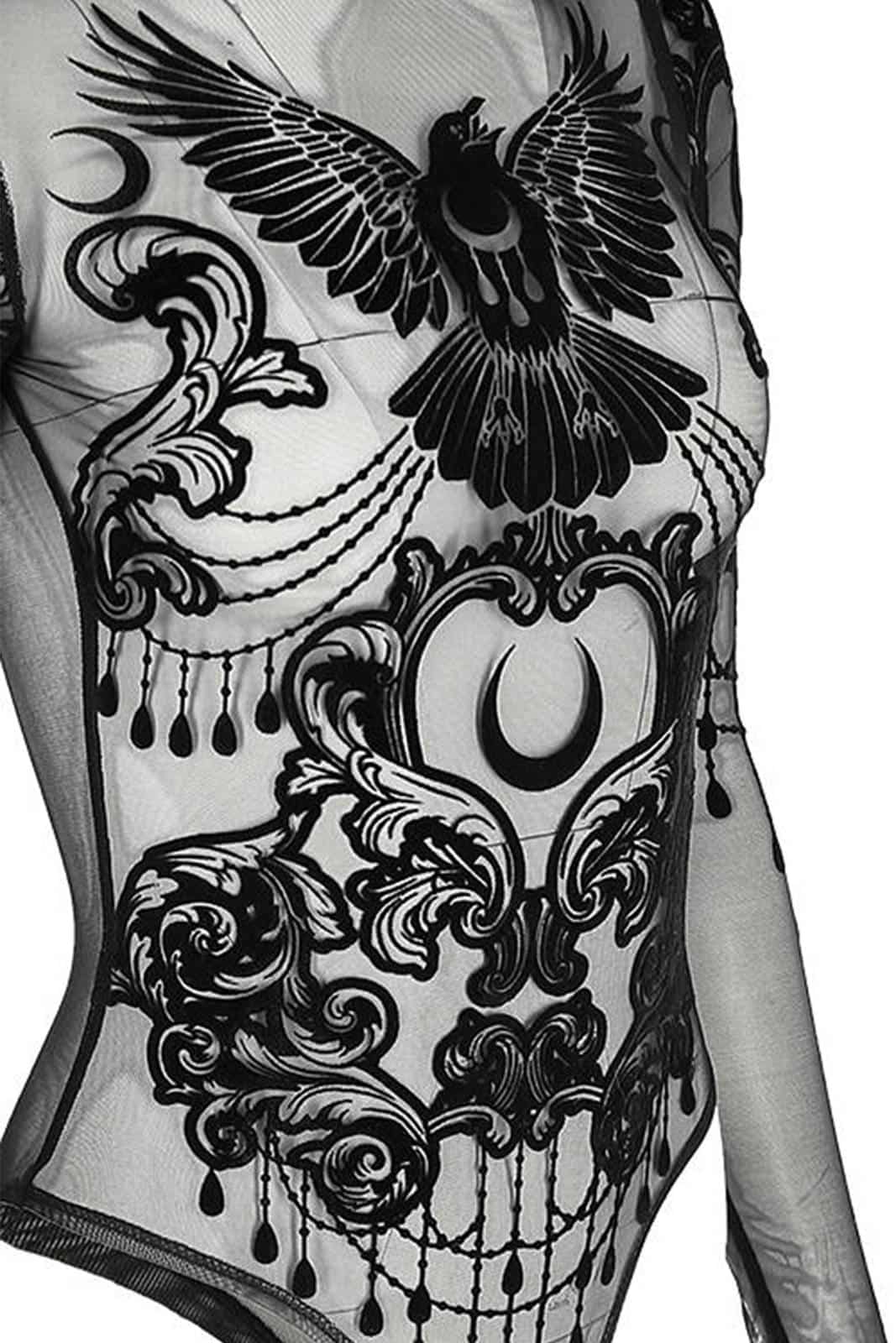 Gothic Body im Occult-Style aus feinstem Netzmaterial mit Stehkragen