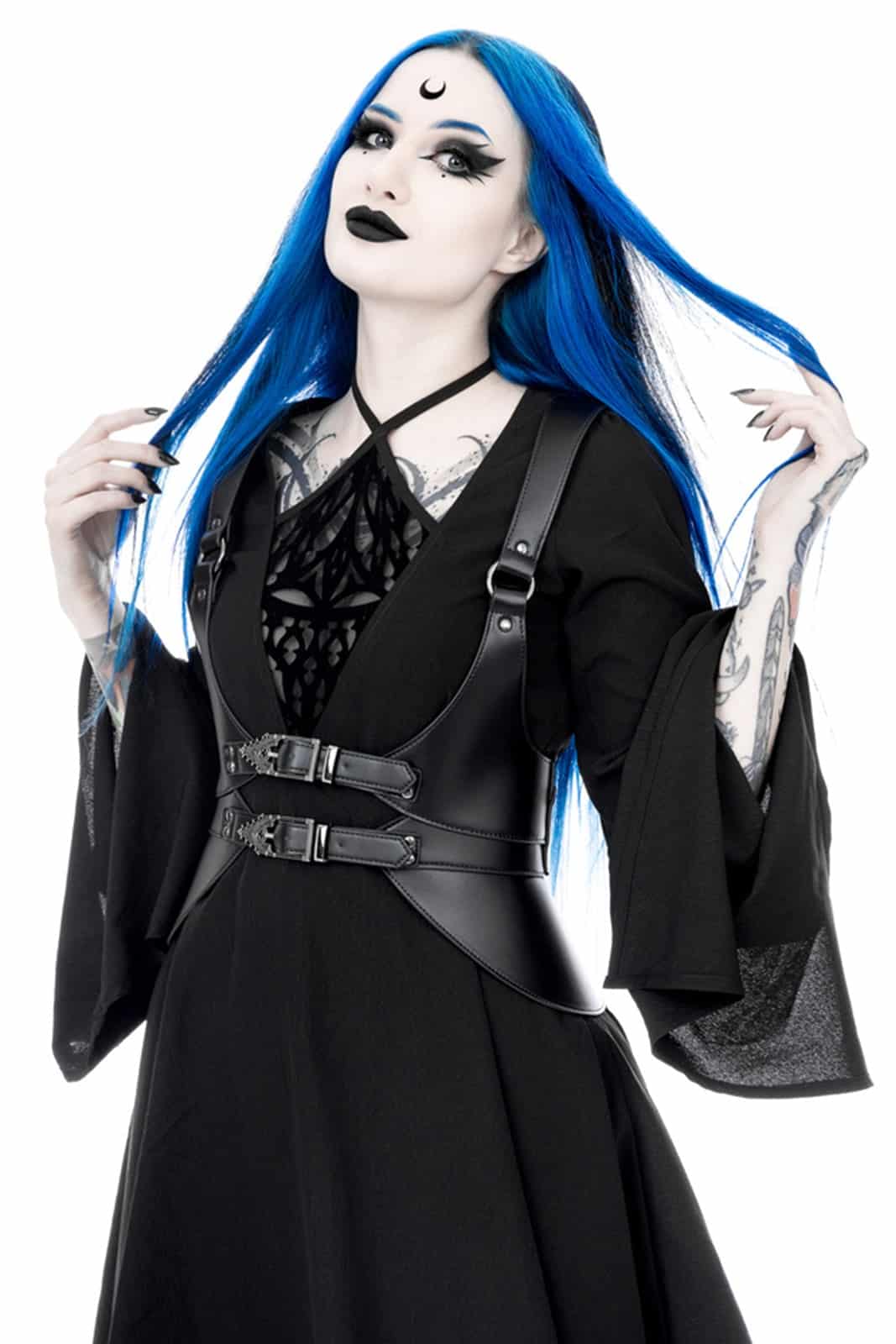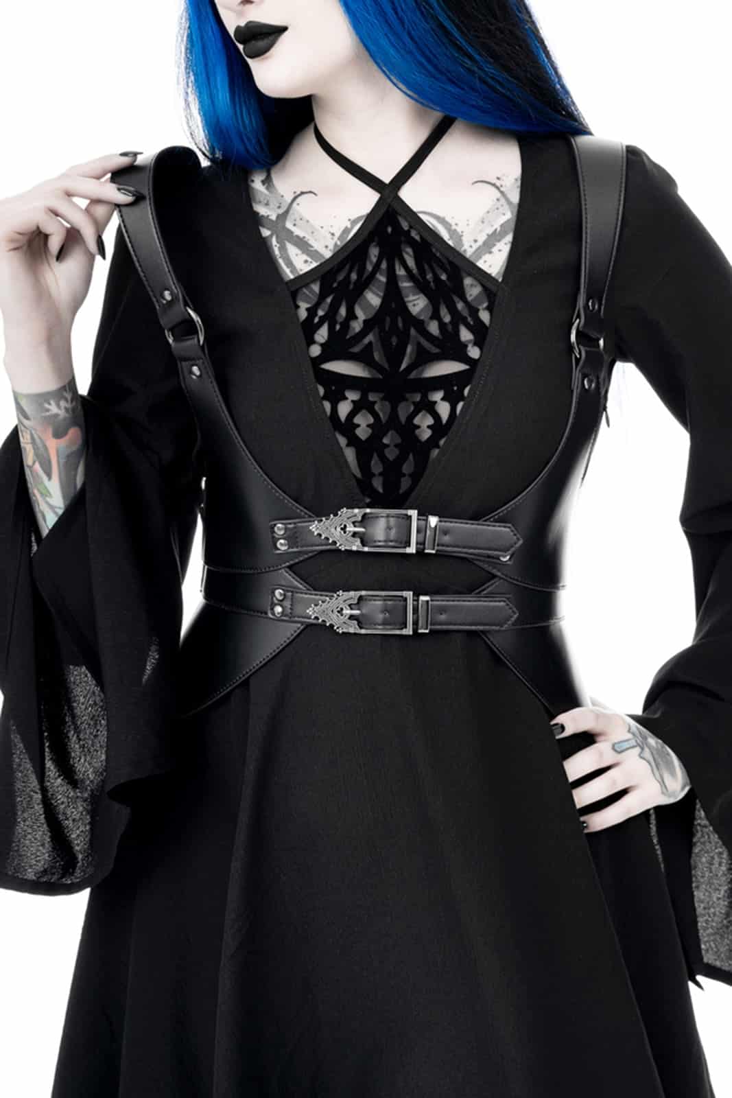 Unser Gothic-Harness ist ein Synonym für gewagte Mode. Er strahlt Selbstbewusstsein und Individualität aus und ermöglicht es Dir, Deinen einzigartigen Stil auszudrücken, ohne ein Wort zu sagen.Er schnürt die Taille, während die Schößchen-Seitenteile Deine Hüften betonen und eine atemberaubende Sanduhrfigur schaffen.