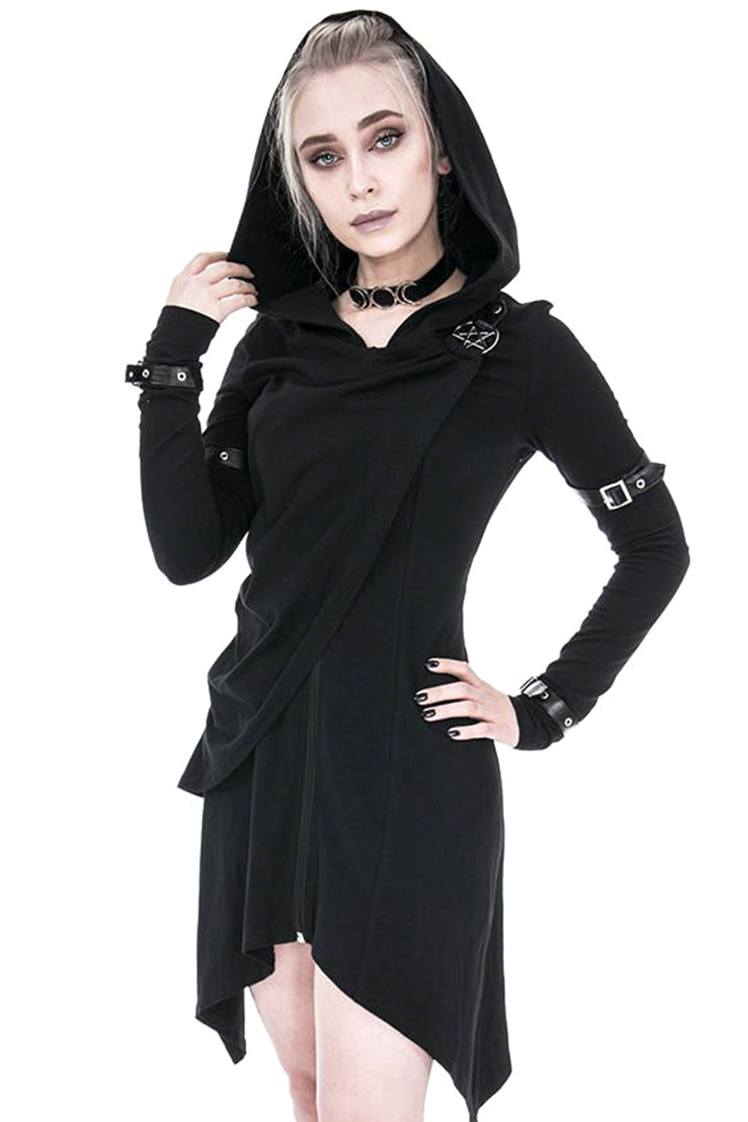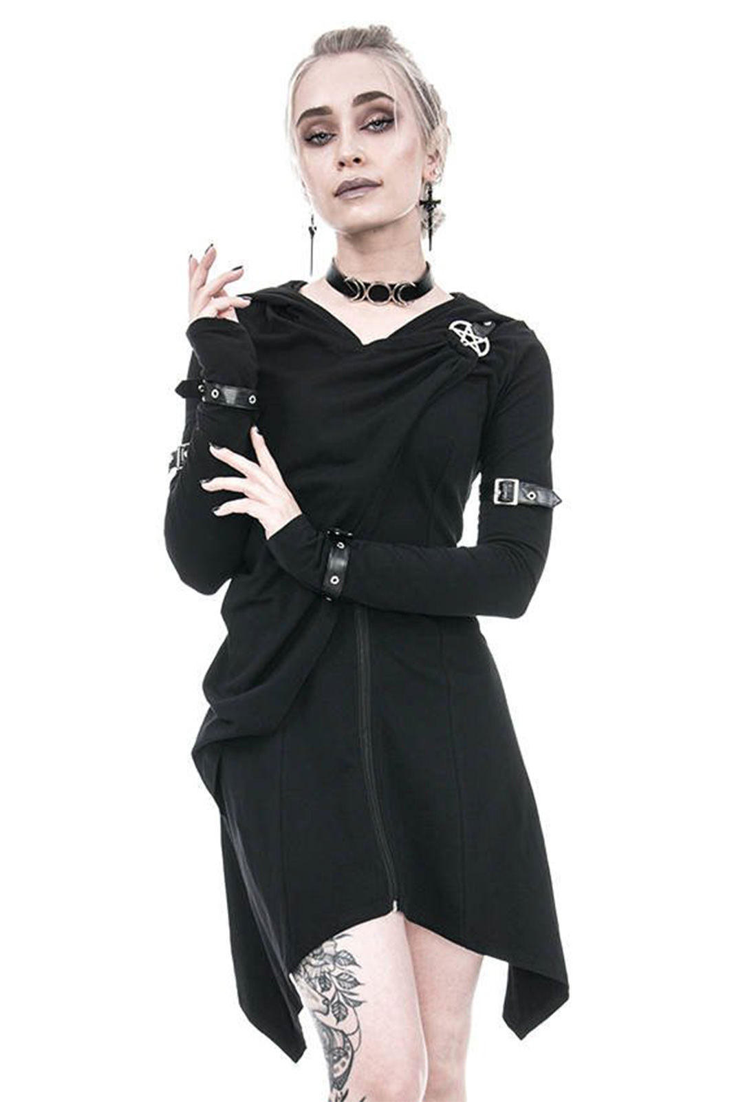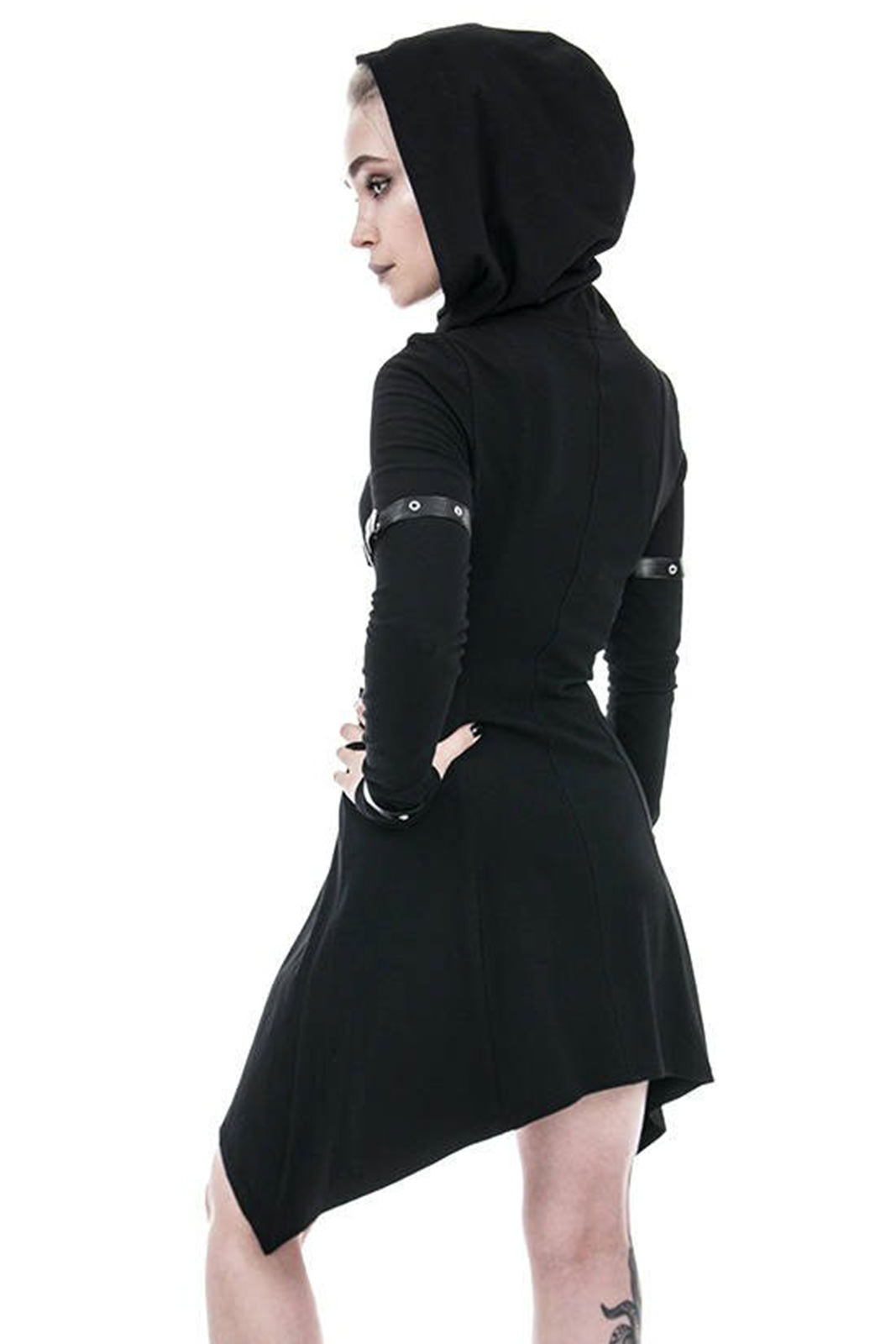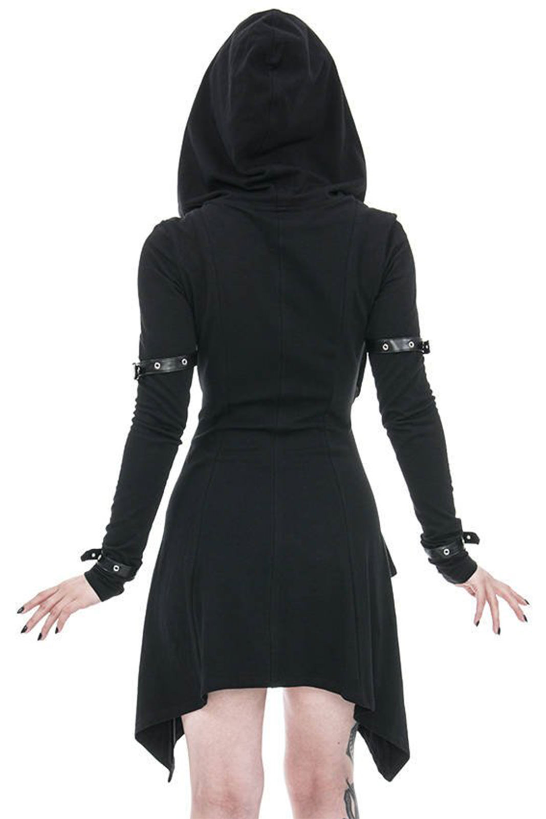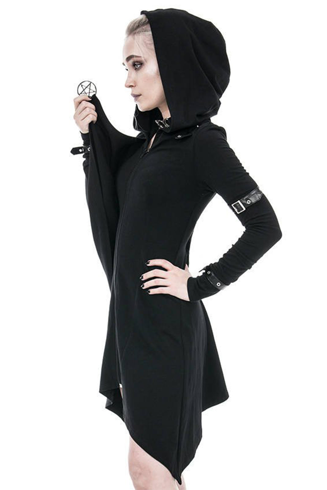 Gothic Zip-Hoodie aus reiner Baumwolle in asymmetrischen Schnitt. An den Hüften ausgestellt und in tailliert an der Hüfte. Nicht zu streng, aber dennoch betont es Deine Formen.