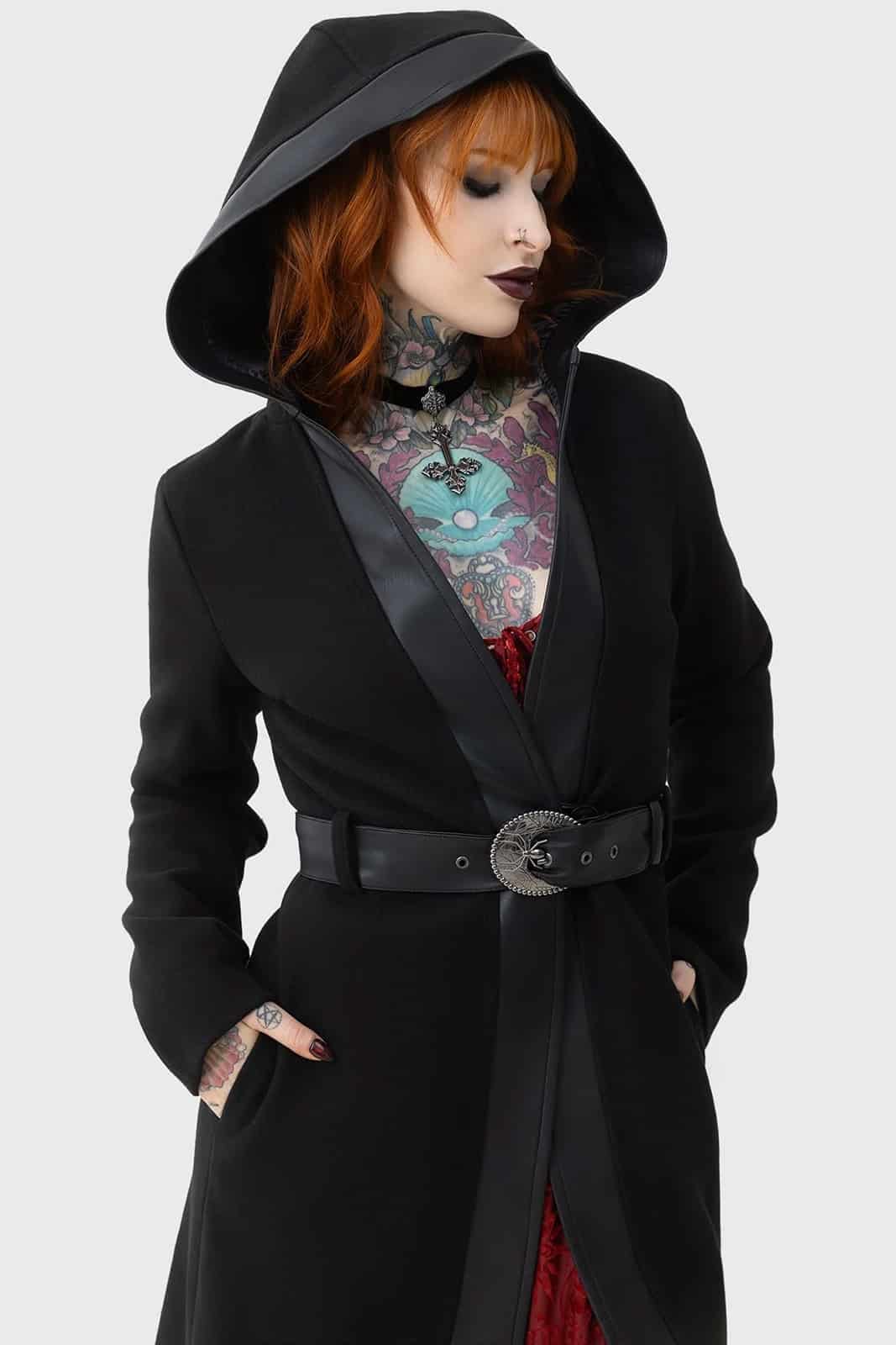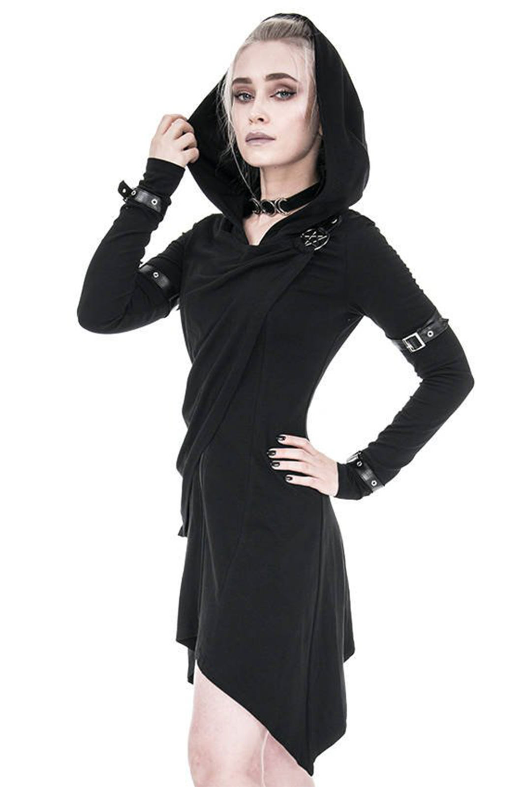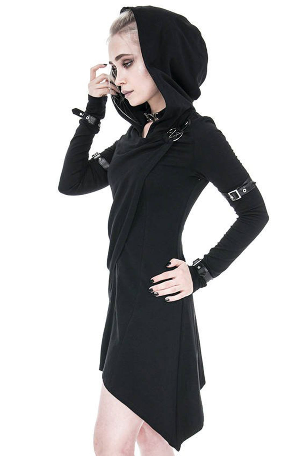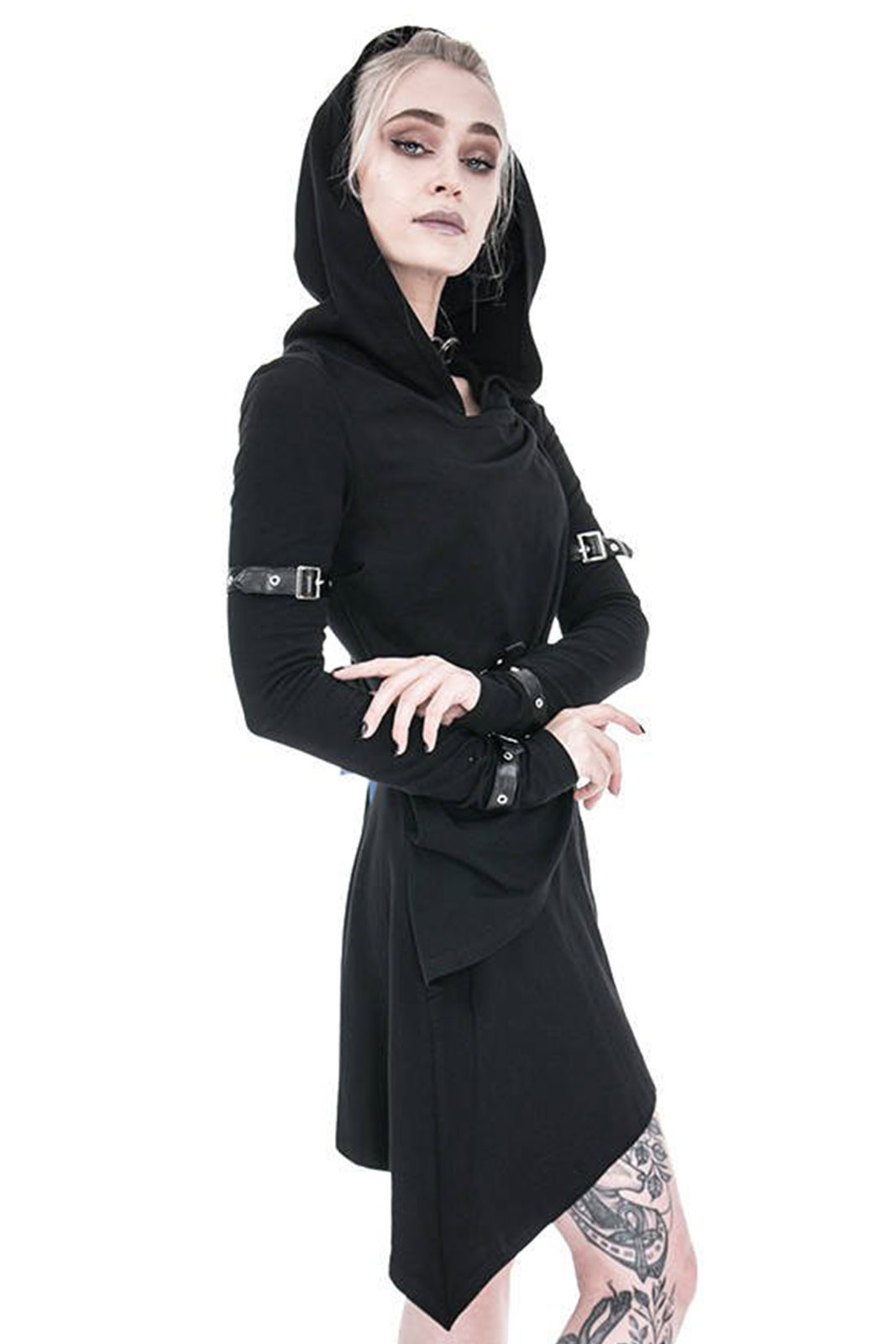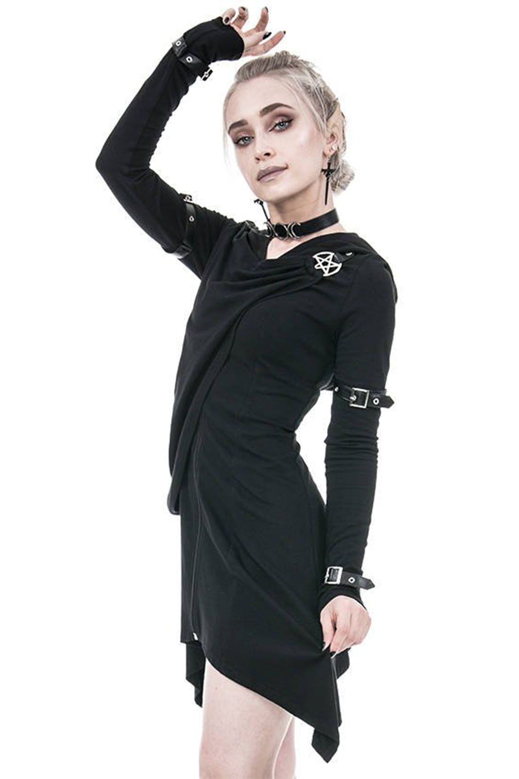 Gothic Zip-Hoodie aus reiner Baumwolle in asymmetrischen Schnitt. An den Hüften ausgestellt und in tailliert an der Hüfte. Nicht zu streng, aber dennoch betont es Deine Formen.