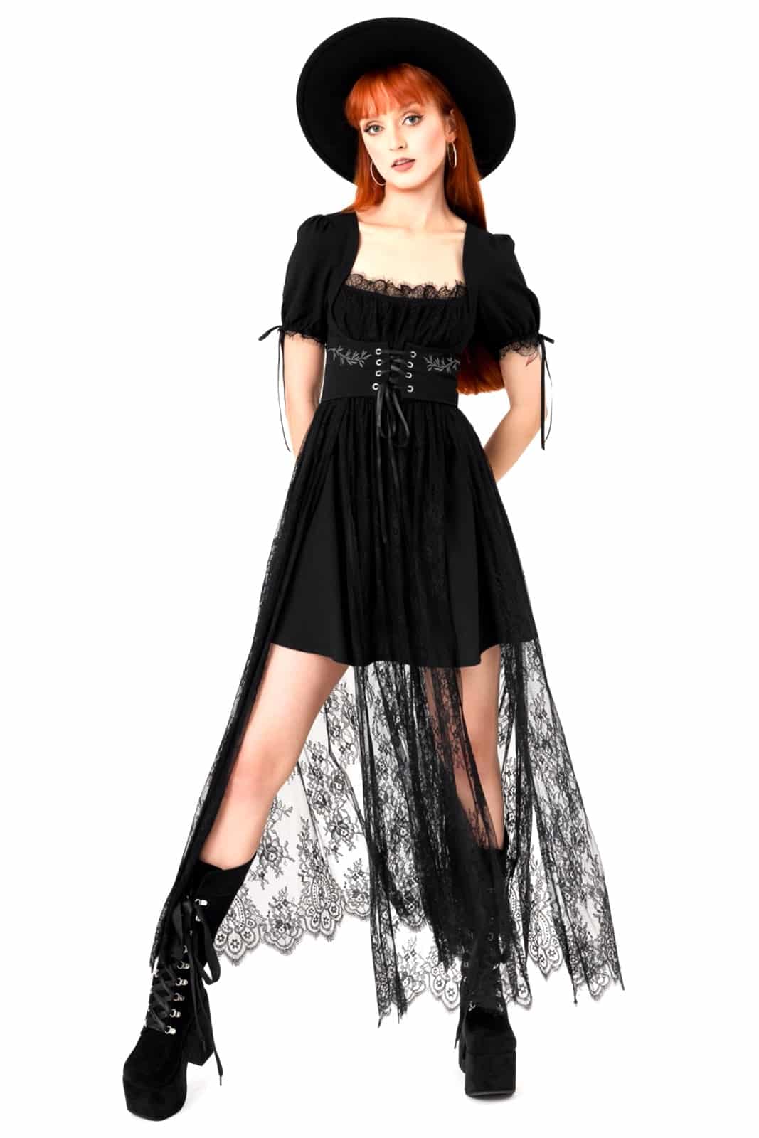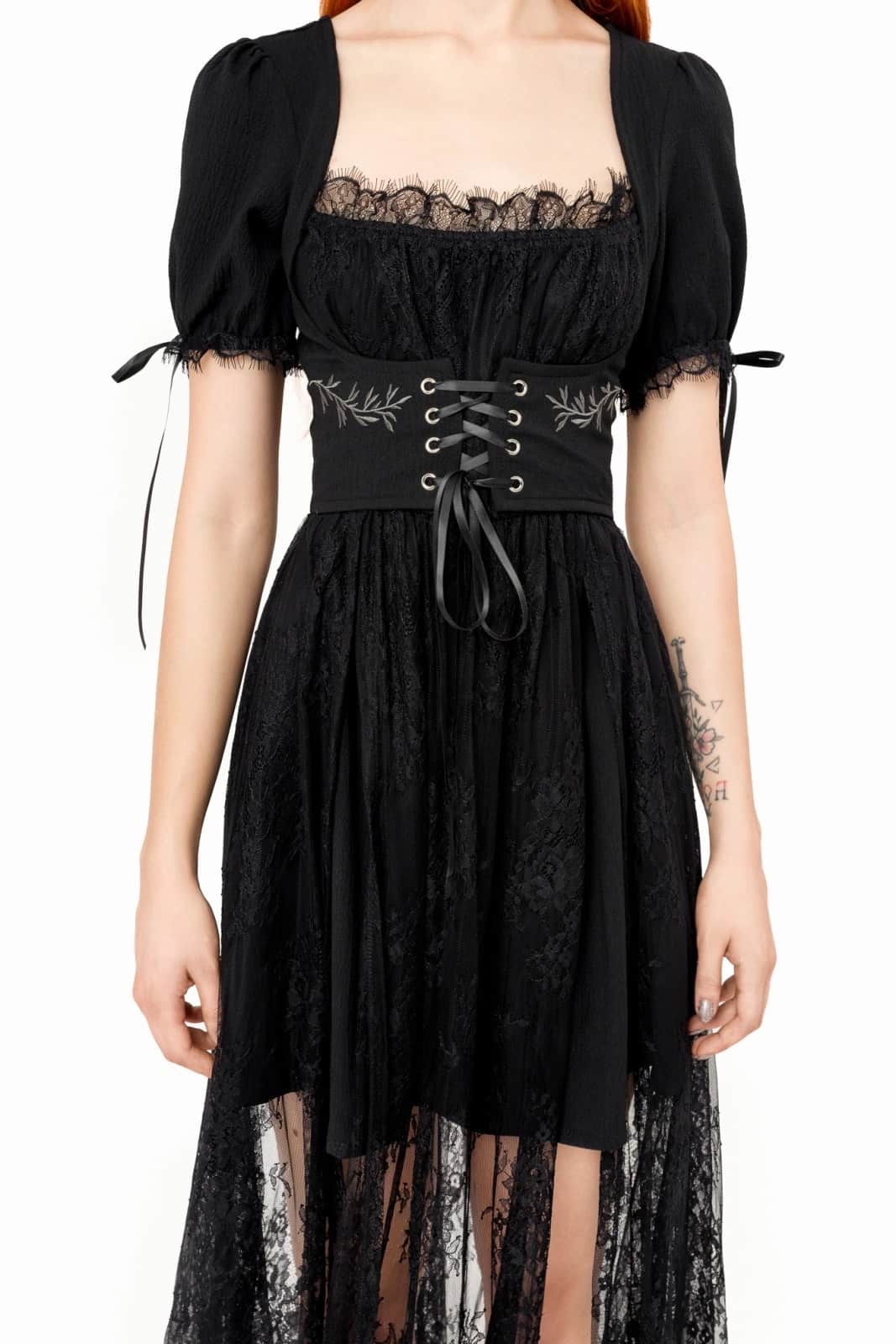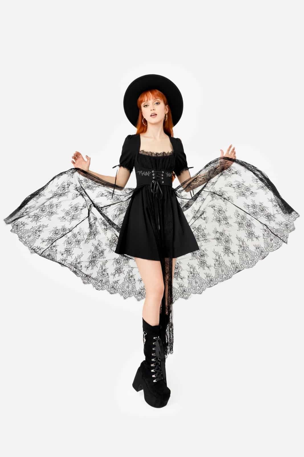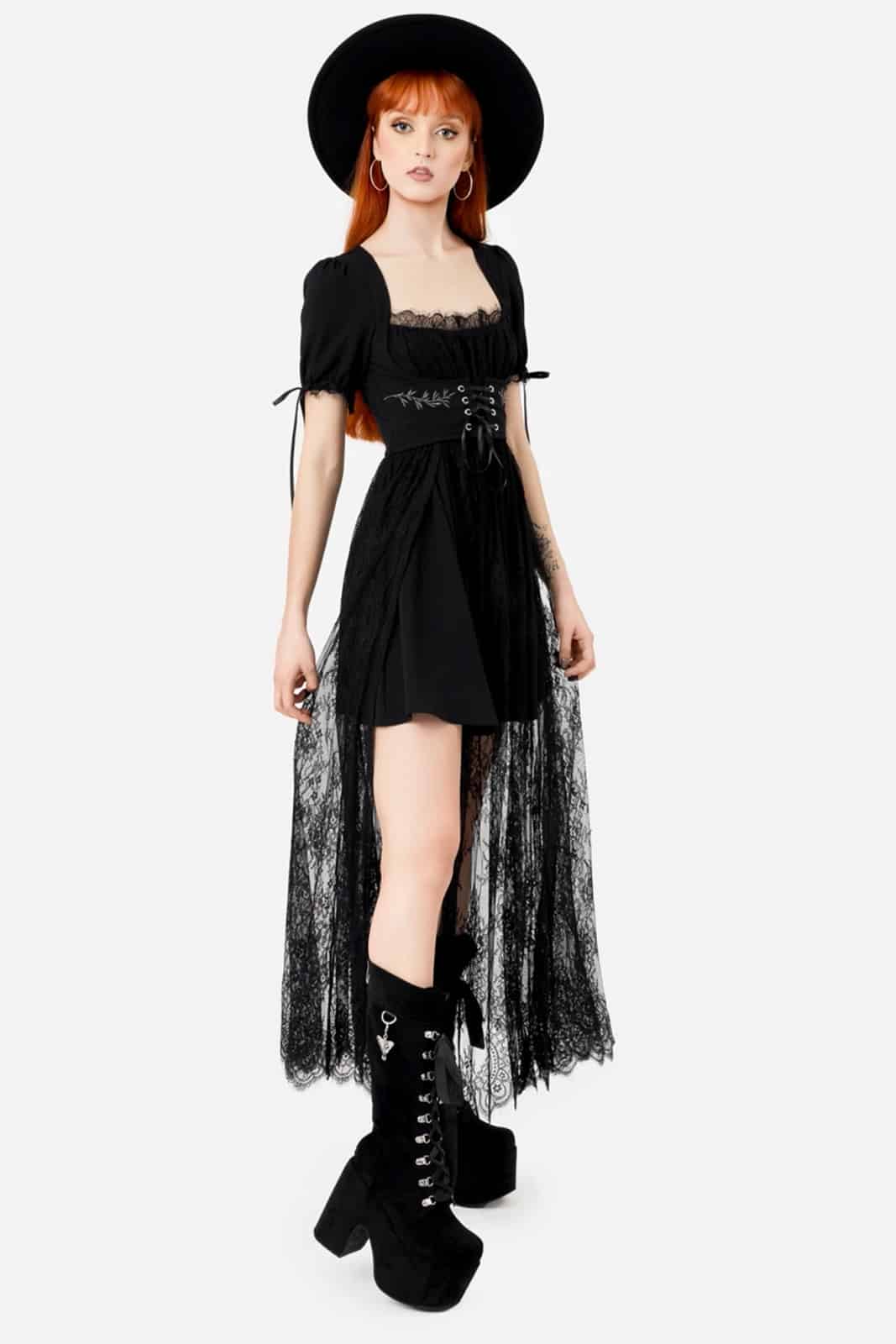 Versteck dich nicht vor der Dunkelheit – tanze in ihr. Inspiriert von der Ästhetik der Cottagecore-Hexe und der Gothic-Queen, spiegelt das Wild Incantations Maxikleid unsere Liebe zu Spitze, Mysterium und himmlischer Schönheit wider.
