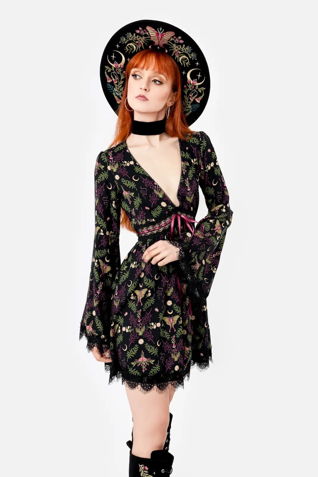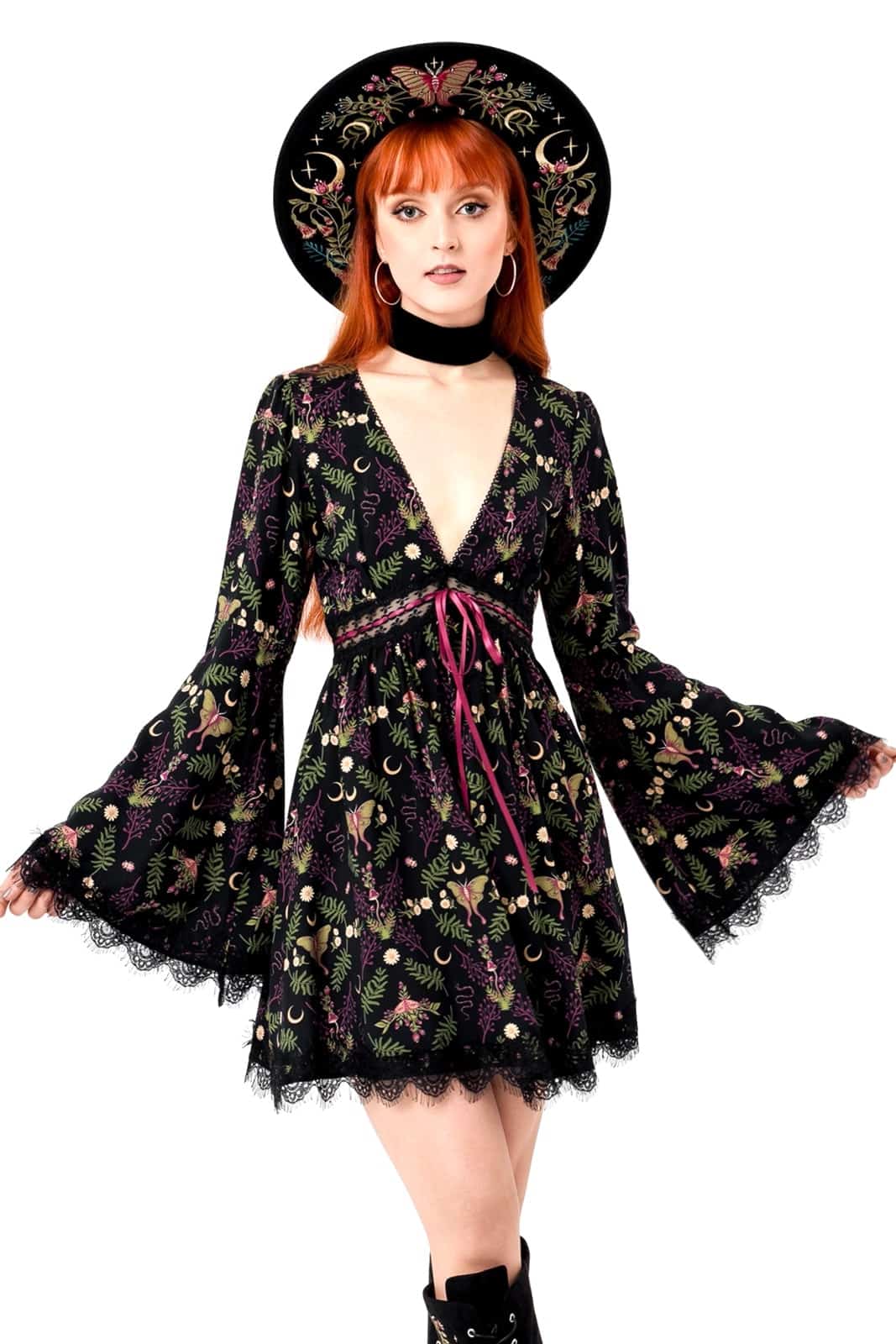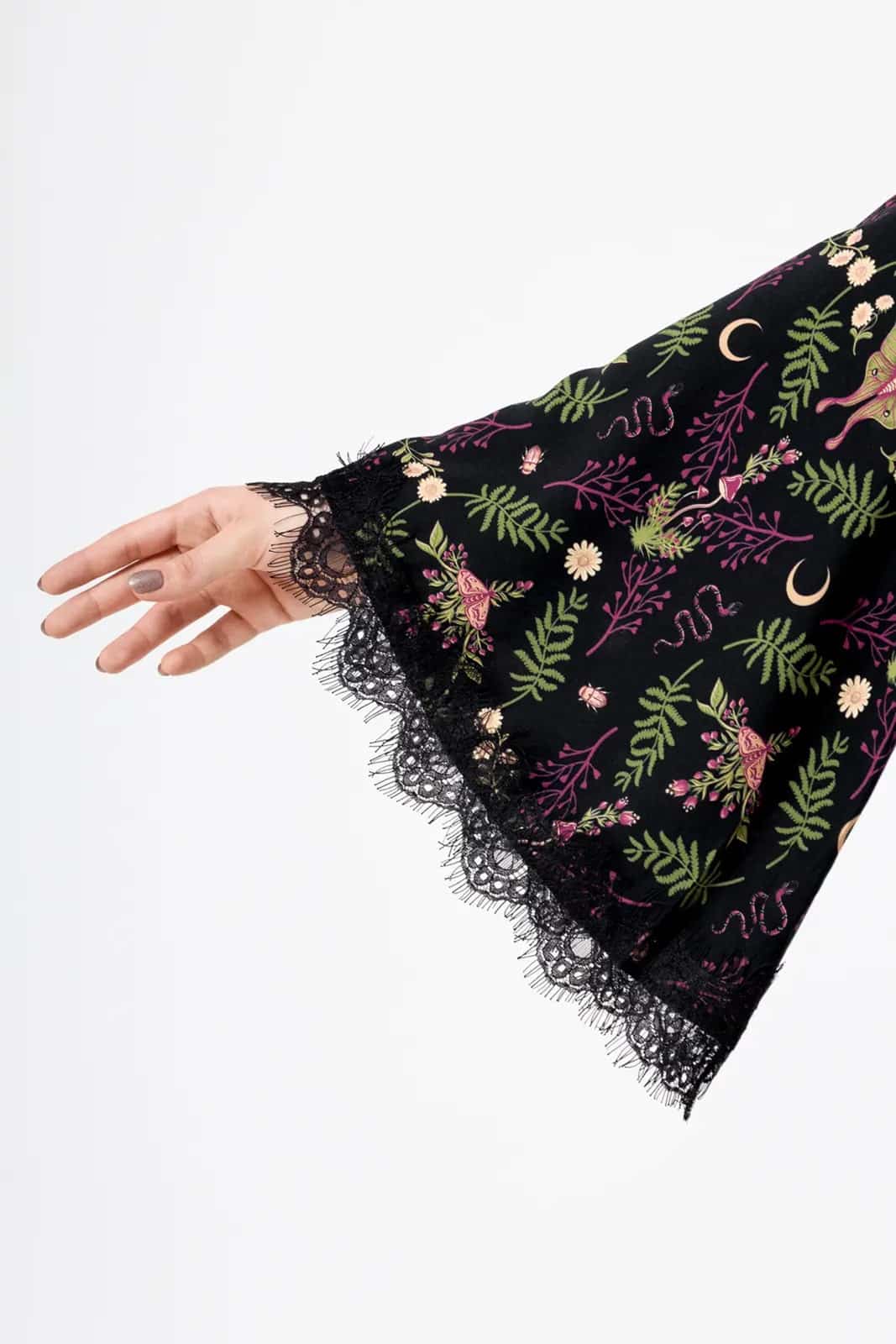Das Wilderwood Minikleid ist mit zarten Motten, Schlangen und wilder Flora verziert – Symbole der Transformation und des Unsichtbaren. Perfekt für alle, die Schönheit in der Dunkelheit finden und deren Seele so ungezähmt ist wie der flüsternde Wald.