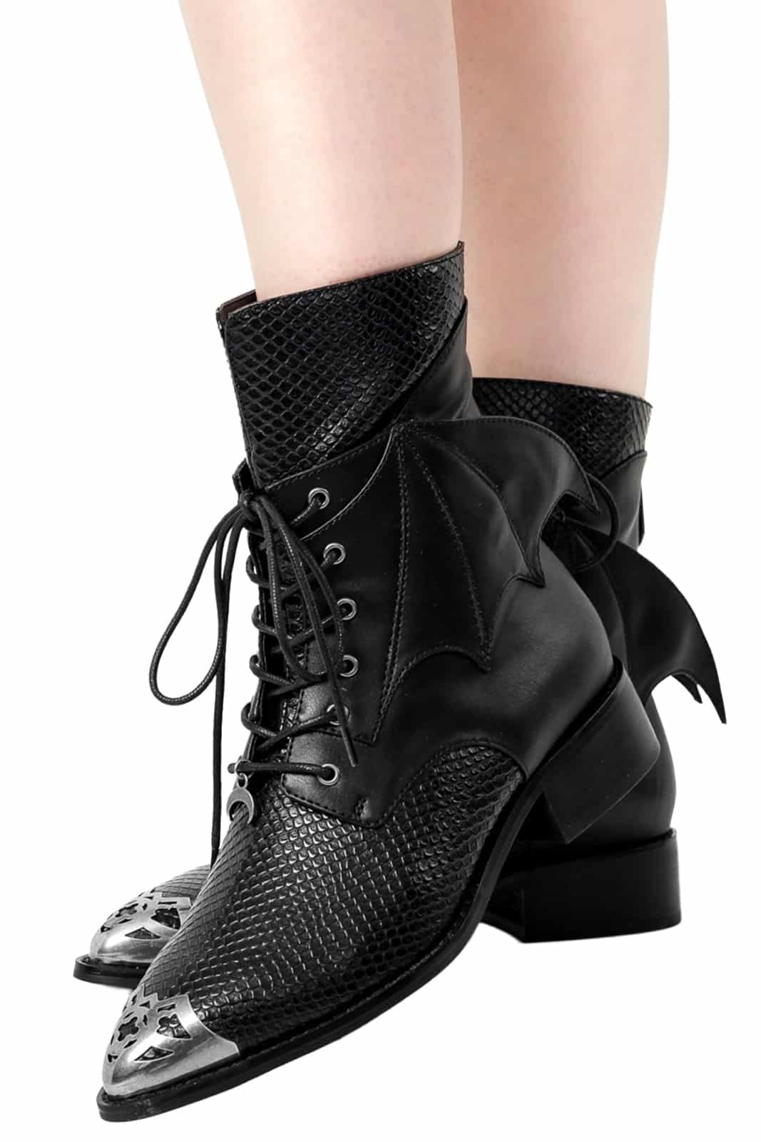 Niedriger Absatz und komfortable Höhe – ideal für den täglichen Gothic-Look