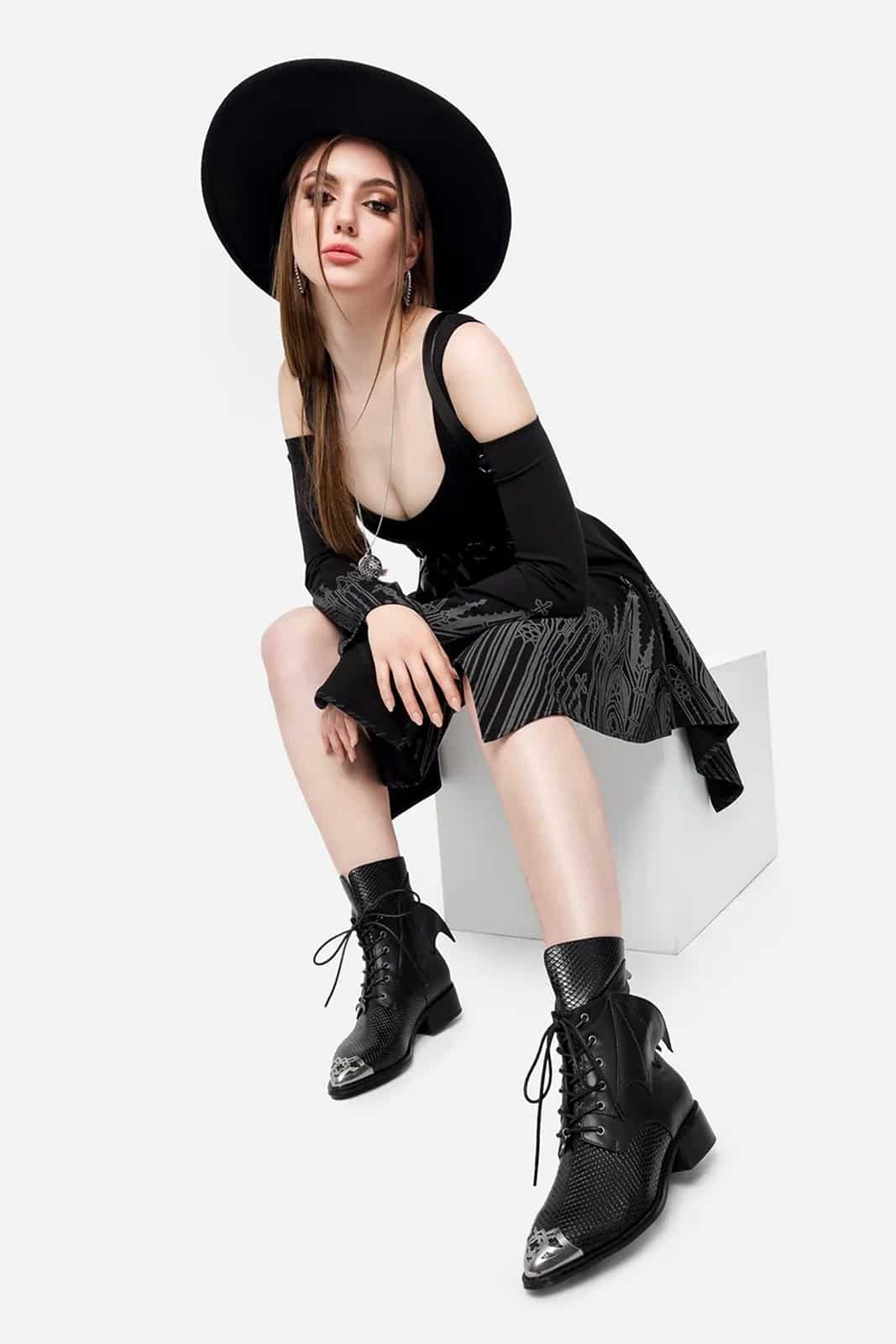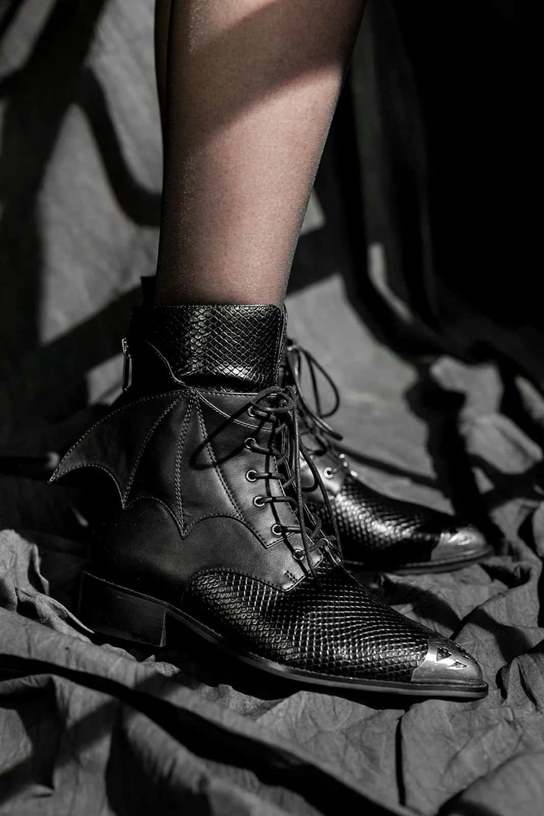 Diese Stiefeletten sind perfekt für alle, die ihren Gothic-Stil mit einem Hauch architektonischer Raffinesse unterstreichen möchten.