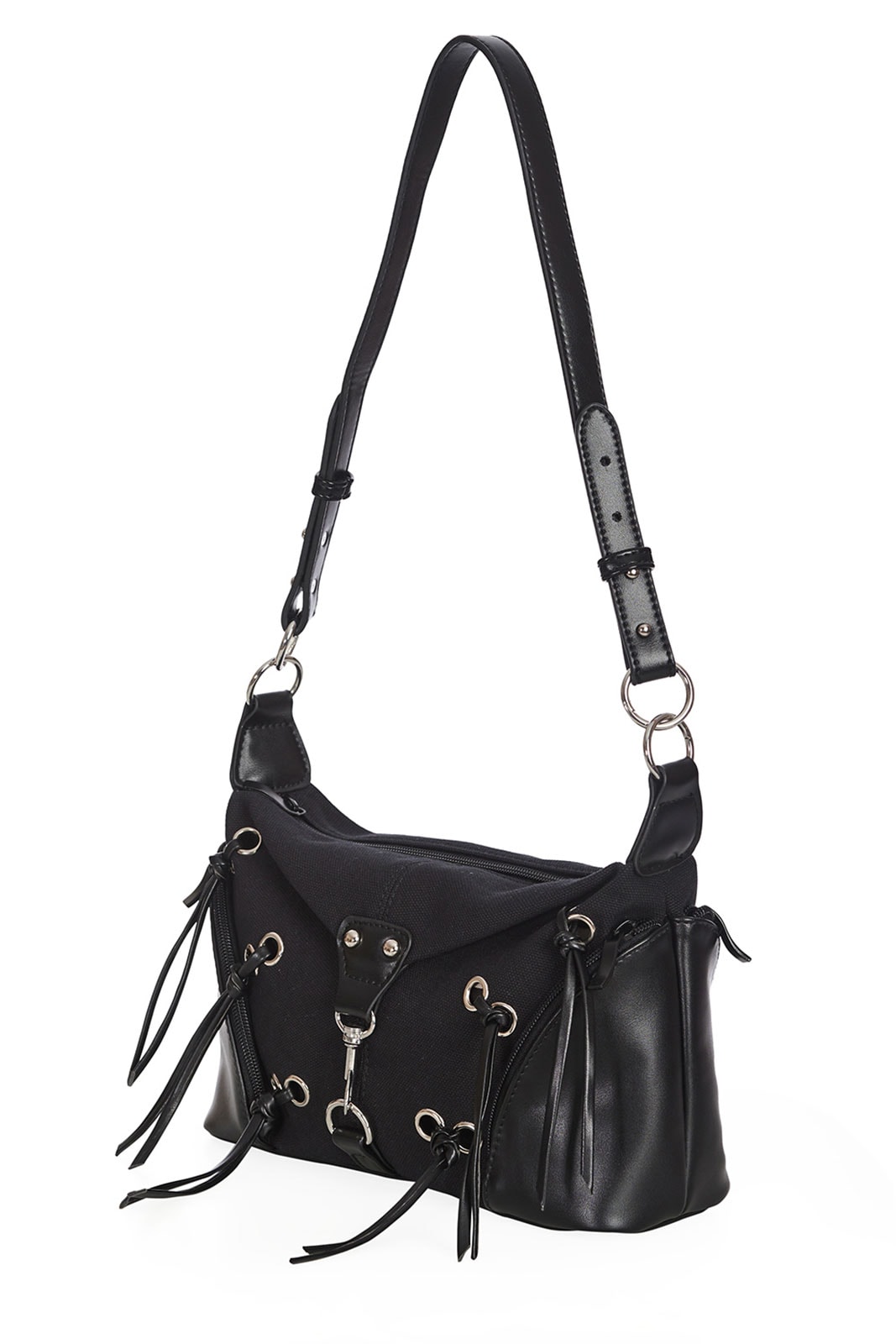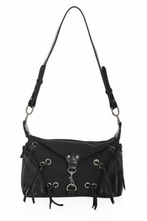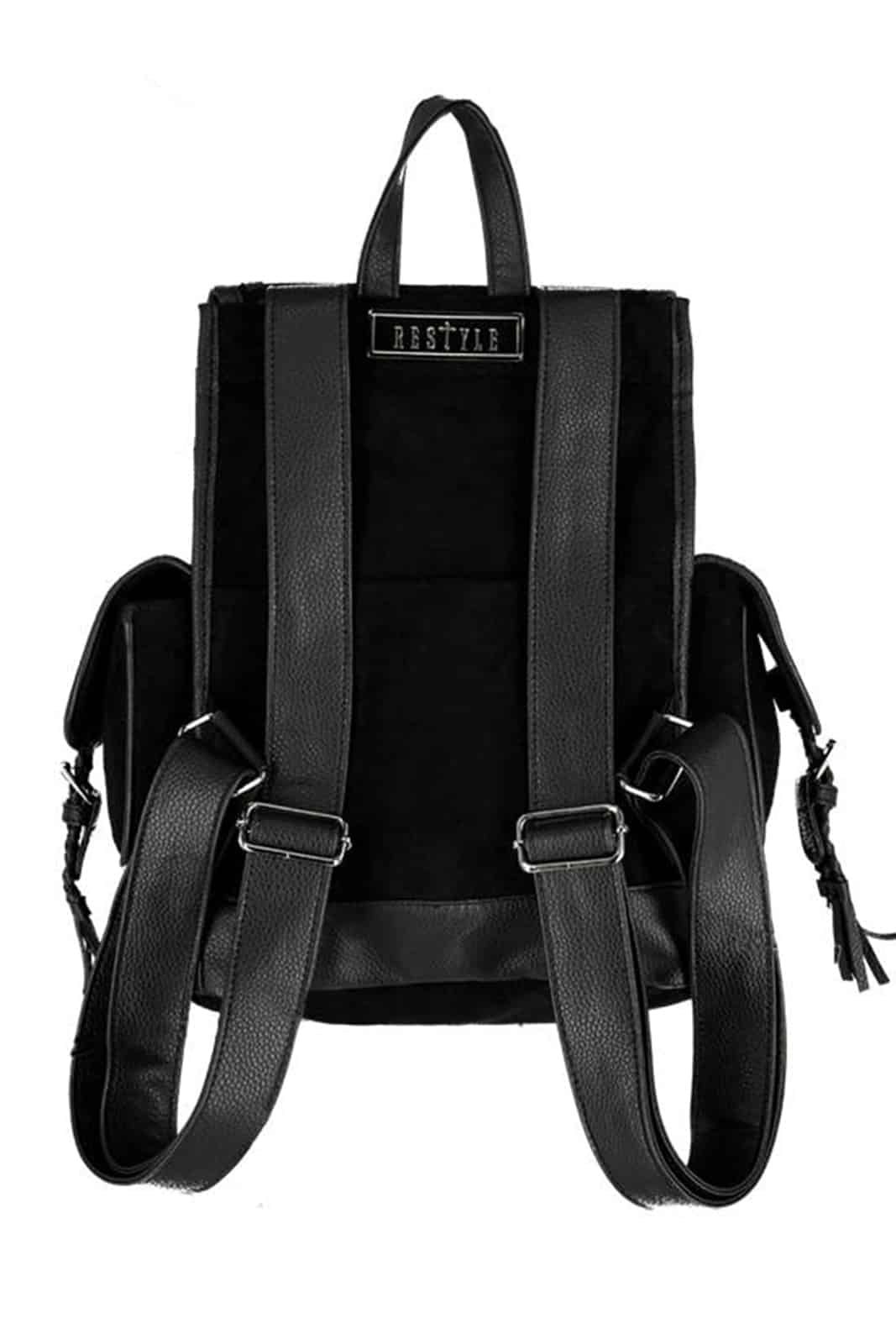 Aufwändige Stickereien und reichhaltige, dekorative Stichmuster verschönern die gesamte Vorderseite des Rucksacks. Wunderschön gestickte Farnblätter, umgeben von Sternen, Zweigen und Kräutern, ziehen die Aufmerksamkeit auf sich. Dieser Gothic-Rucksack ist aus Samt gefertigt und hat zwei große Seitentaschen. Unter dem praktischen Magnetkopf findet sich ein zusätzlicher Gurt zum Schließen des Rucksacks.