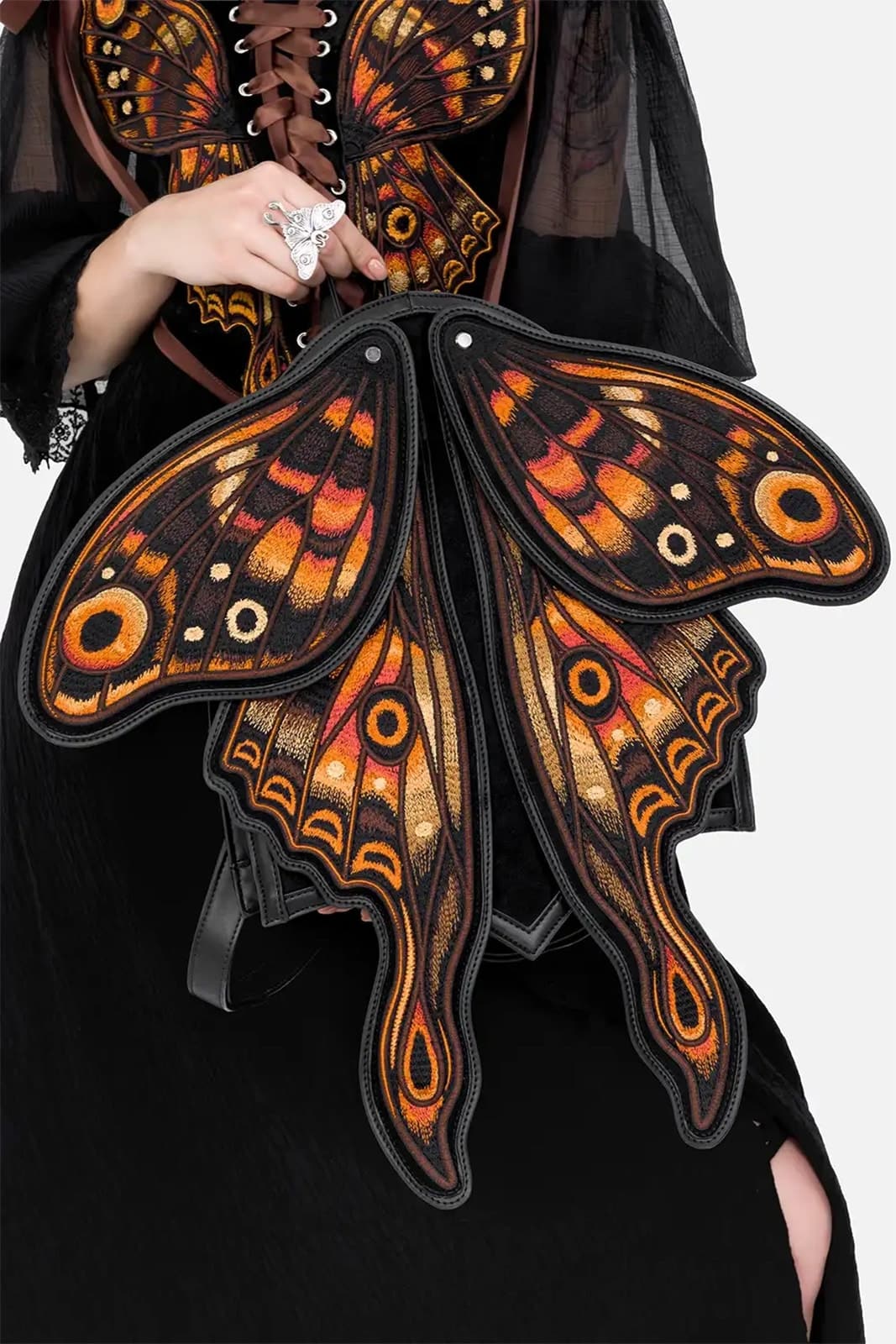 Der IGNIS MOTH Rucksack vereint märchenhafte Nostalgie mit kunstvoller Handwerksästhetik. Die realistisch gestalteten, vollständig bestickten 3D-Mottenflügel in warmen Herbsttönen wirken lebendig und verleihen dem Rucksack eine magische, naturinspirierte Ausstrahlung. Bewegliche Flügel, mondförmige Details und das strukturierte Design machen ihn zu einem ausdrucksstarken Statement-Piece für Fairycore, Witchy Looks oder Festivals.