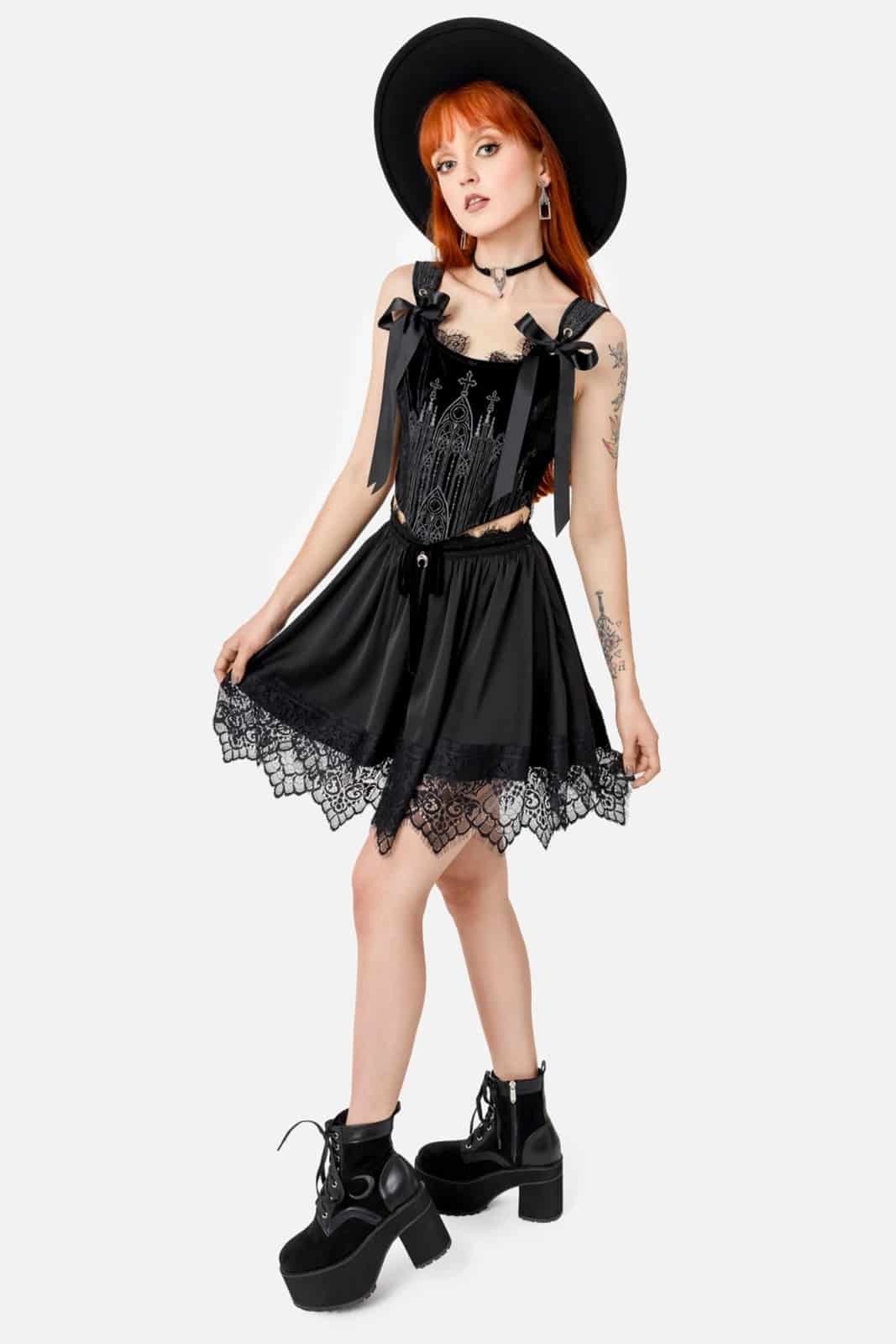 Das Sacred Rituals Korsett-Top unterstreicht Deine Präsenz und Deinen majestätischen, kraftvollen Stil. Bring Deine Gothic-Garderobe mit diesem Meisterwerk in Kathedralenform auf das nächste Level!