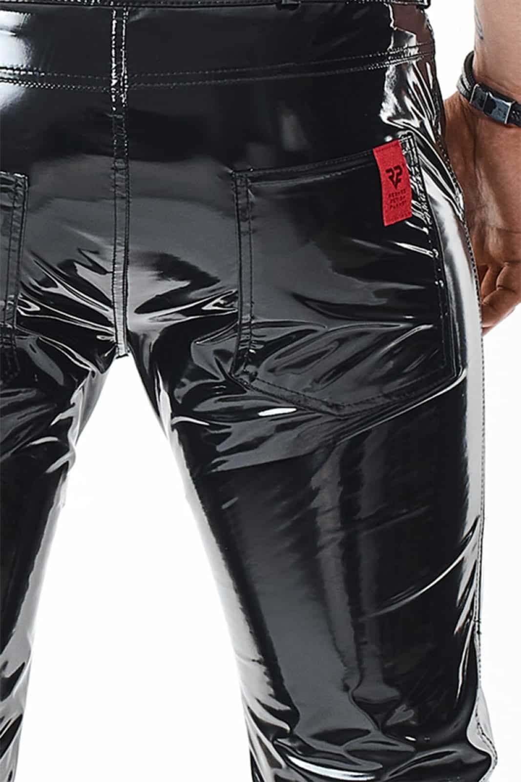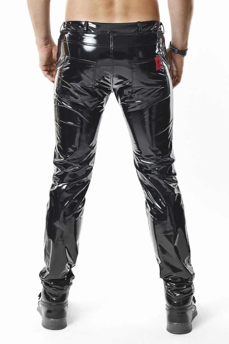 Hose mit niedriger Taille, komplett aus elastischem schwarzem PVC. Sie sieht umwerfend aus, ist aber auch praktisch. Die niedrige Taille und die schmal zulaufende Hüftlinie betonen sinnlich die Form des Gesäßes. Auch die Gesäßtaschen sind abgesenkt, um Deine Form noch mehr hervorzuheben. Die Vorder- und Gesäßtaschen sind eine praktische Lösung zur Aufbewahrung von Schlüsseln, Geldbörse, Handy usw.