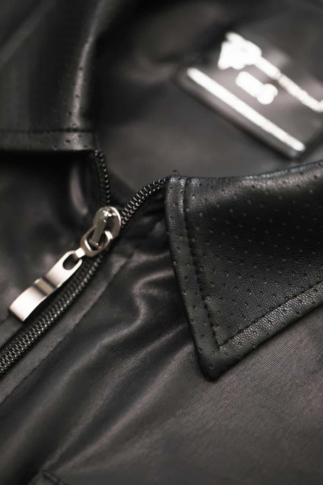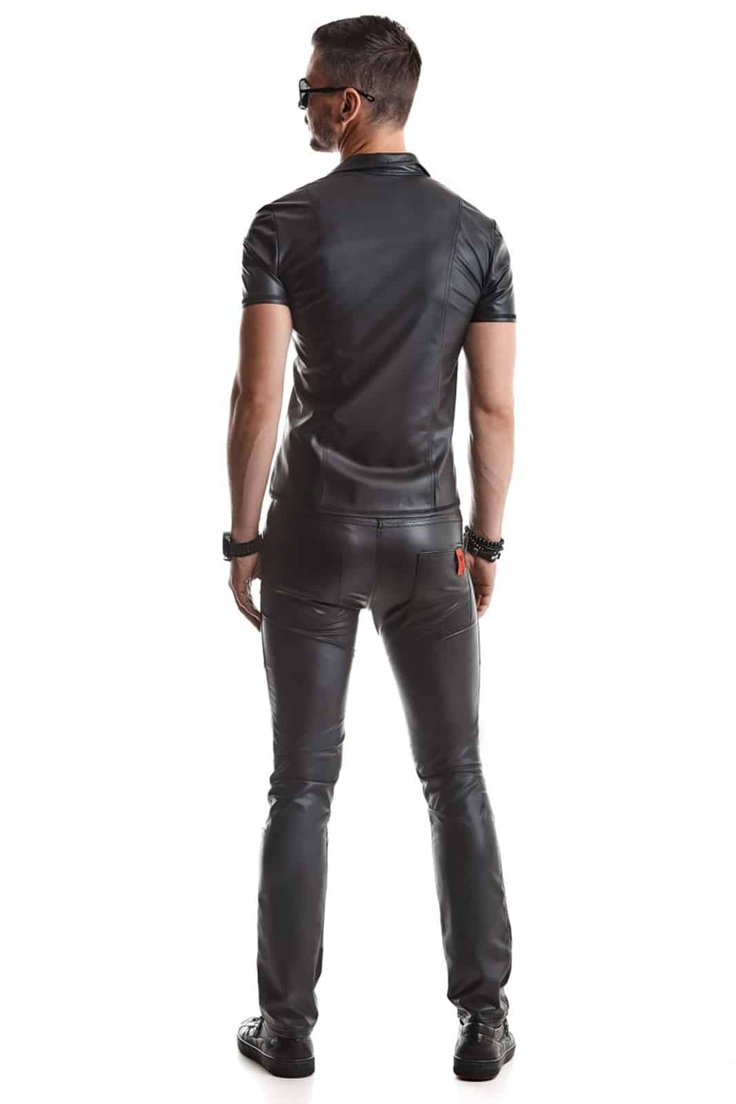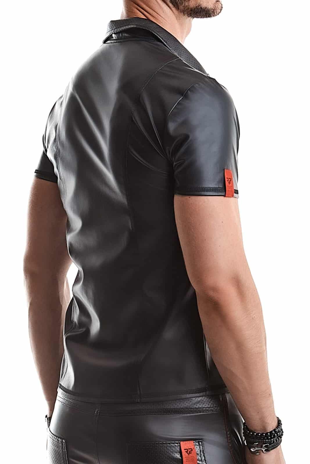 Die Vorderseite präsentiert sich wunderschön mit einem eleganten Kragen und einer Tasche aus perforiertem Wetlook. Ein dunkler Reißverschluss mit zwei Reißverschlüssen – sowohl von unten als auch von oben abnehmbar – sorgt zusätzlich für einen individuellen Charakter. Die Reißverschlüsse sind mit dem Logo von RFP Regnes Fetish Planet eingraviert. Auf der Rückseite befinden sich zwei vertikale Stiche. Sie machen die Figur an der Taille optisch schmaler und verbreitern die Schulter- und Brustlinie. Dieser Effekt lässt die Silhouette muskulöser erscheinen.