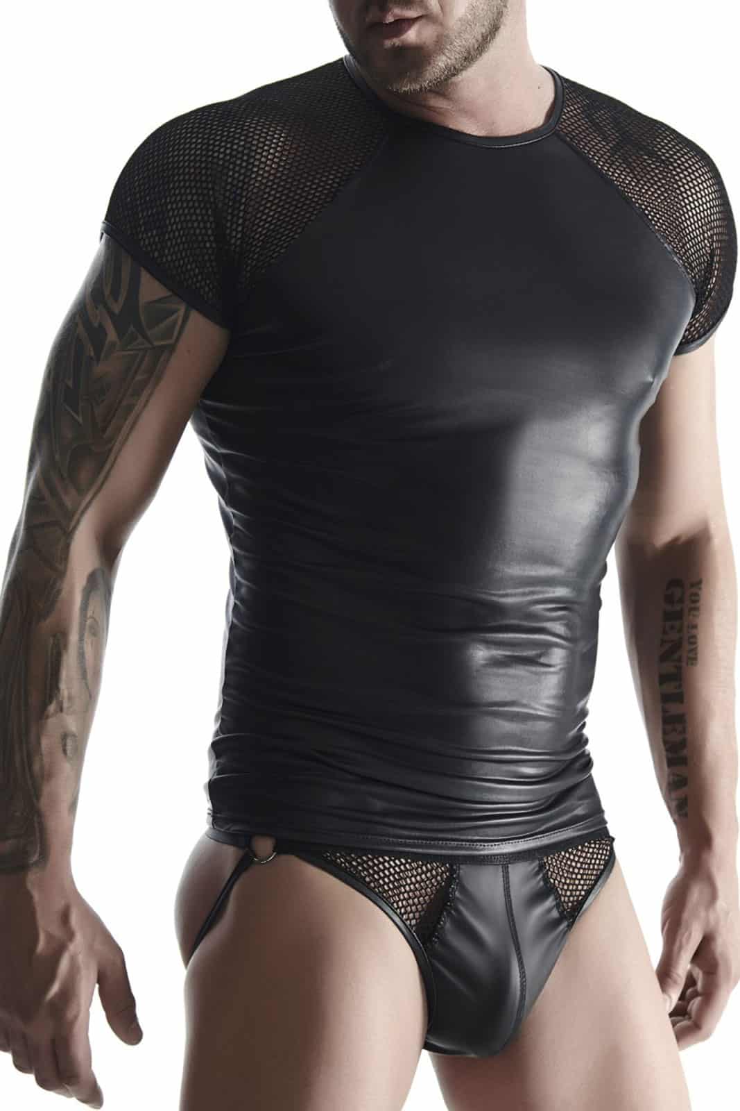 T-Shirt aus hochwertigem Öko-Kunstleder mit Ärmeln aus elastischem Mesh-Gewebe. Angenehm zu Tragen und weich im Griff. Für eine Langlebigkeit sind die Nähte verstärkt.
