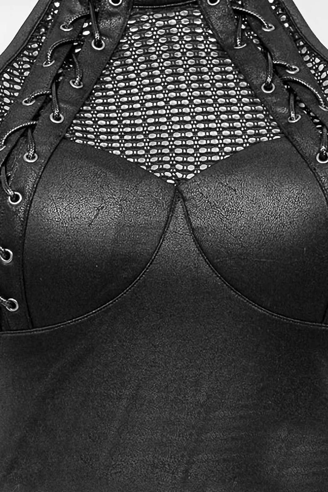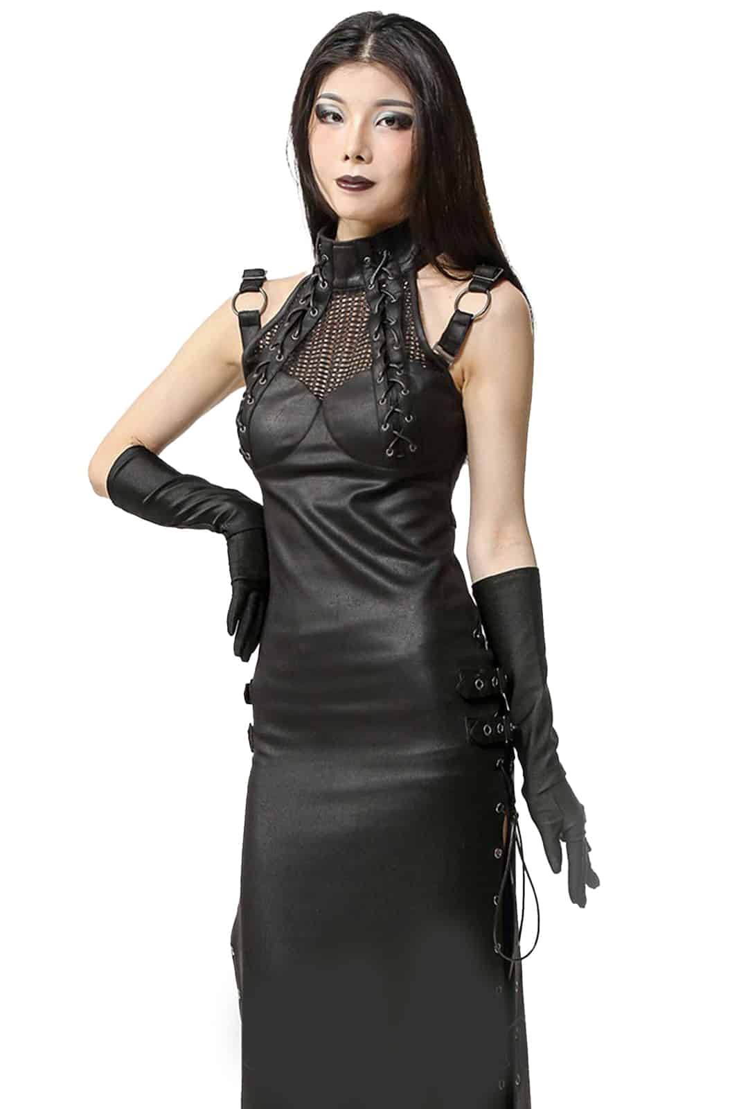 Dunkle Verführung trifft auf Cyber-Akzent im DareDoll Maxikleid – ein ausdrucksstarkes Statement-Piece für die Mitternachtsstunde. Das figurbetonte Maxikleid schmiegt sich mit seinem glatten Stoff in Lederoptik an die Figur, während transparente Mesh-Einsätze den Blick auf sich ziehen. Schnürdetails an der Brust sorgen für einen Hauch von Dramatik, eingerahmt von einem ärmellosen Neckholder, der alle Blicke auf sich zieht. Verstellbare, abnehmbare Träger mit O-Ringen bieten vielseitige Stylingmöglichkeiten, während hohe Seitenschlitze den Rock mit Schnürdetails und Schnallenträgern für einen extra Hauch von Attitüde durchziehen. Mit dem Reißverschluss hinten zieht dieses Kleid alle Blicke auf sich.