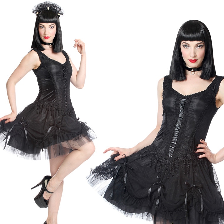 Zuckersüßes Minikleid aus Samt, Tüll und wunderschöner Spitze. Mit opulenter Verzierung und Reißverschluß im Rücken.