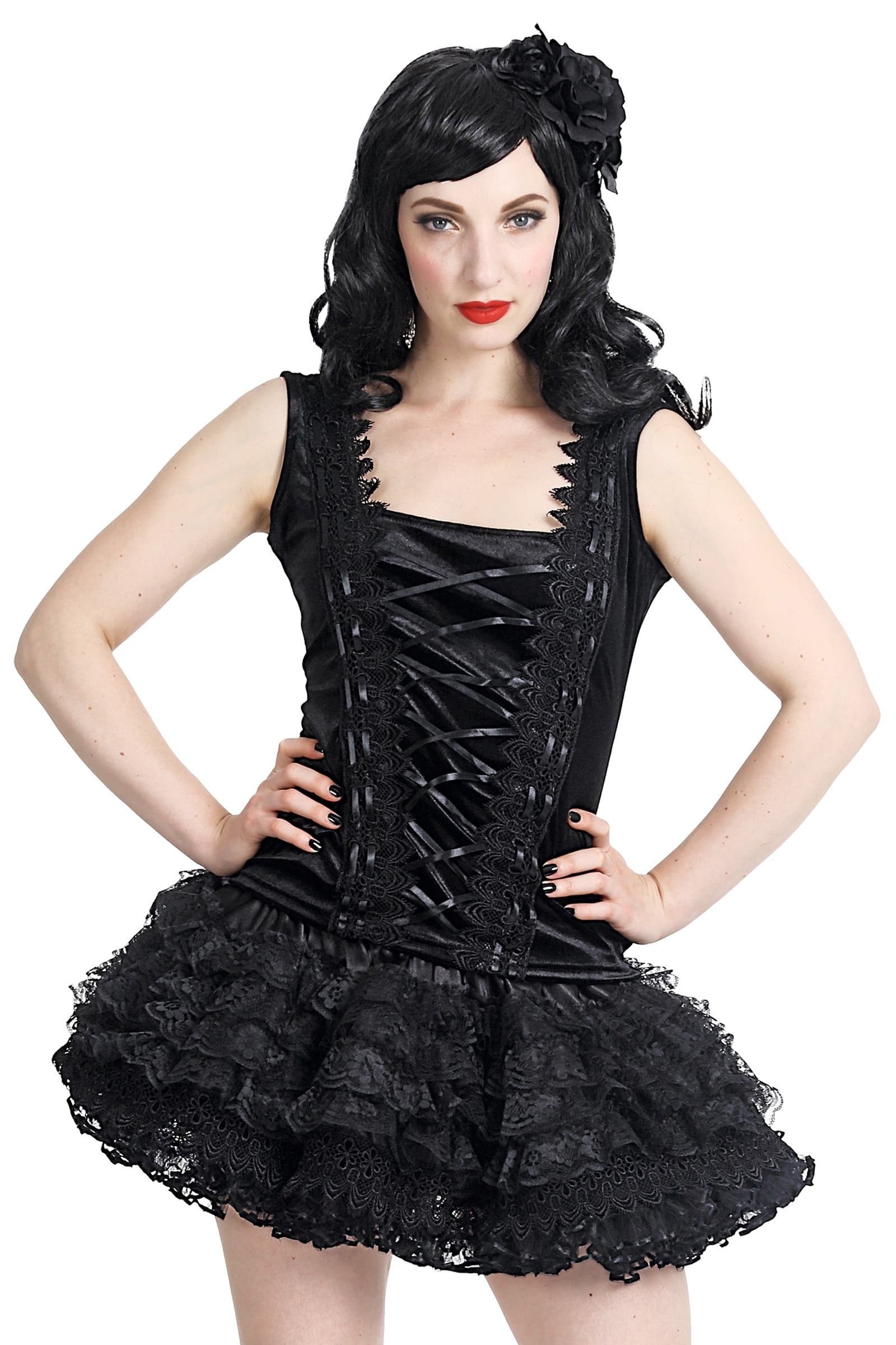 Süßer, voluminöser Stufenminirock mit viel Spitze, Tüll und Satin. Der Gummizugbund sorgt für den perfekten Sitz.