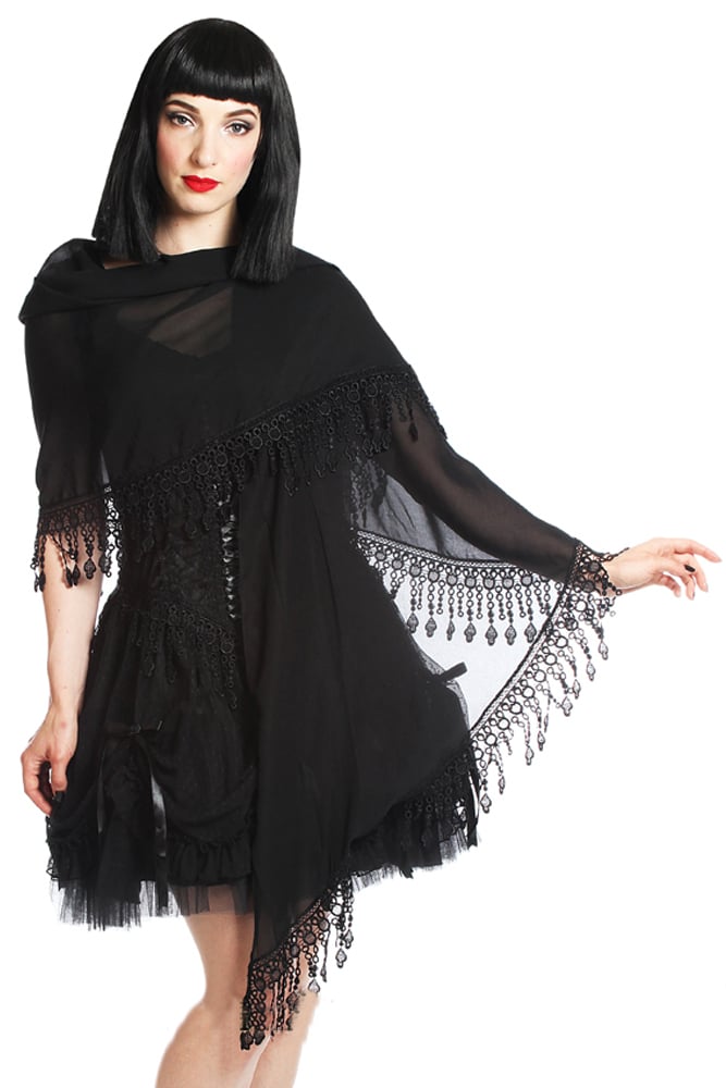 Luftig-leichter Chiffonschal, an den Enden Spitz zulaufend. Verziert mit wunderschöner, breiter Spitzenborte.