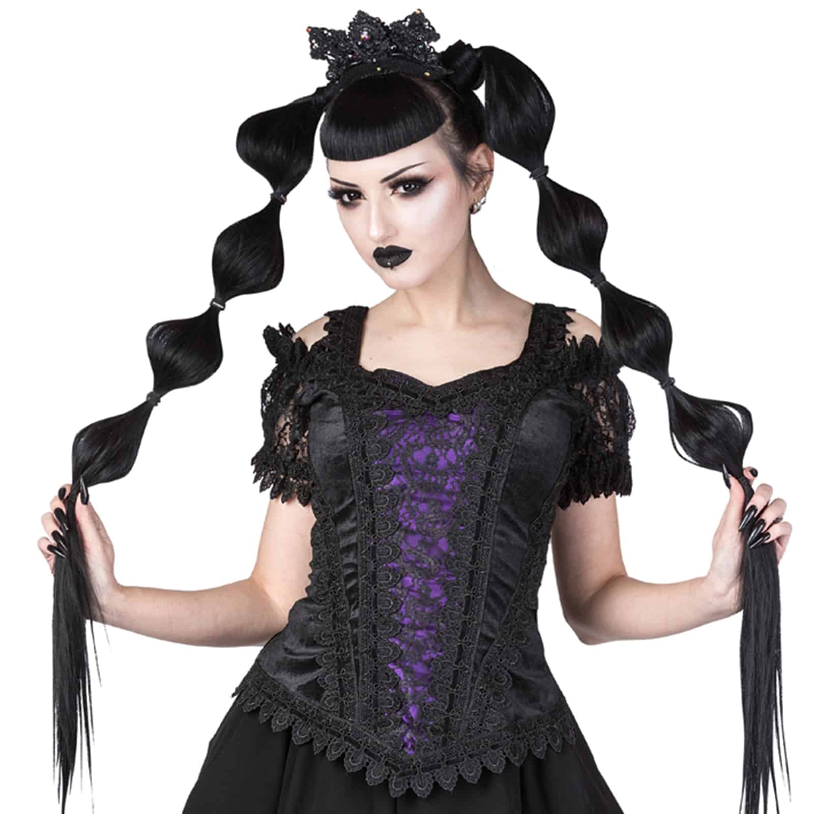 Schulterfreies Gothic Top aus Samt und Satin, edel verziert mit Spitze und Samtbändern. Ausgestattet mit Reißverschluß im Rücken.