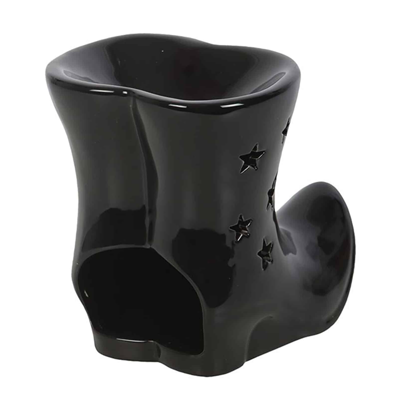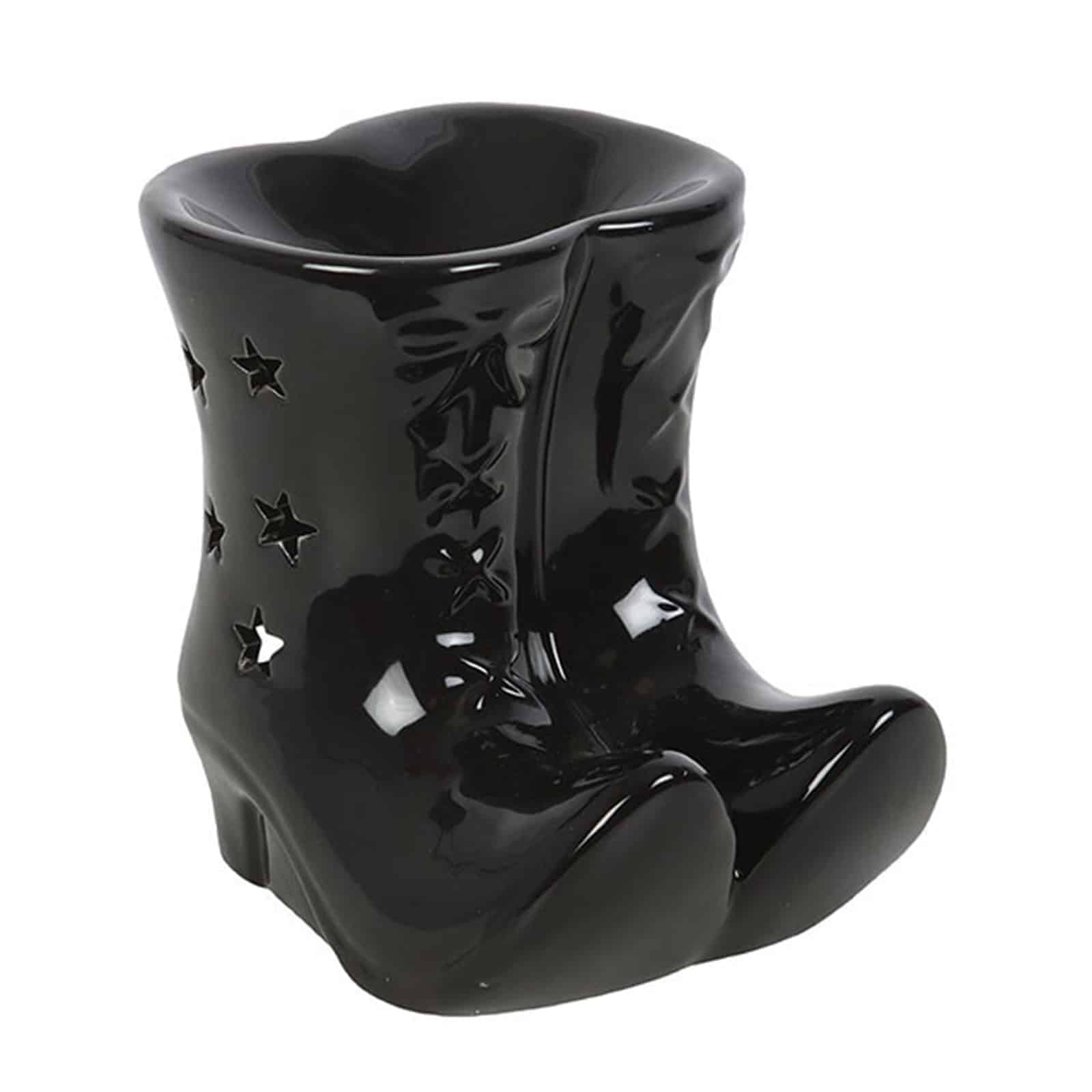 Schwarzer Keramik-Ölbrenner in Hexenstiefel-Form