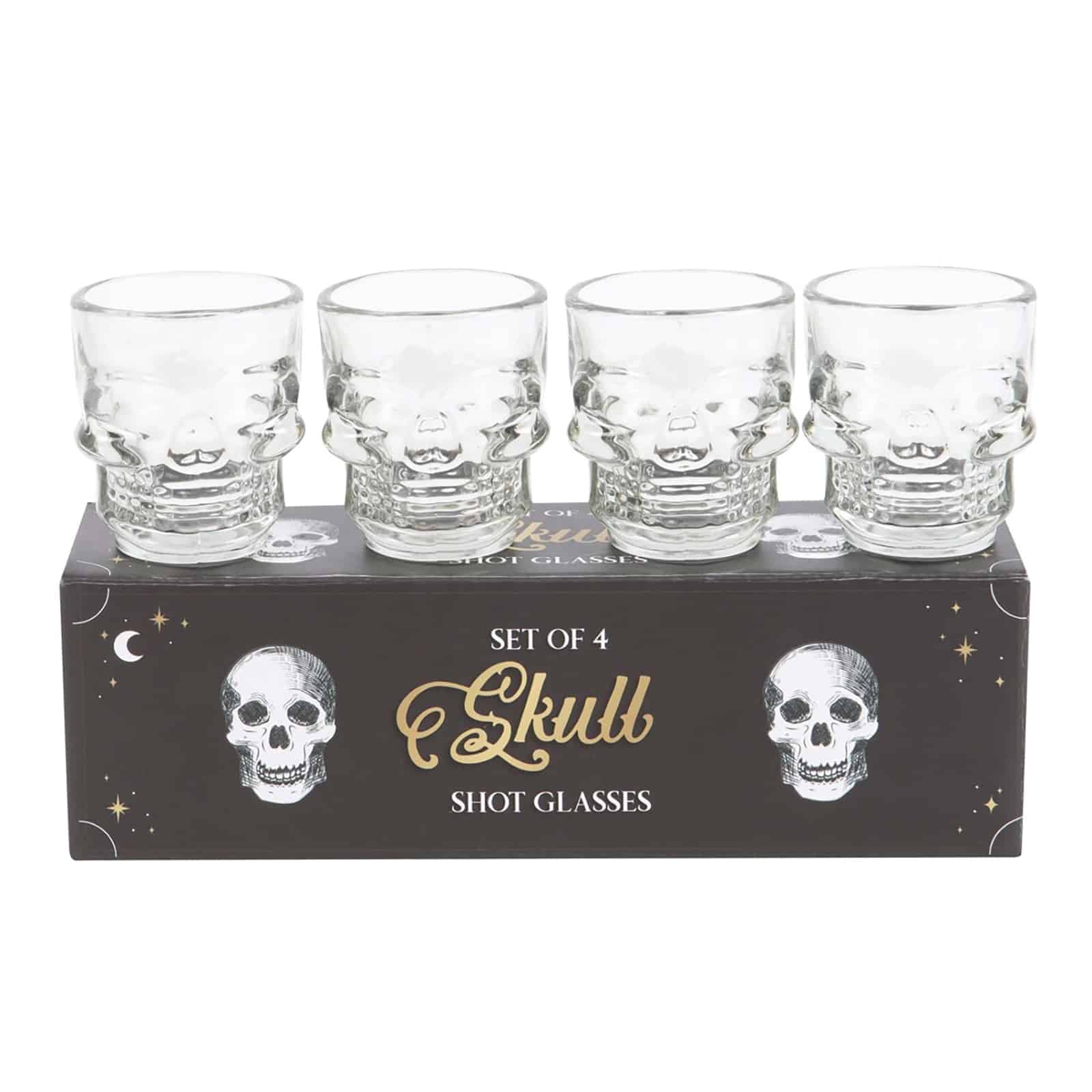 Erhebe ein Glas auf das Außergewöhnliche mit diesen unvergesslichen Schnapsgläsern mit einzigartigem Totenkopf-Design.