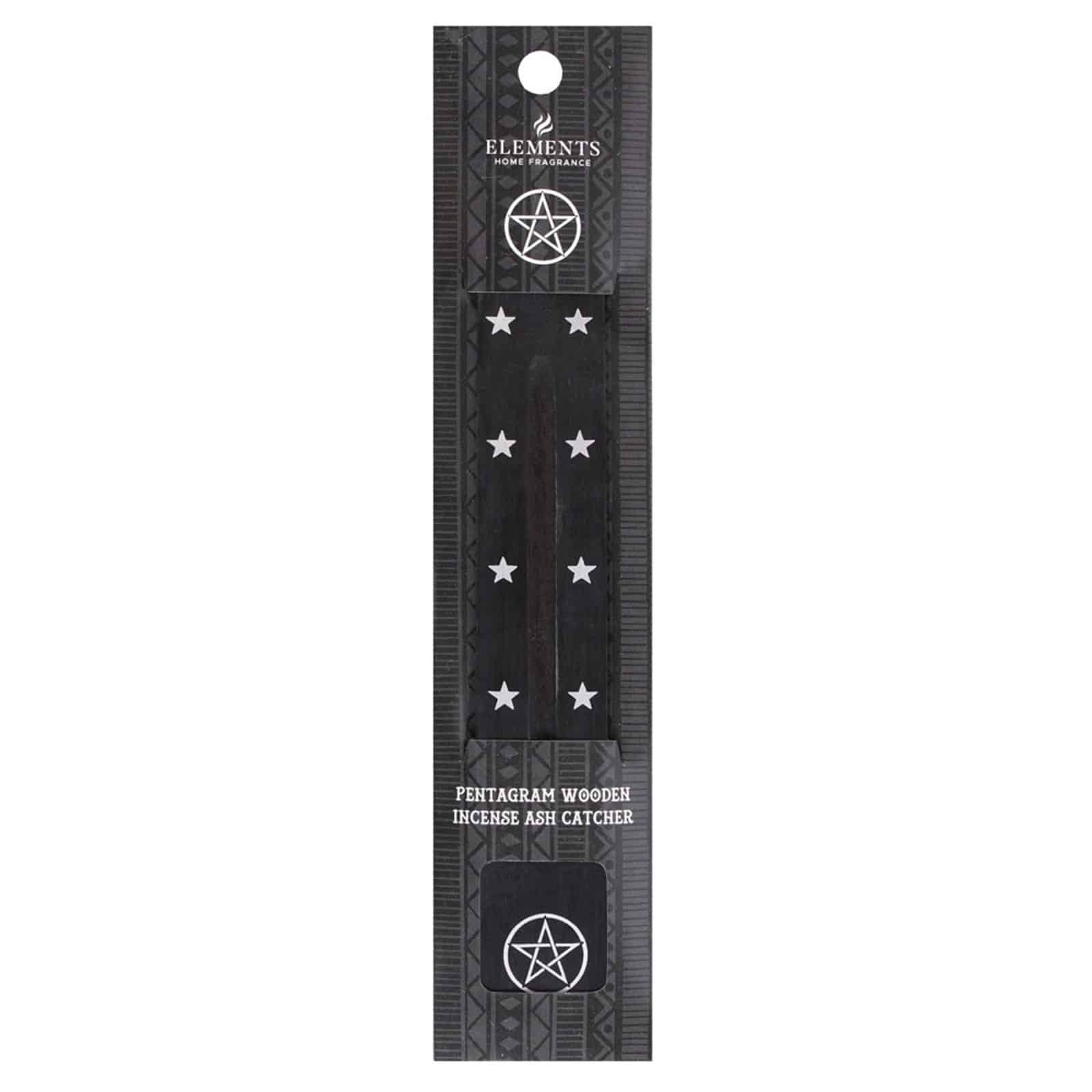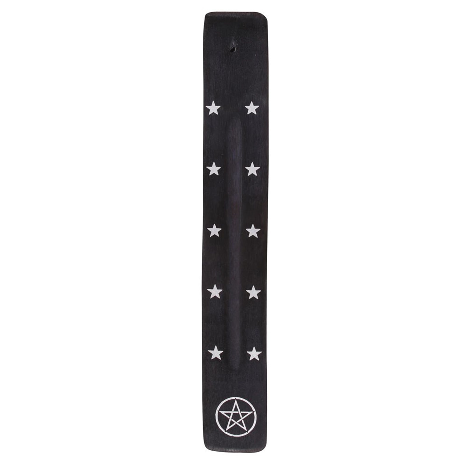 Räucherstäbchenhalter im Vintage Style aus Holz bedruckt mit Sternen und einem Pentagramm.