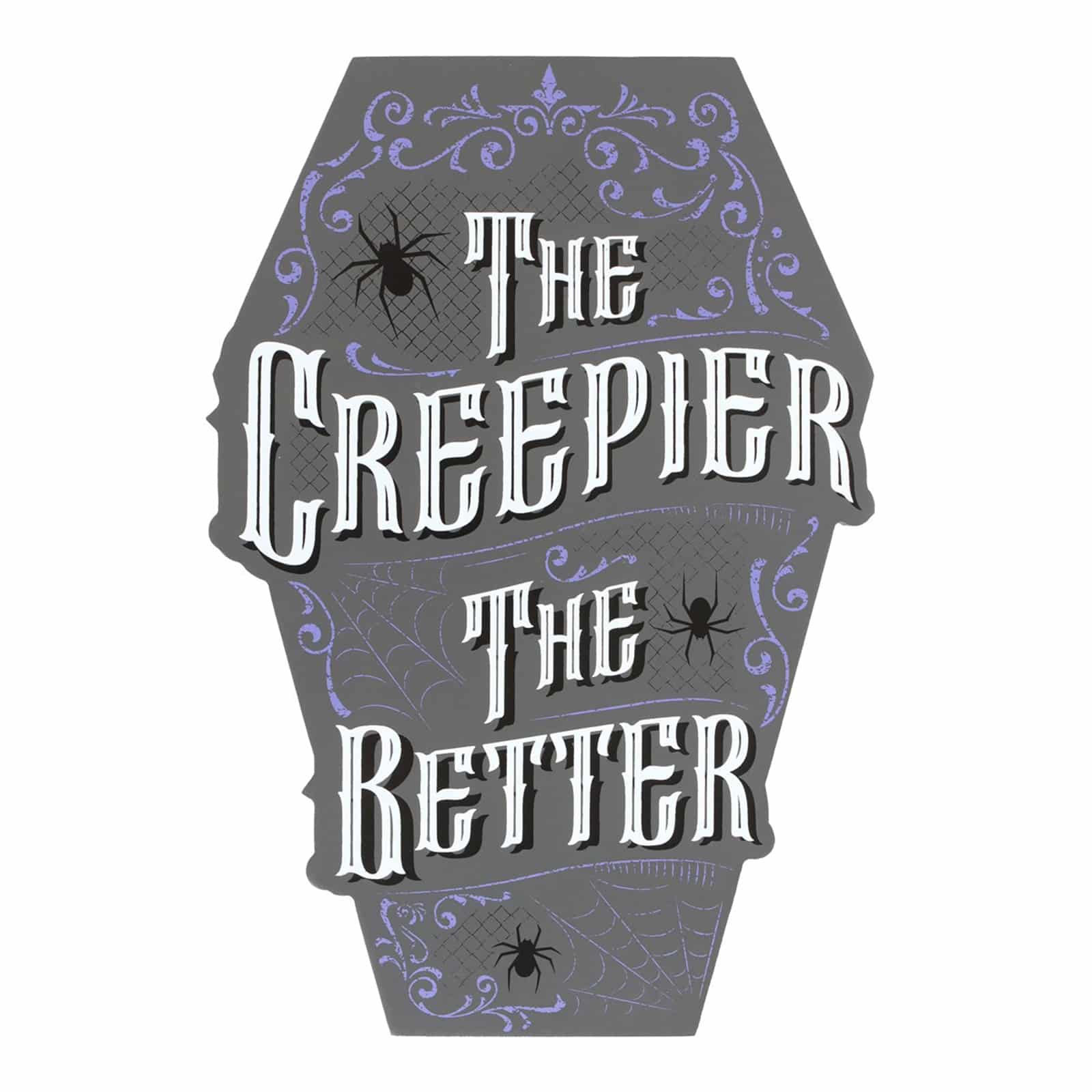 Dieses gedämpfte graue Schild ist eine Anspielung auf die dunklere Seite der Dekoration und zaubert Bilder eines nebelverhangenen Friedhofs herauf, was jeder Umgebung einen geheimnisvollen Charme verleiht. Mit der Aufschrift „The Creepier the Better“ ist dieses Schild ein Statement-Stück für Liebhaber aller unheimlichen und ungewöhnlichen Dinge.