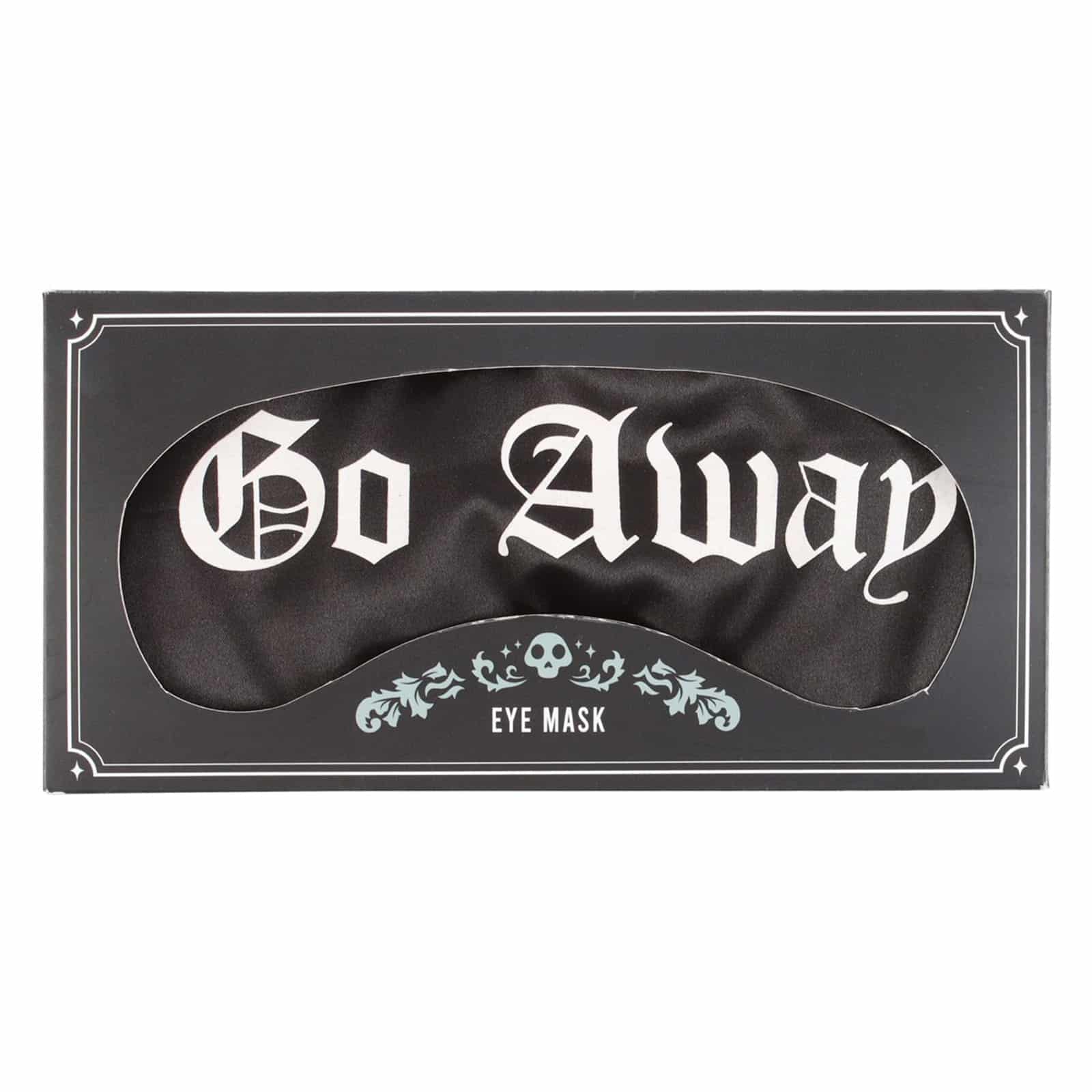 Aufruf an alle müden Menschen, Nickerchen-Enthusiasten und Jetsetter! Begrüßt den ultimativen Schlafbegleiter. Unsere schwarze Satin-Schlafmaske ist die perfekte Wahl für ungestörten Schlaf. Mit den auffällig aufgedruckten Worten „Go Away“ in gotischer Schriftart auf der Vorderseite vermittelt die Maske ein luxuriöses Gefühl und sendet eine klare Botschaft an die Welt, dass der Träger ungestörte Ruhe braucht. Die Schlafmaske ist in einer eleganten Präsentationsbox verpackt.