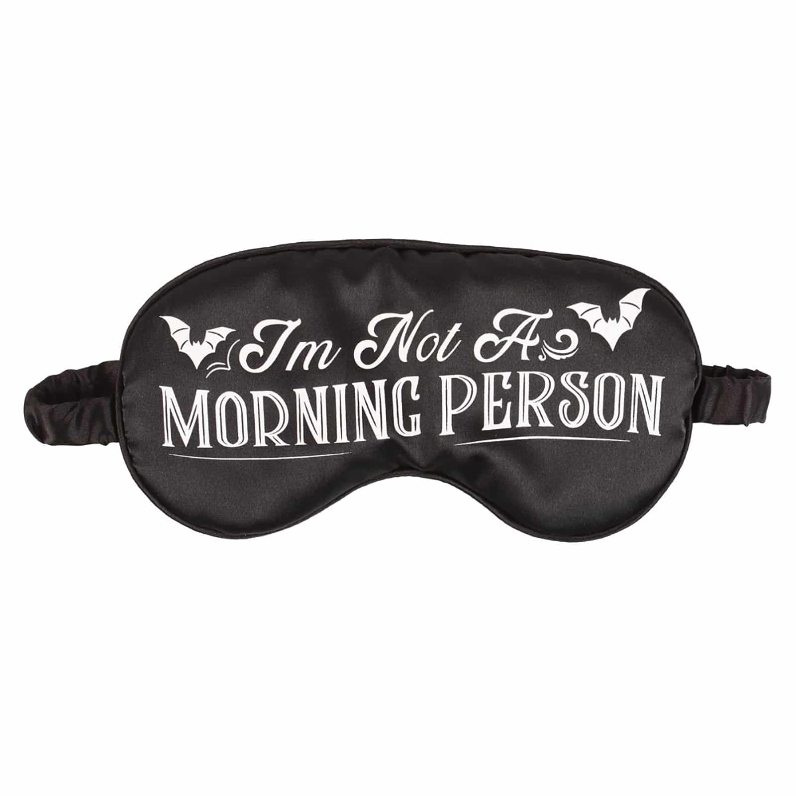 Aufruf an alle müden Menschen, Nickerchen-Enthusiasten und Jetsetter! Begrüßt den ultimativen Schlafbegleiter. Unsere schwarze Satin-Schlafmaske ist die perfekte Wahl für ungestörten Schlaf. Mit den auffällig aufgedruckten Worten „Im not a morning person“ auf der Vorderseite vermittelt die Maske ein luxuriöses Gefühl und sendet eine klare Botschaft an die Welt, dass der Träger ungestörte Ruhe braucht. Die Schlafmaske ist in einer eleganten Präsentationsbox verpackt.