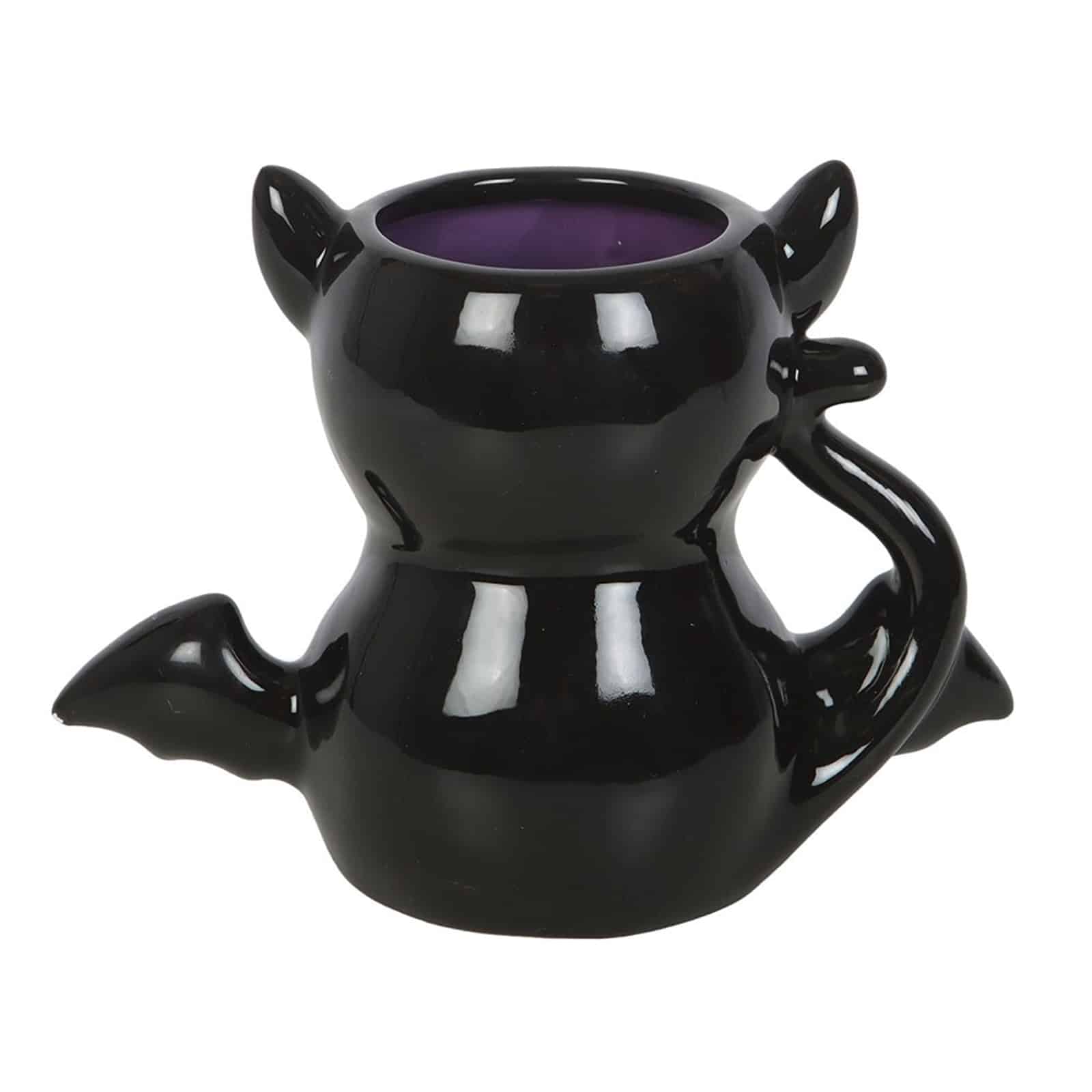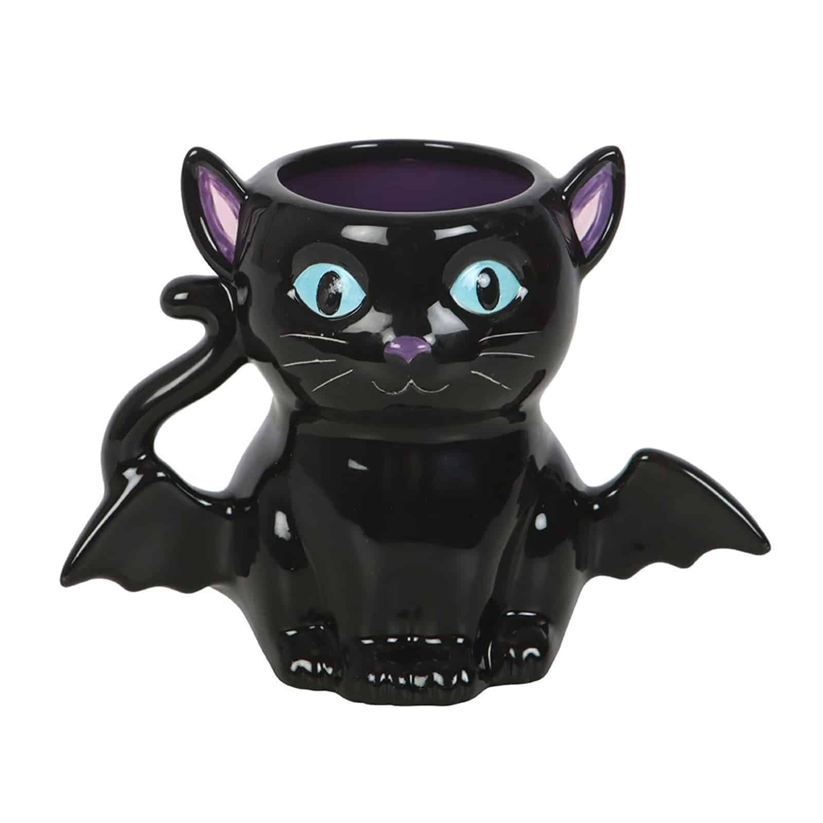 Erwecke die Hexe in dir mit dieser schwarzen Keramiktasse in Katzenform, komplett mit winzigen Fledermausflügeln für einen perfekt gruseligen Touch. Eine bezaubernde Ergänzung für jede Tassensammlung und ein ideales Geschenk für Katzenfanatiker. 500 ml Fassungsvermögen. Nur von Hand spülen. Nicht für die Mikrowelle geeignet.