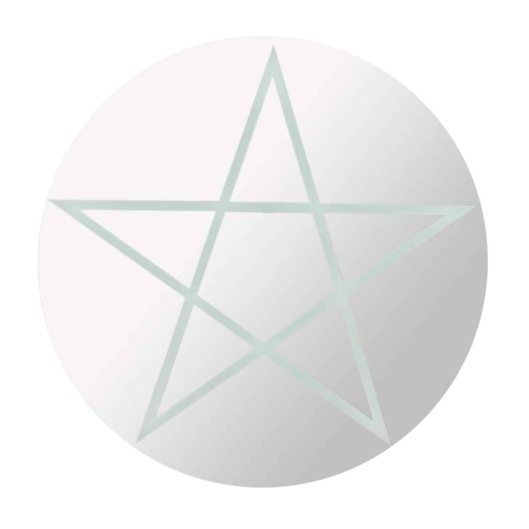 Runder Gothic Occult Spiegel mit einem weißen Pentagram. Mit Befestigungshaken auf der Rückseite.