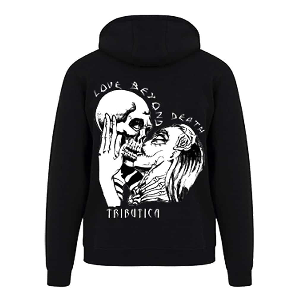 Gothic Kapuzenpullover aus hochwertiger Baumwolle mit aufwändigem Brust- und Rückenprint und großer Kängurutasche.