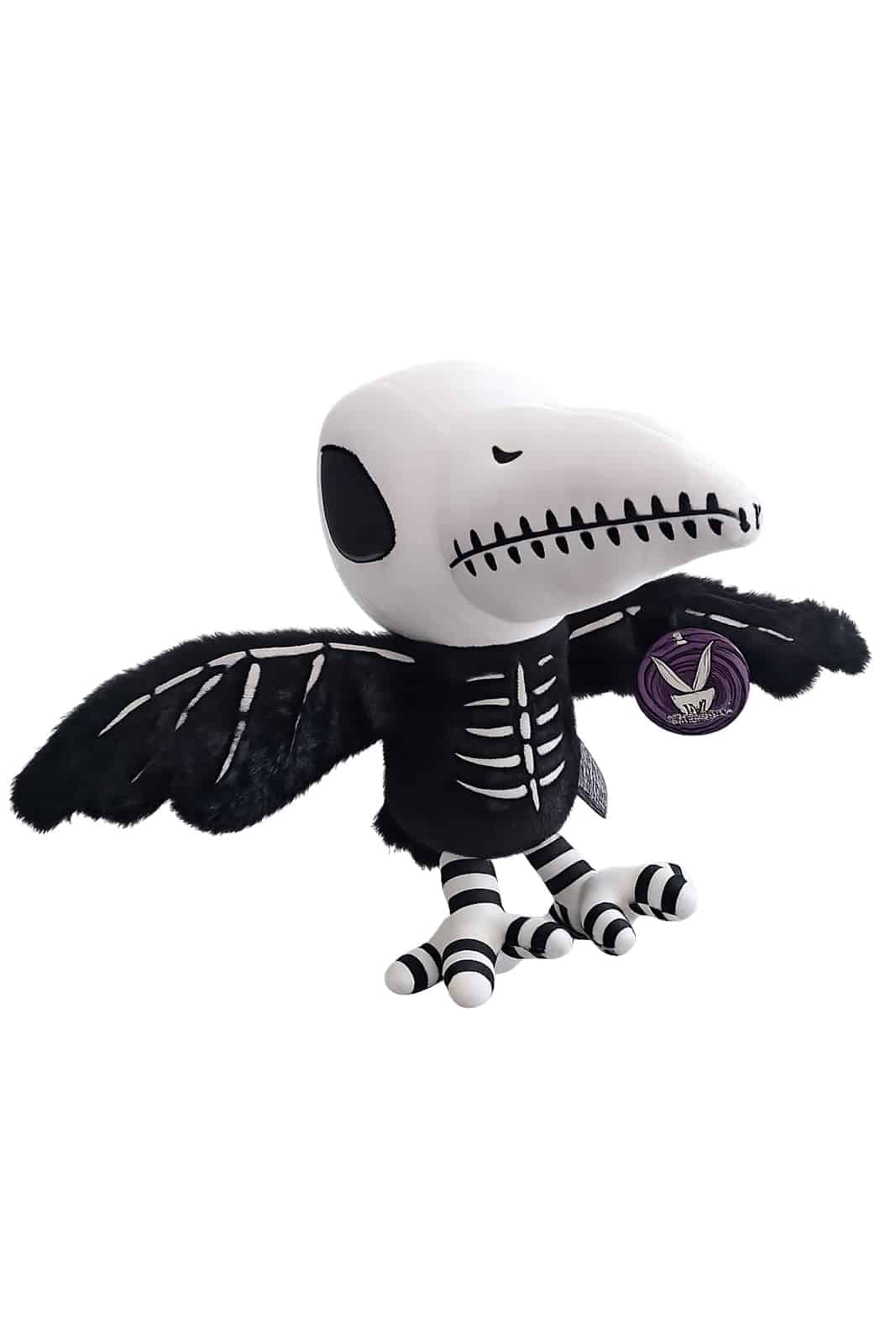 Ein weich-gruseliger Skelett-Raben-Plüsch mit markanter Gothic-Ästhetik. Das flauschige schwarze Fell, die kontrastreich gestickten Knochenmotive und die posierbaren Flügel machen diesen Raben zu einem ausdrucksstarken Dekorations- und Sammlerstück für alternative Wohnräume oder Vitrinen.