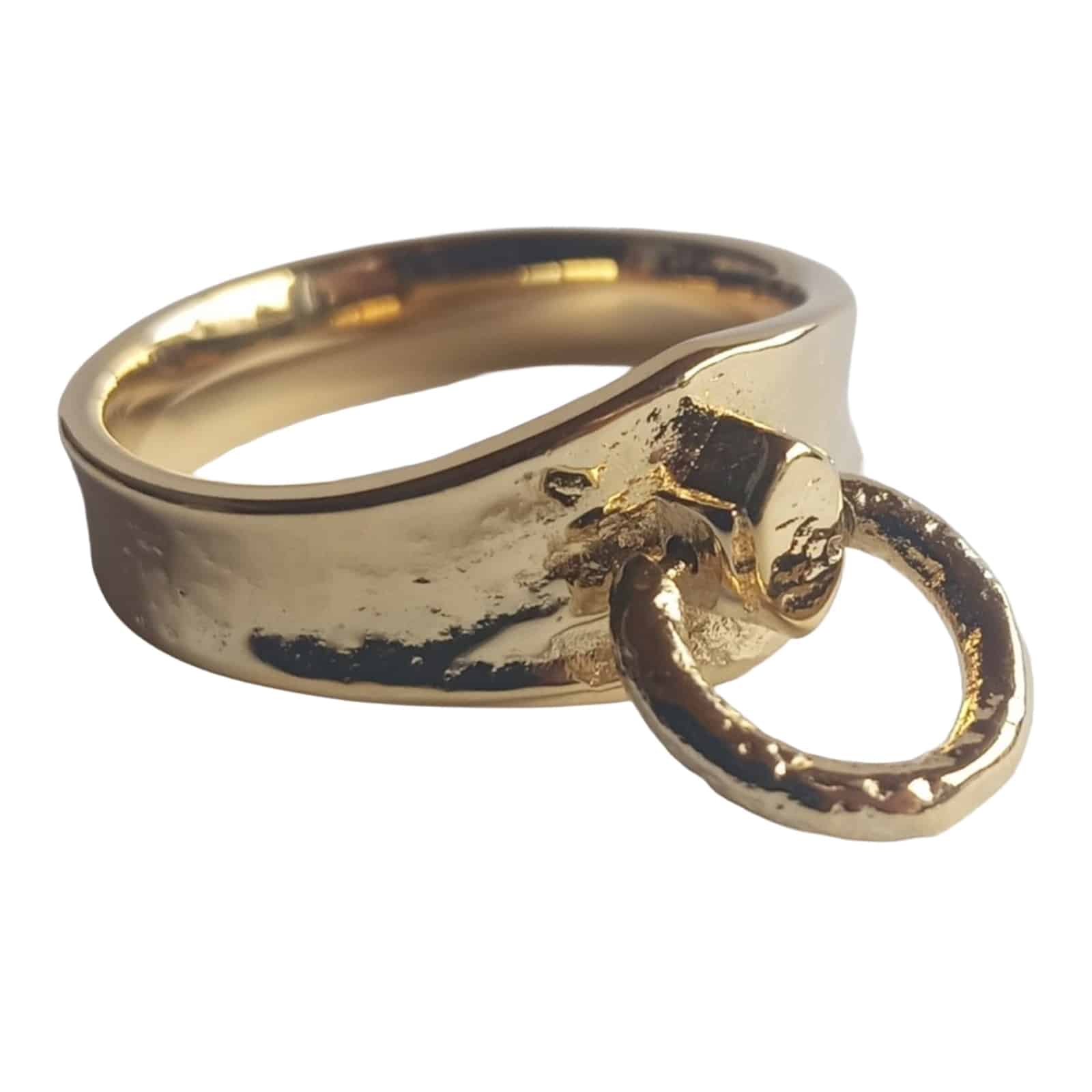 Goldfarbener Ring aus Chirurgenstahl mit massivem Rundring – inspiriert vom legendären „Story of O“. Das puristische Design strahlt Sinnlichkeit und Dominanz zugleich aus und verbindet klare Formen mit einer erotisch-düsteren Aura. Ein Schmuckstück, das Fesselung, Leidenschaft und geheimnisvolle Versuchung verkörpert.